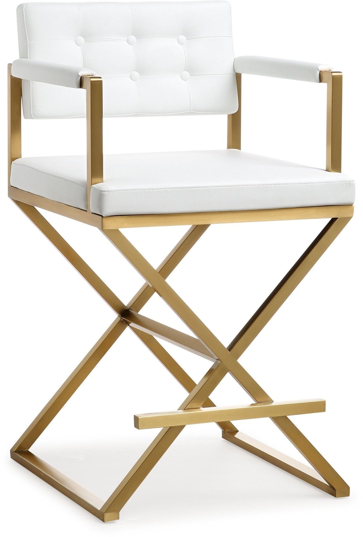 Furnish your kitchen or bar area in contemporary style with the Director stool. The gold solid stainless steel frame provides a sturdy base, while the plush extra deep seat and footrest ensure maximum comfort. The combination of angles and gentle curves gives this stool an eye-catching appearance, while the neutral color allows it to match well with any decor.