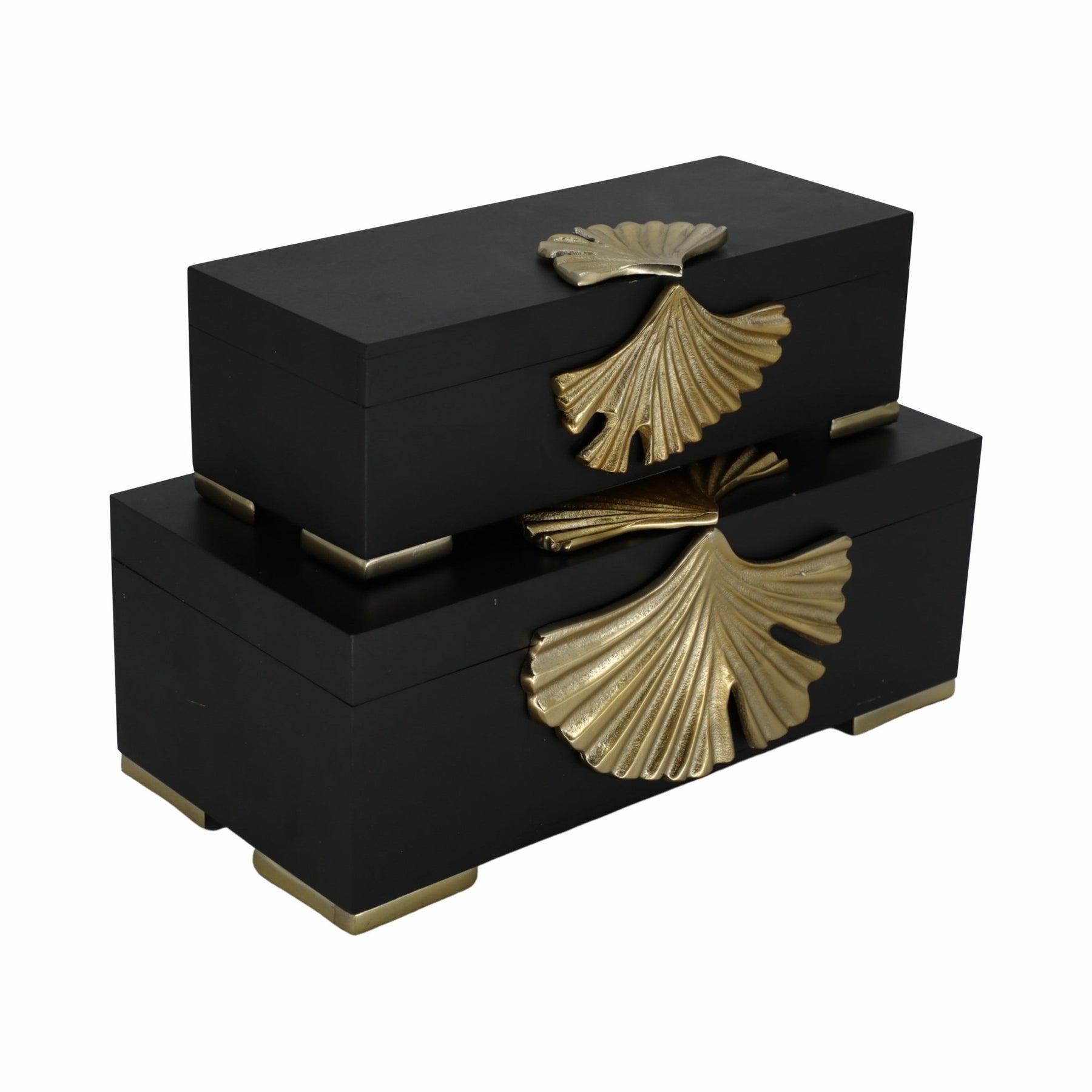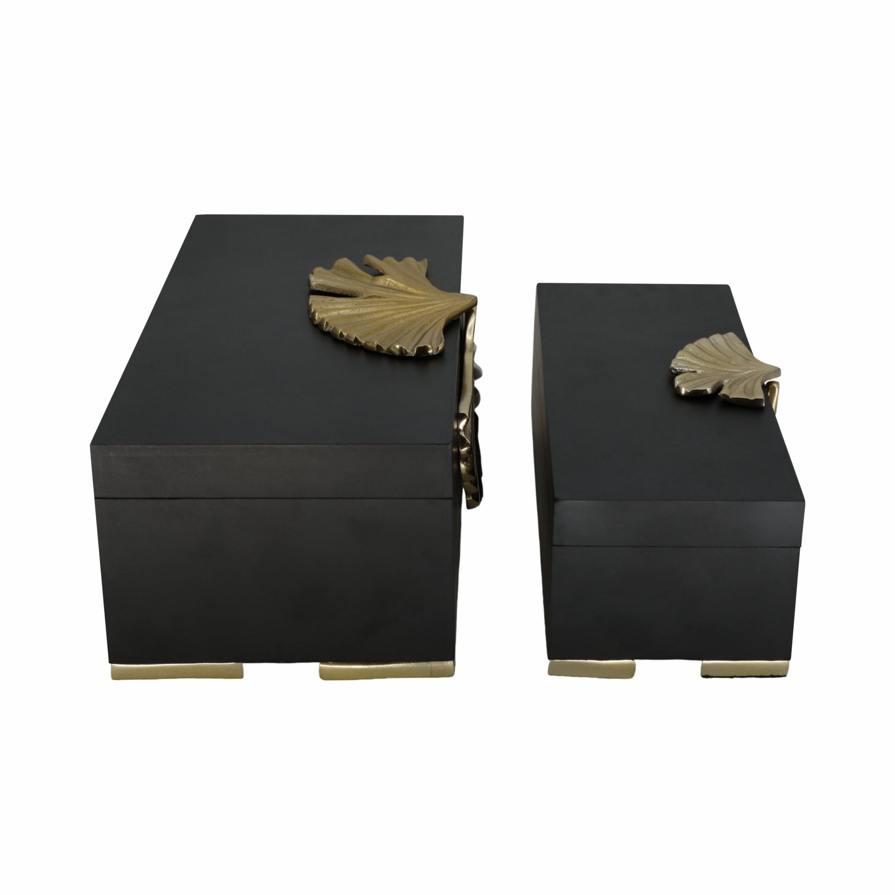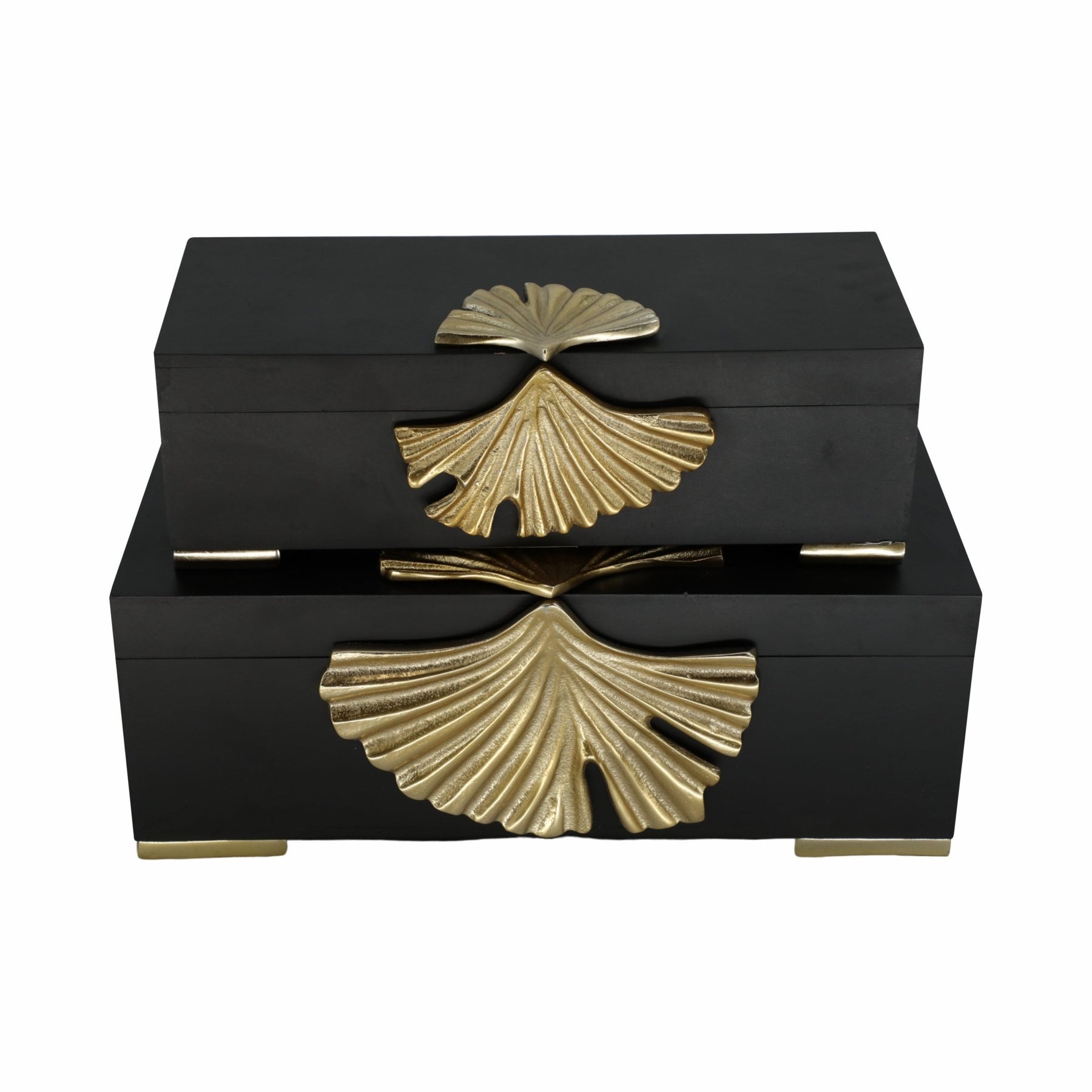 Metal, S/2 12/14" Black Gingko Boxes - Al Rugaib Furniture
