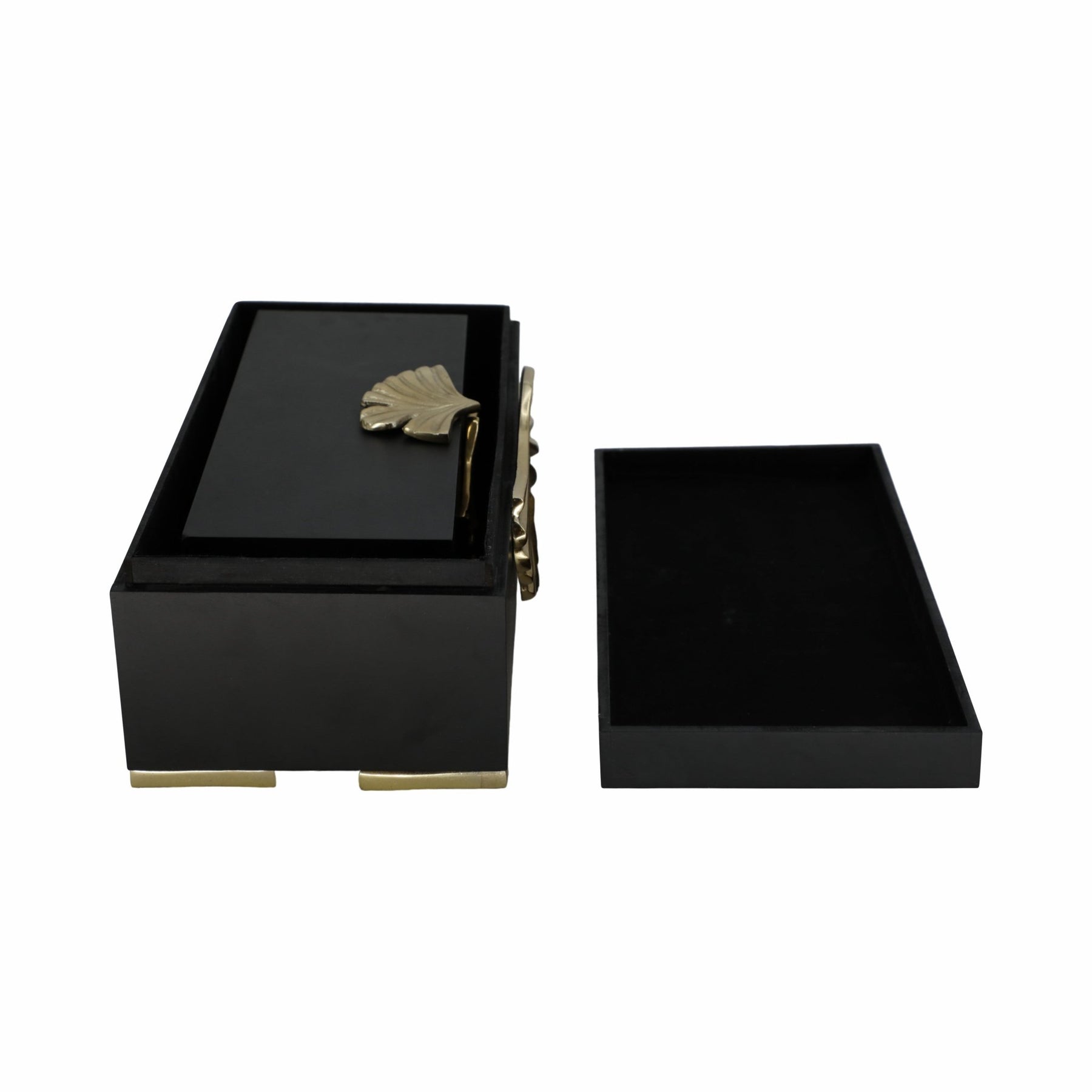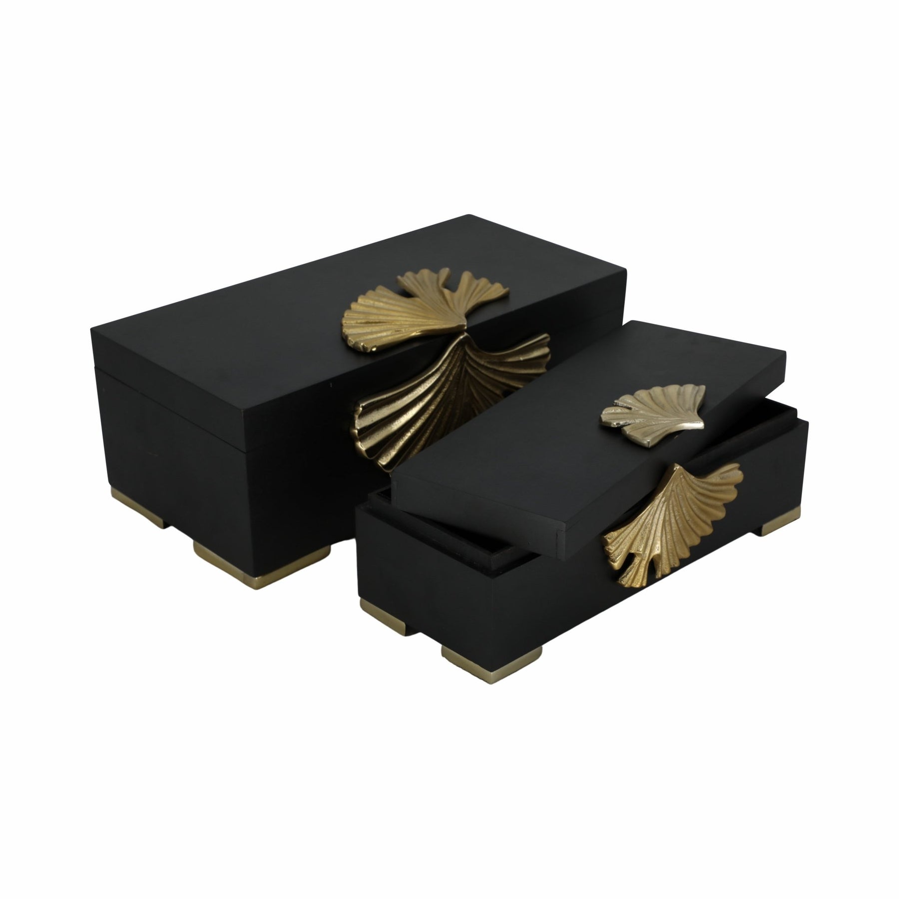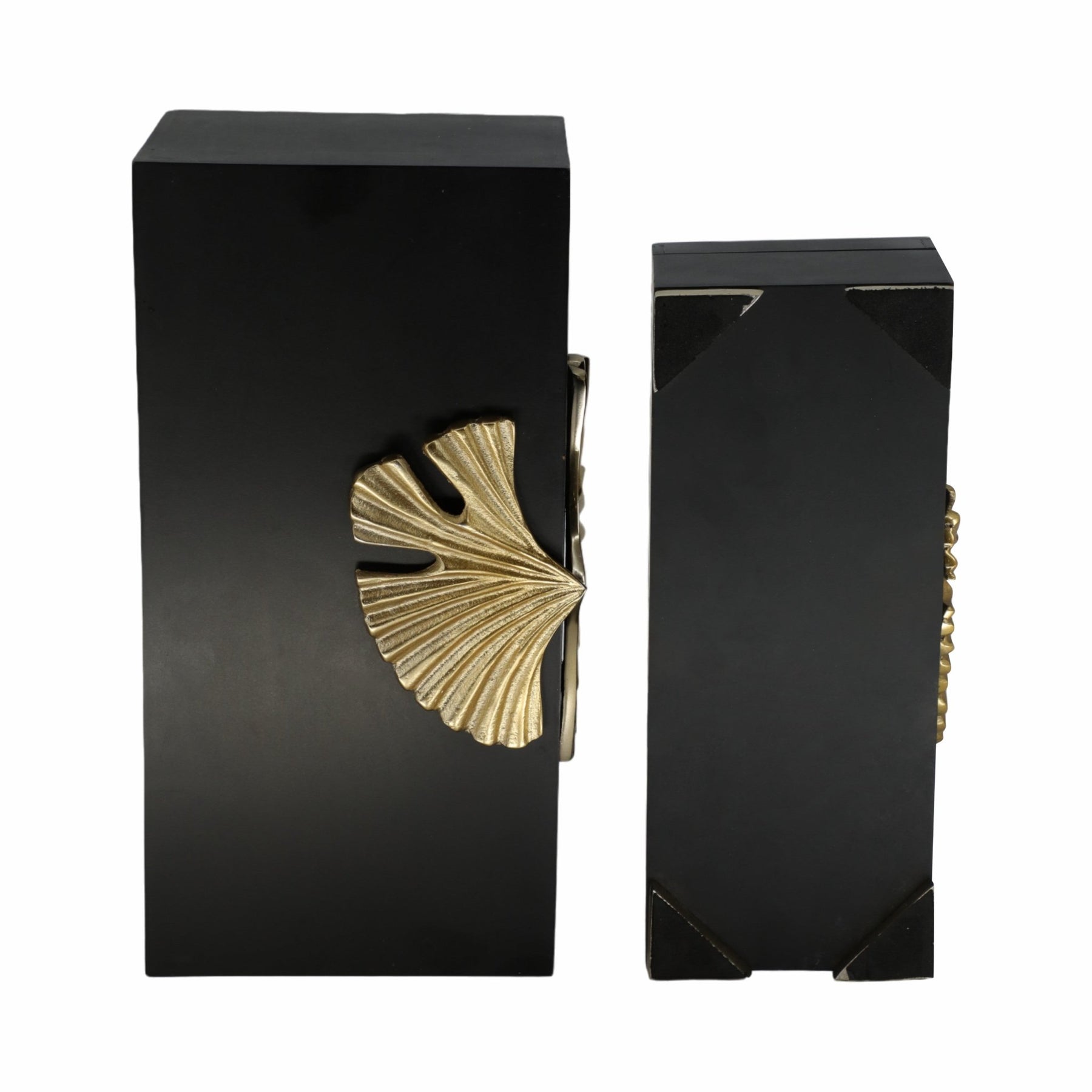 Metal, S/2 12/14" Black Gingko Boxes - Al Rugaib Furniture