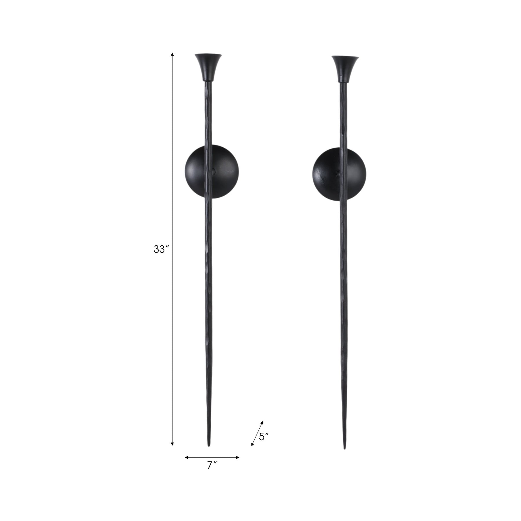 S/2 33" Forged Metal Wall Sconce With Taper, Black