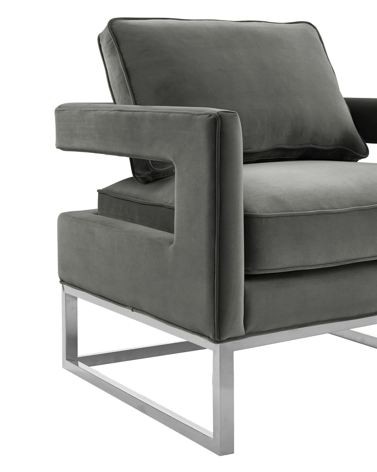 Inspired by our love for luxe, modern design the Avery chair radiates sophistication and grandeur. With a glossy silver finish and gorgeous curves, this chair is available in several sumptuous upholstery options. The Avery is a must-have for any room.