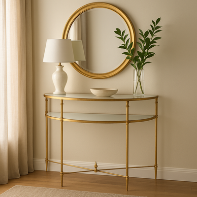 Henzler 91 W x 76 H x 45 D Demilune Console Table with Mirror Top