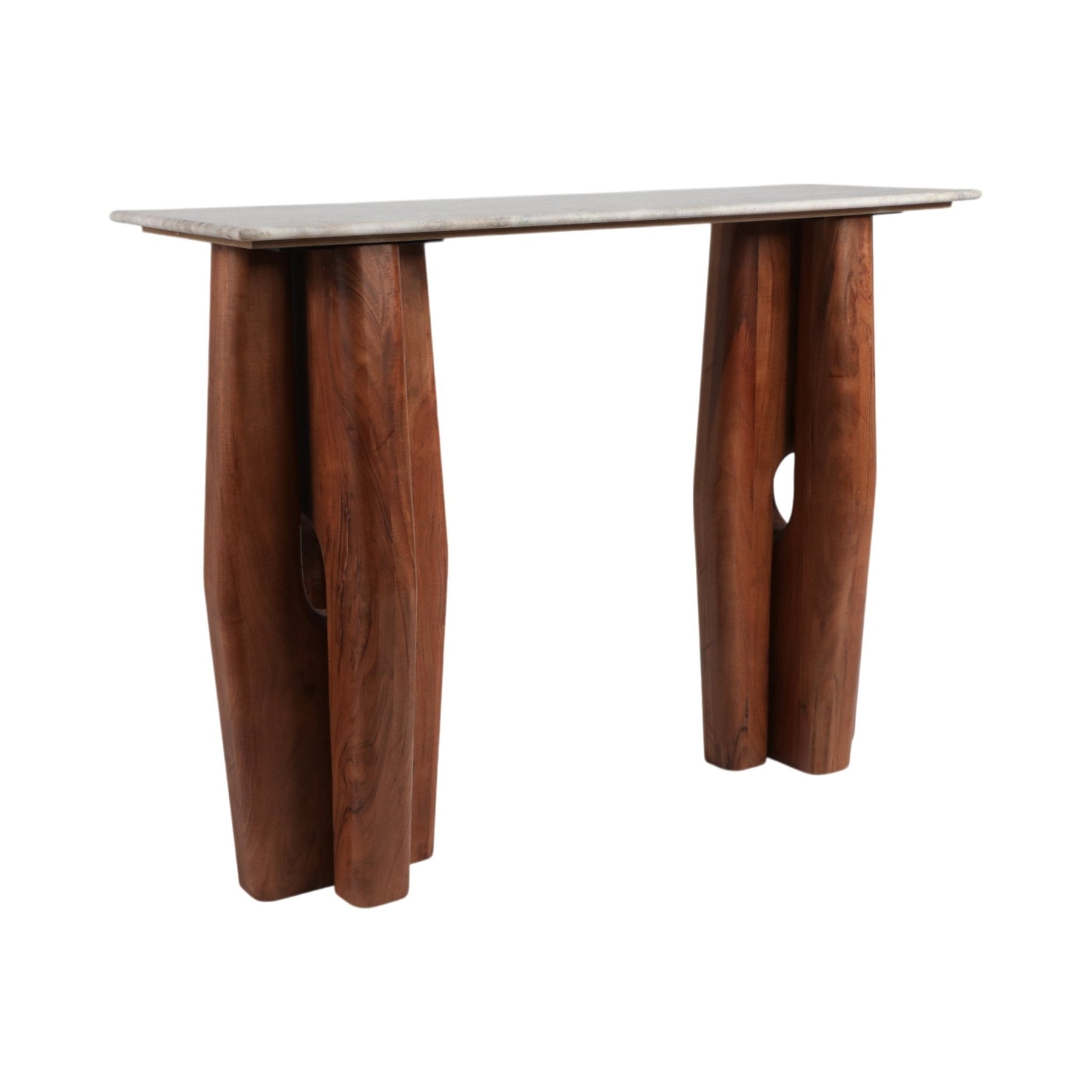 42x31"tapered Legs Mrble Top Console Tble,tan/brwn