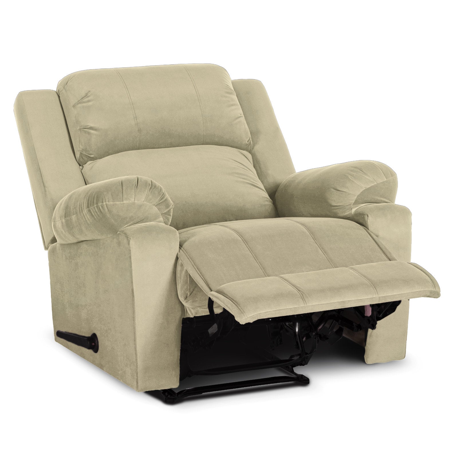 Velvet Upholstered Rocking Recliner Chair With Bed Mode From In House - Dark Ivory - AB02