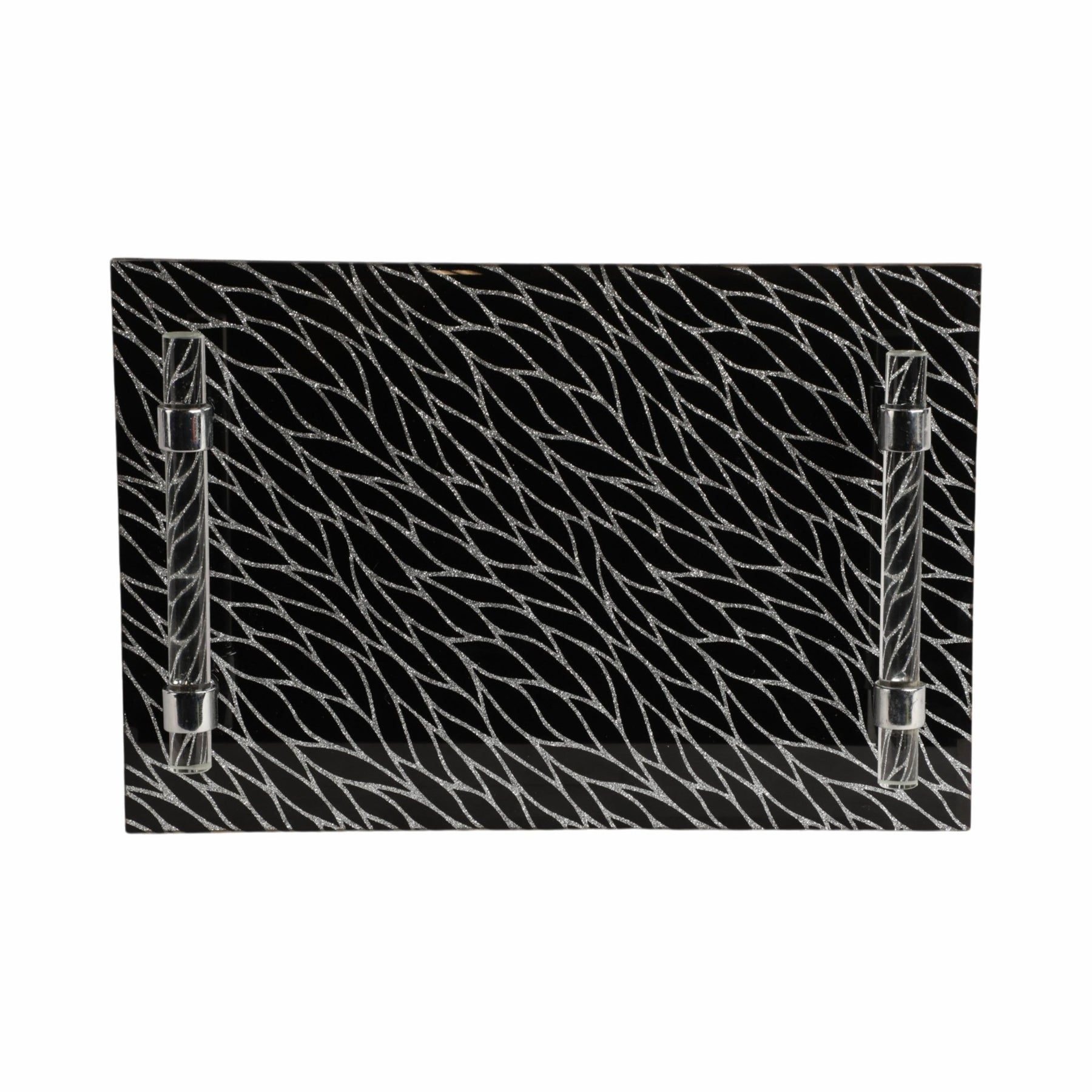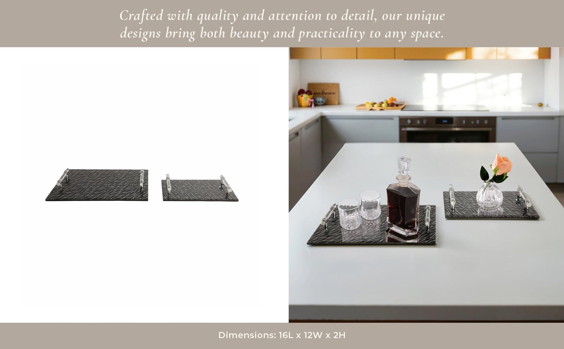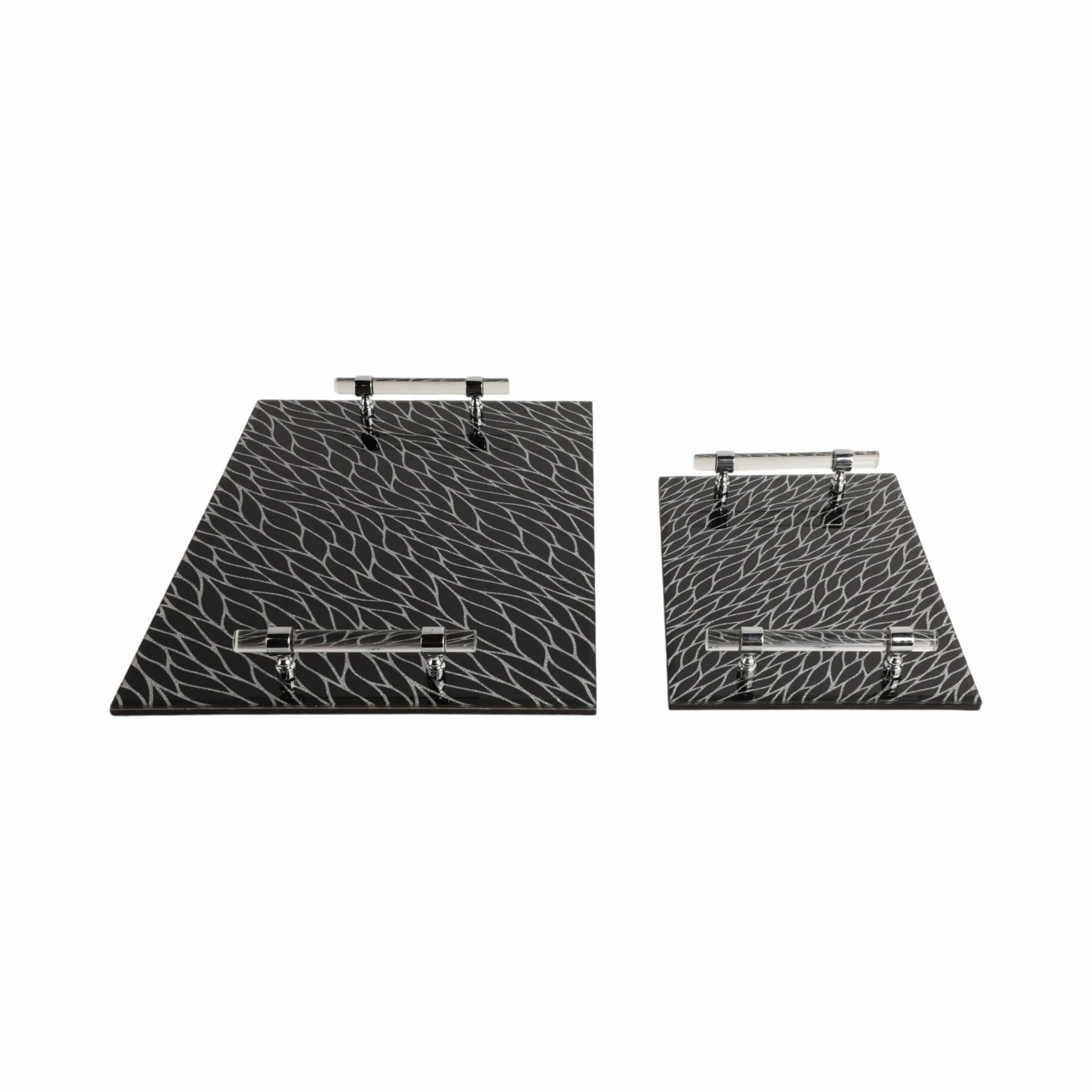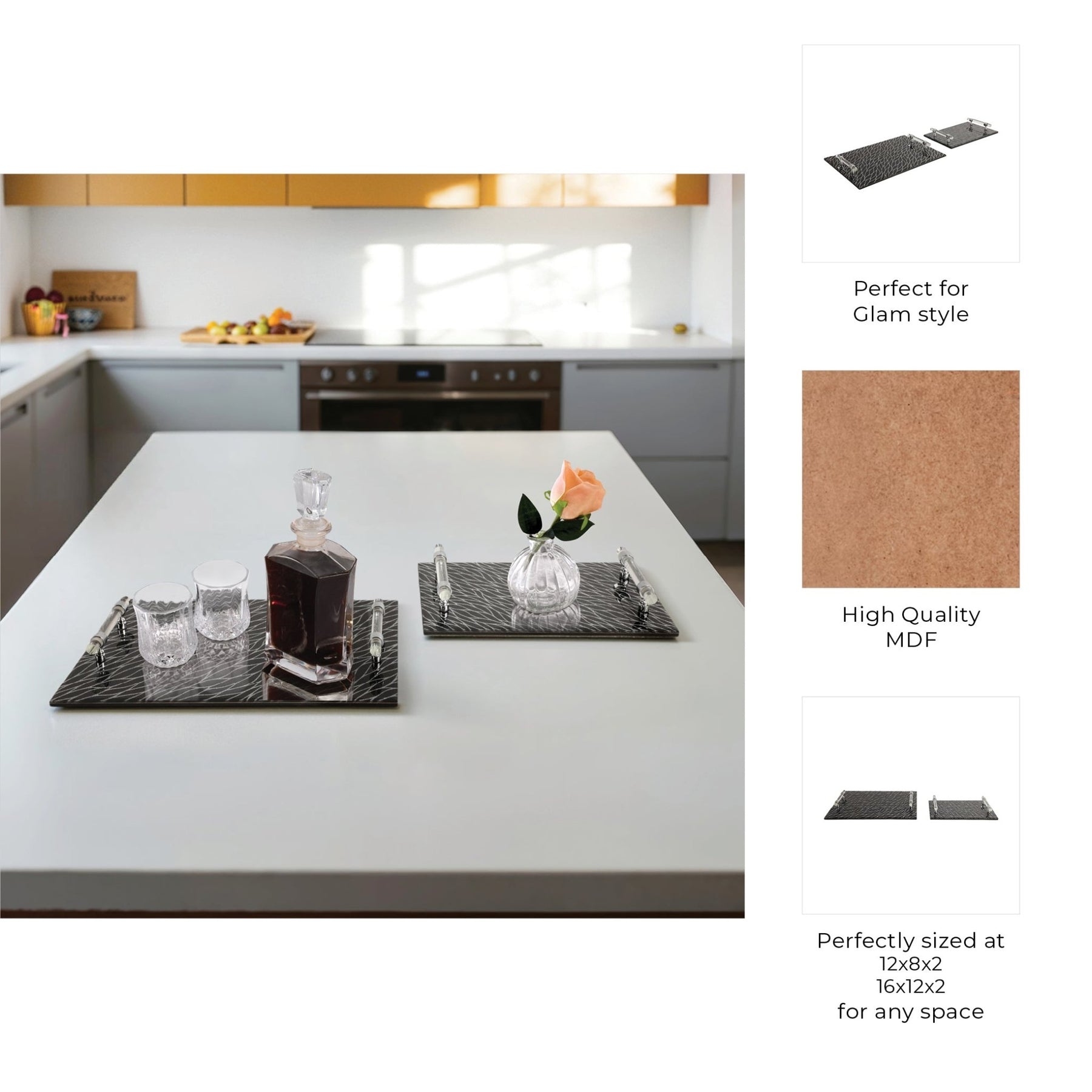 S/2 12/16" Sparkly Glass Trays, Black - Al Rugaib Furniture