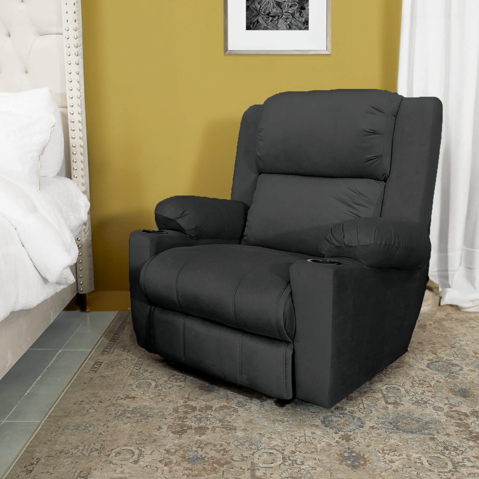 Velvet Classic Cinematic Recliner Chair with Cups Holder - Black - Lazy Troy