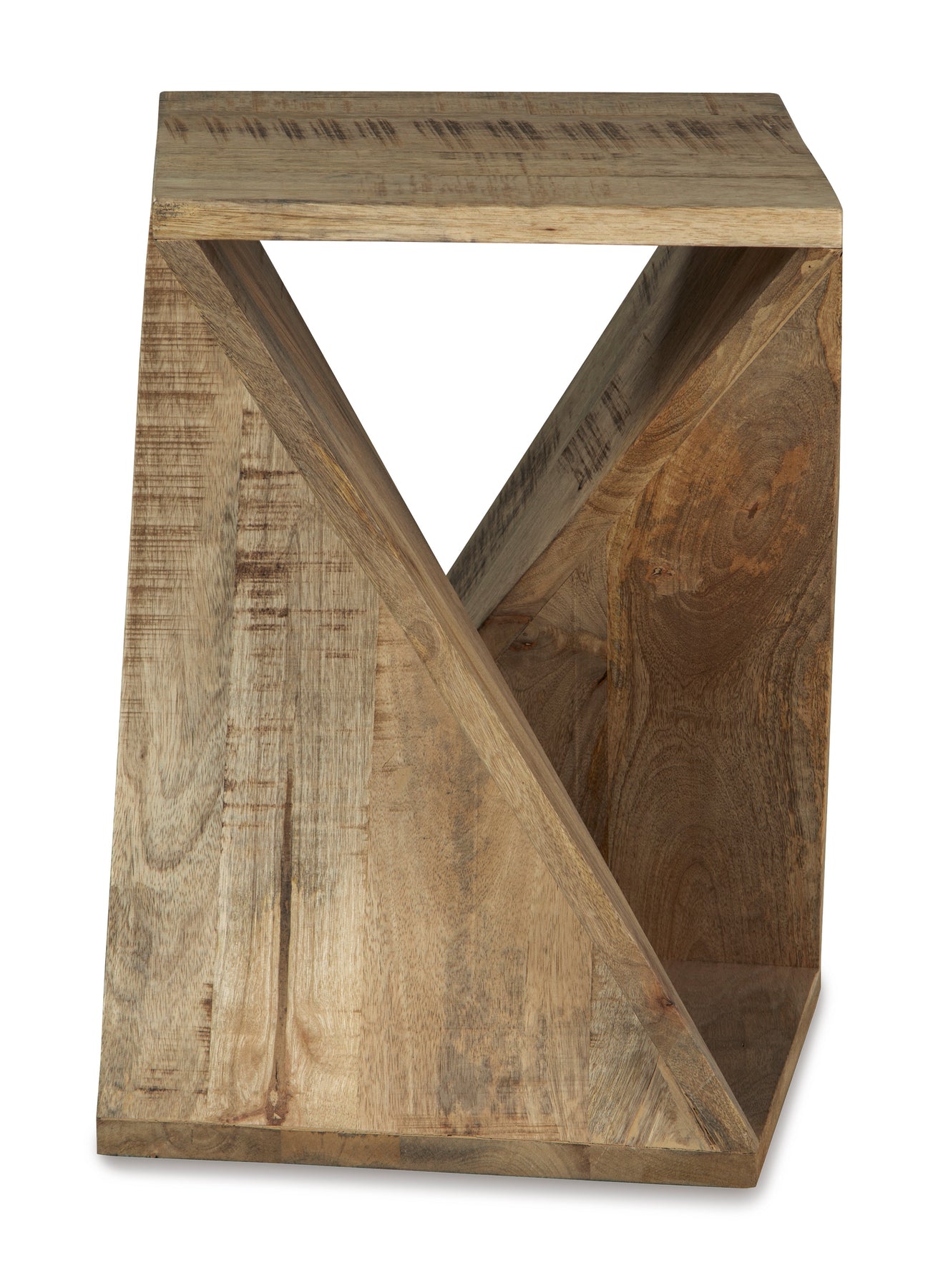 Accent Table,Medium,Made with wood;Distressed brown finish;Saw mark plank styling;Open twist design