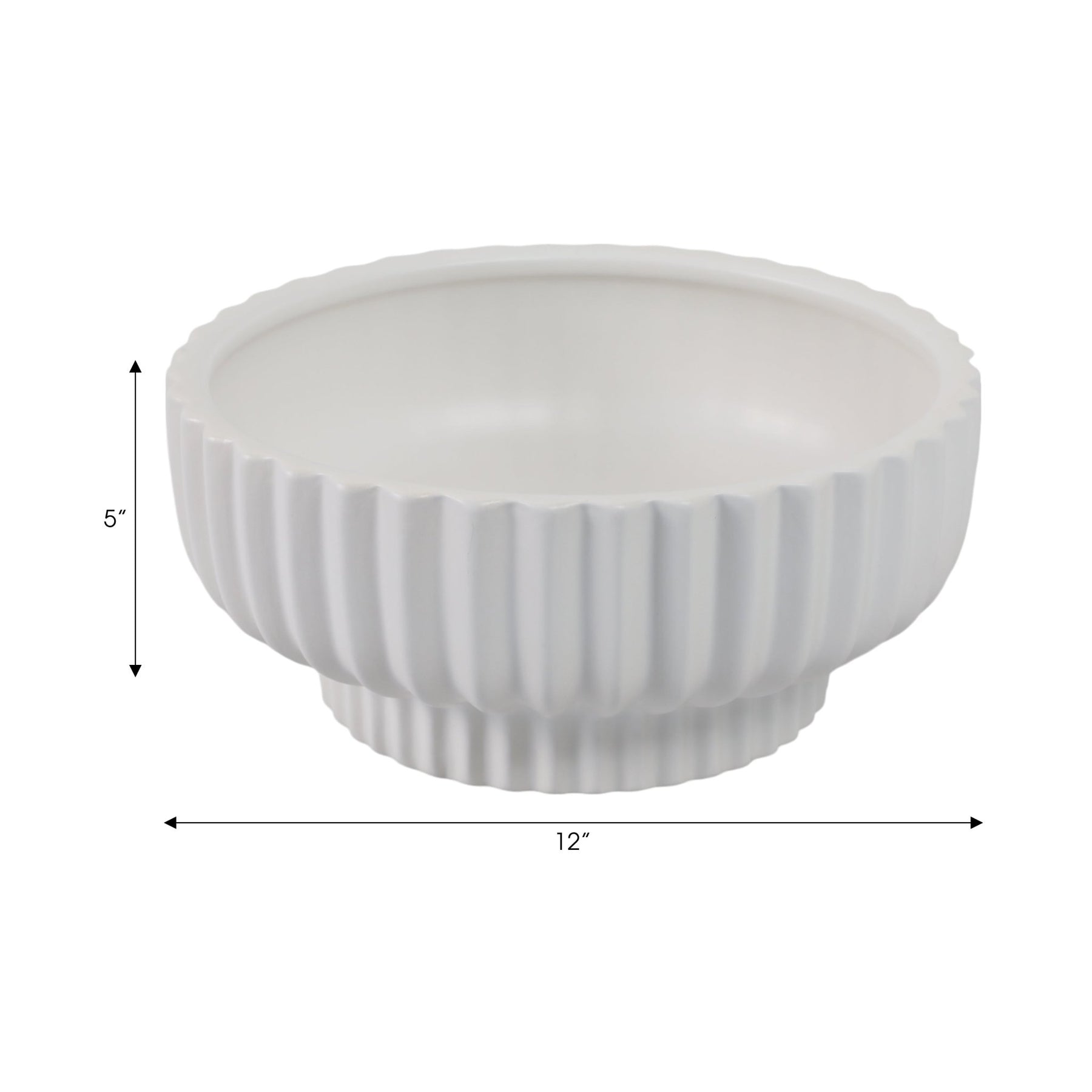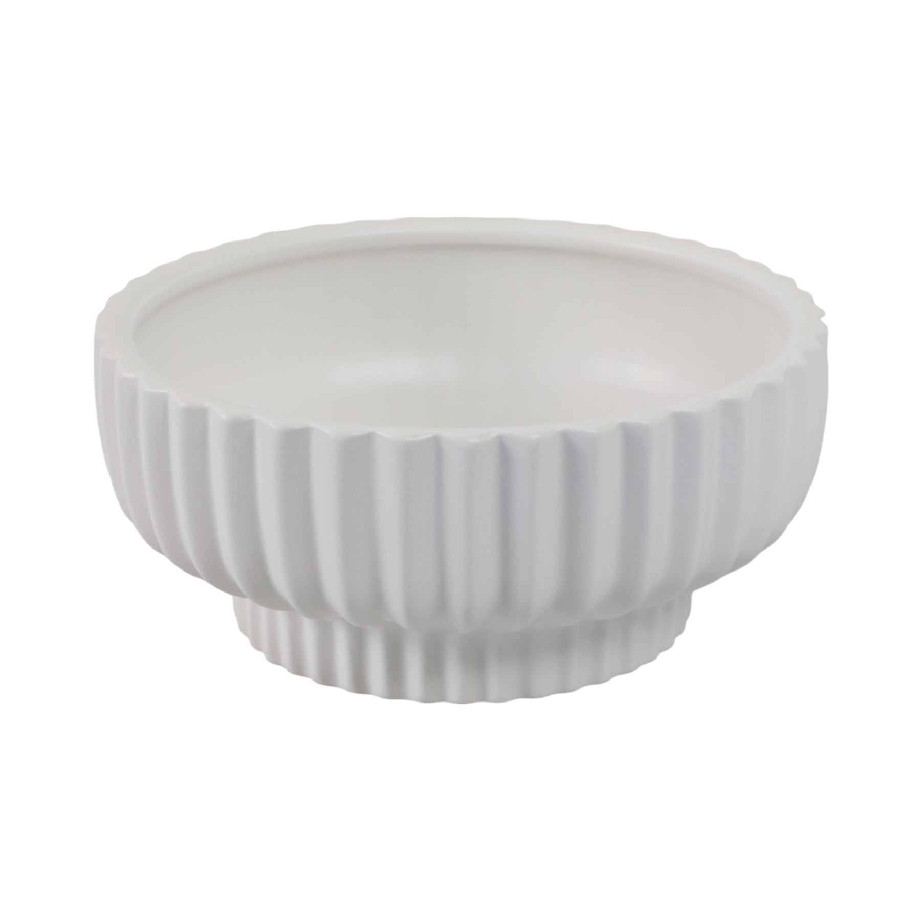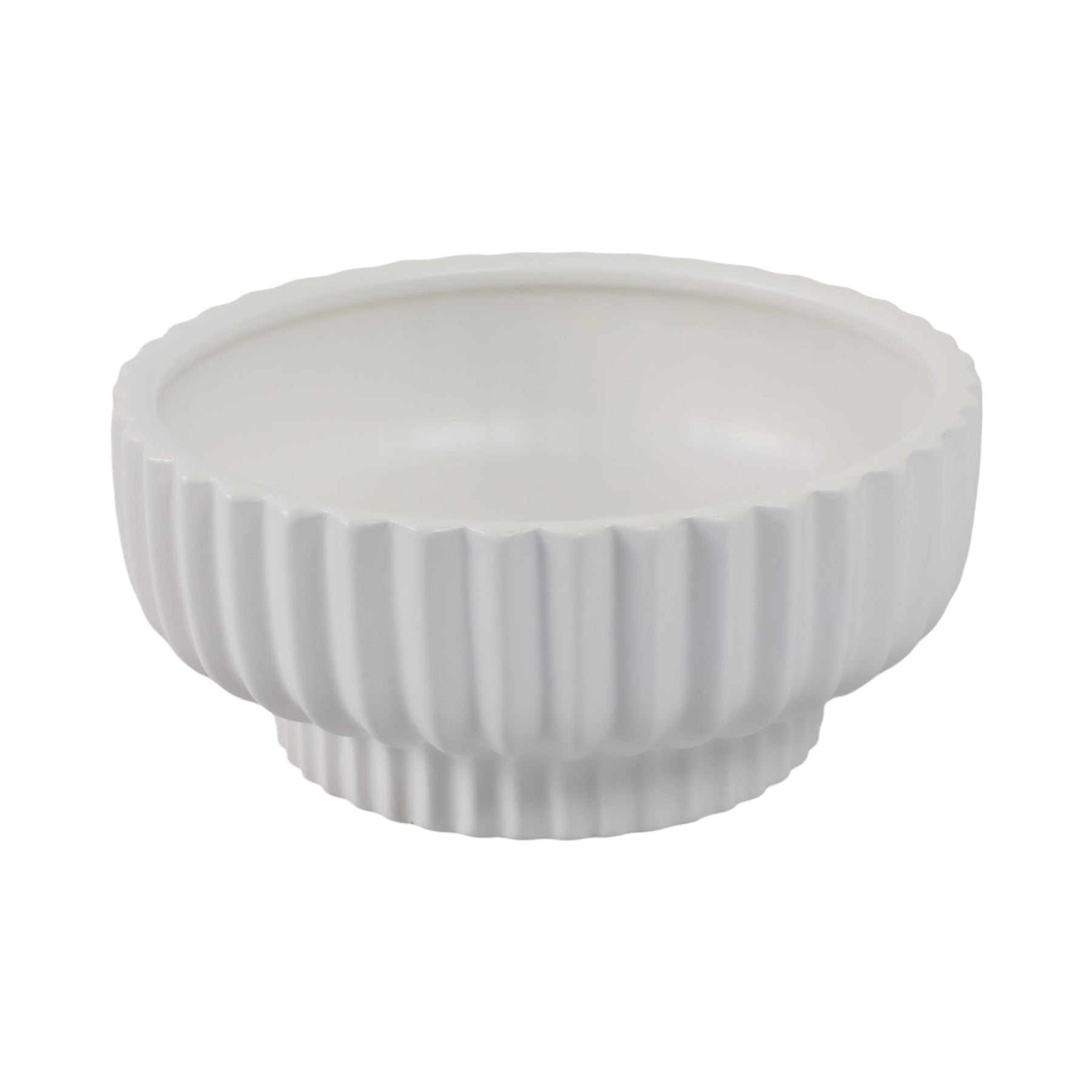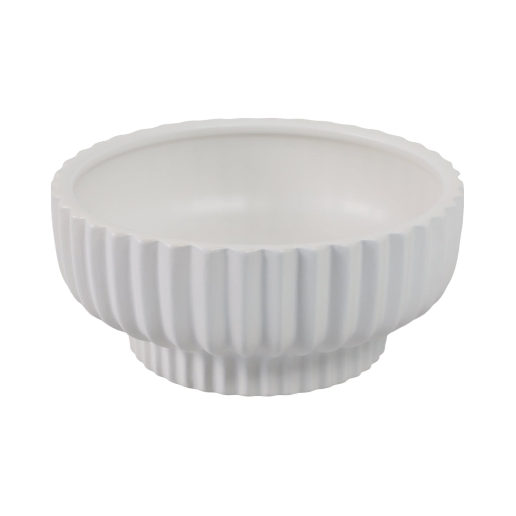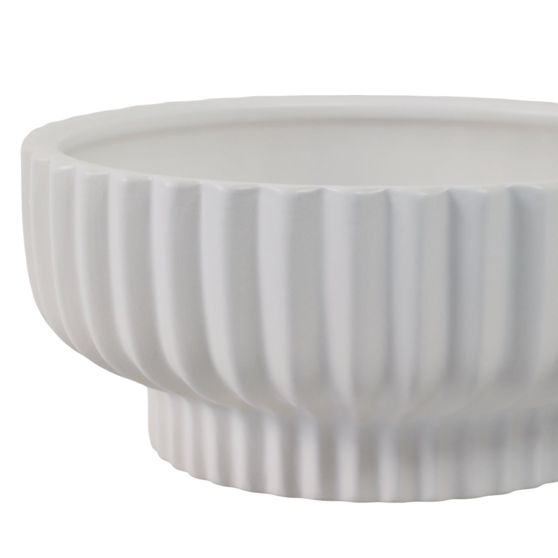12x5" Ridged Pedestal Bowl, White - Al Rugaib Furniture