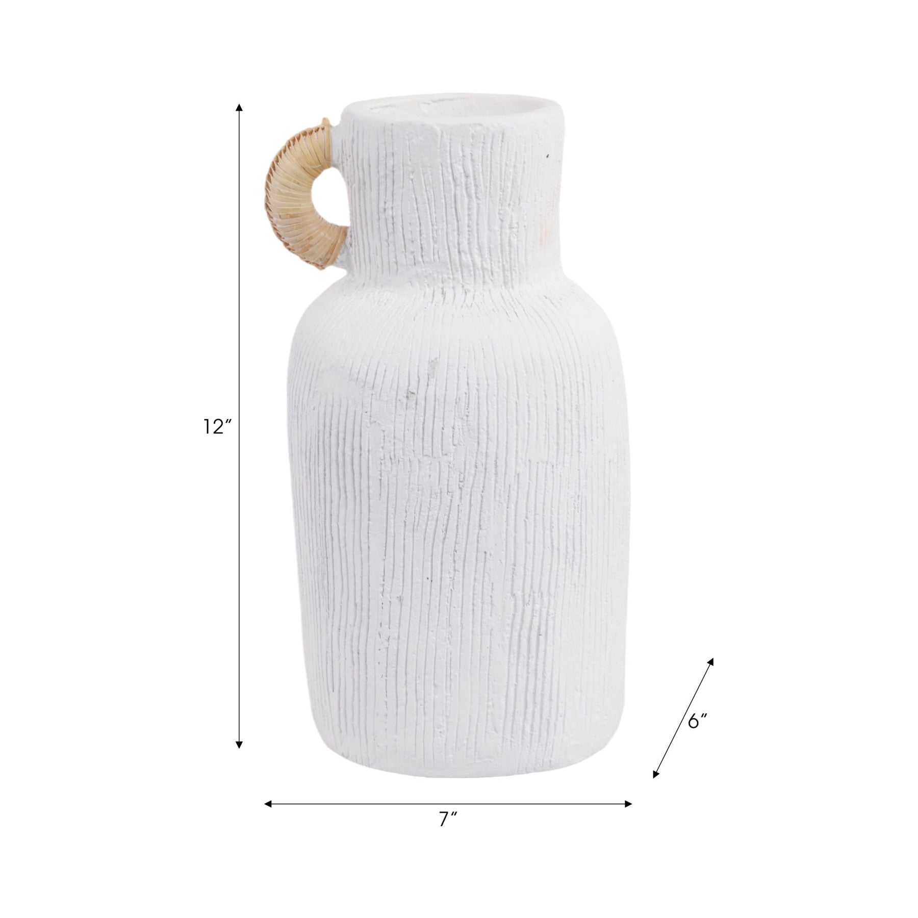 13" Textured Terracotta Vase W/rattan Handle, Wht