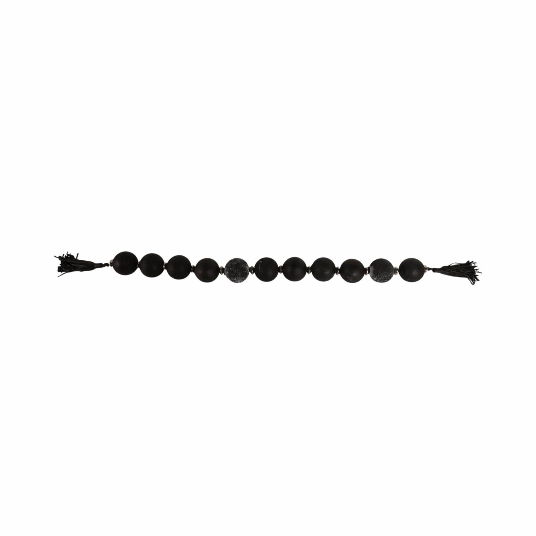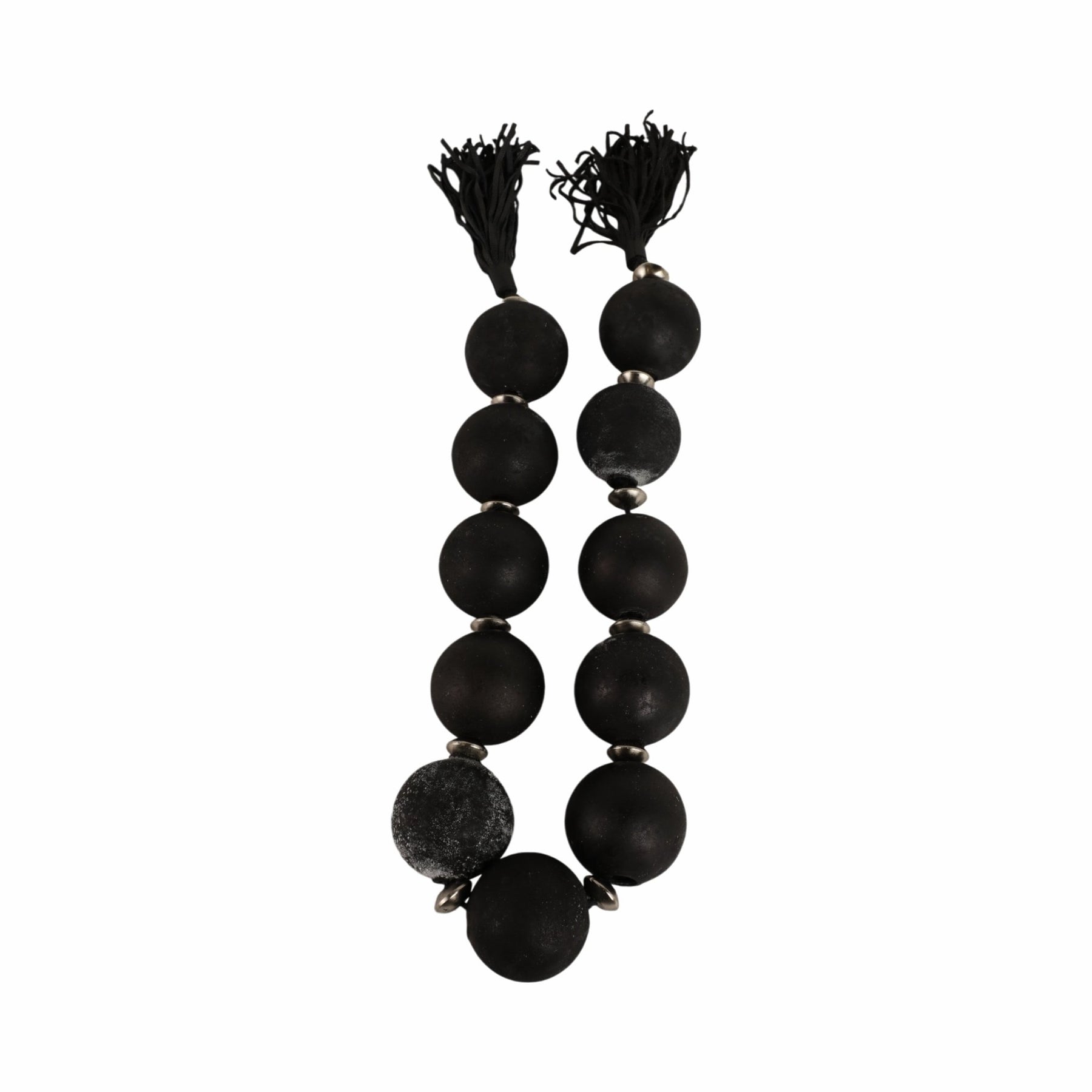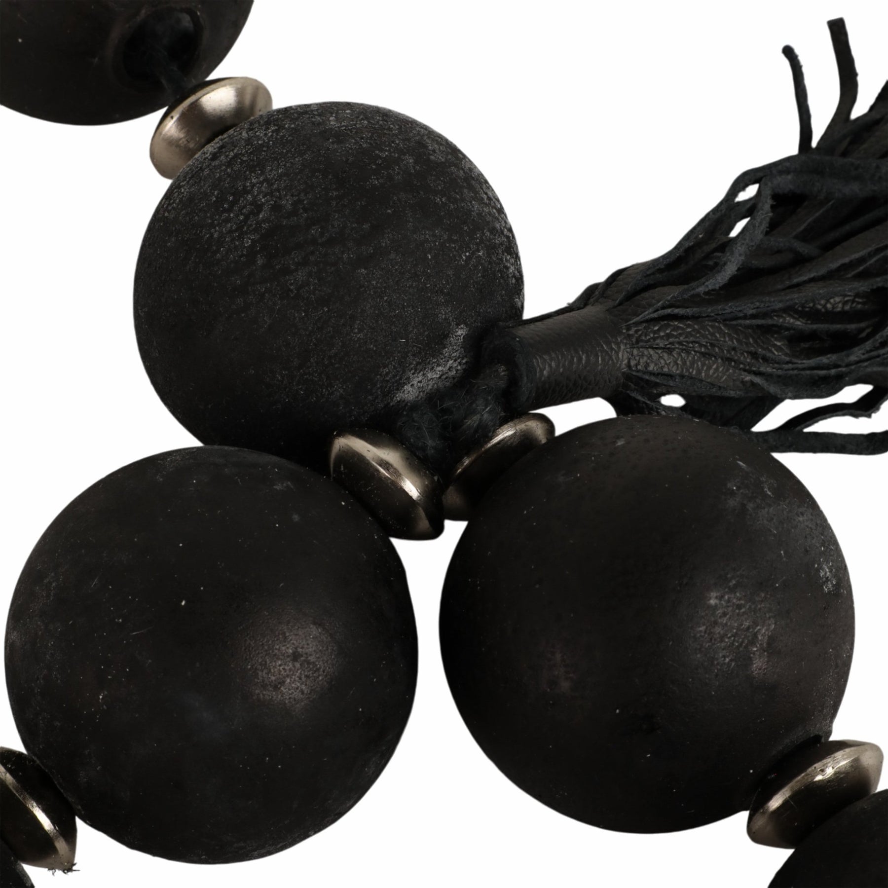 56'' Renton Blk & Slvr Glass Garland W Lthr Tassel