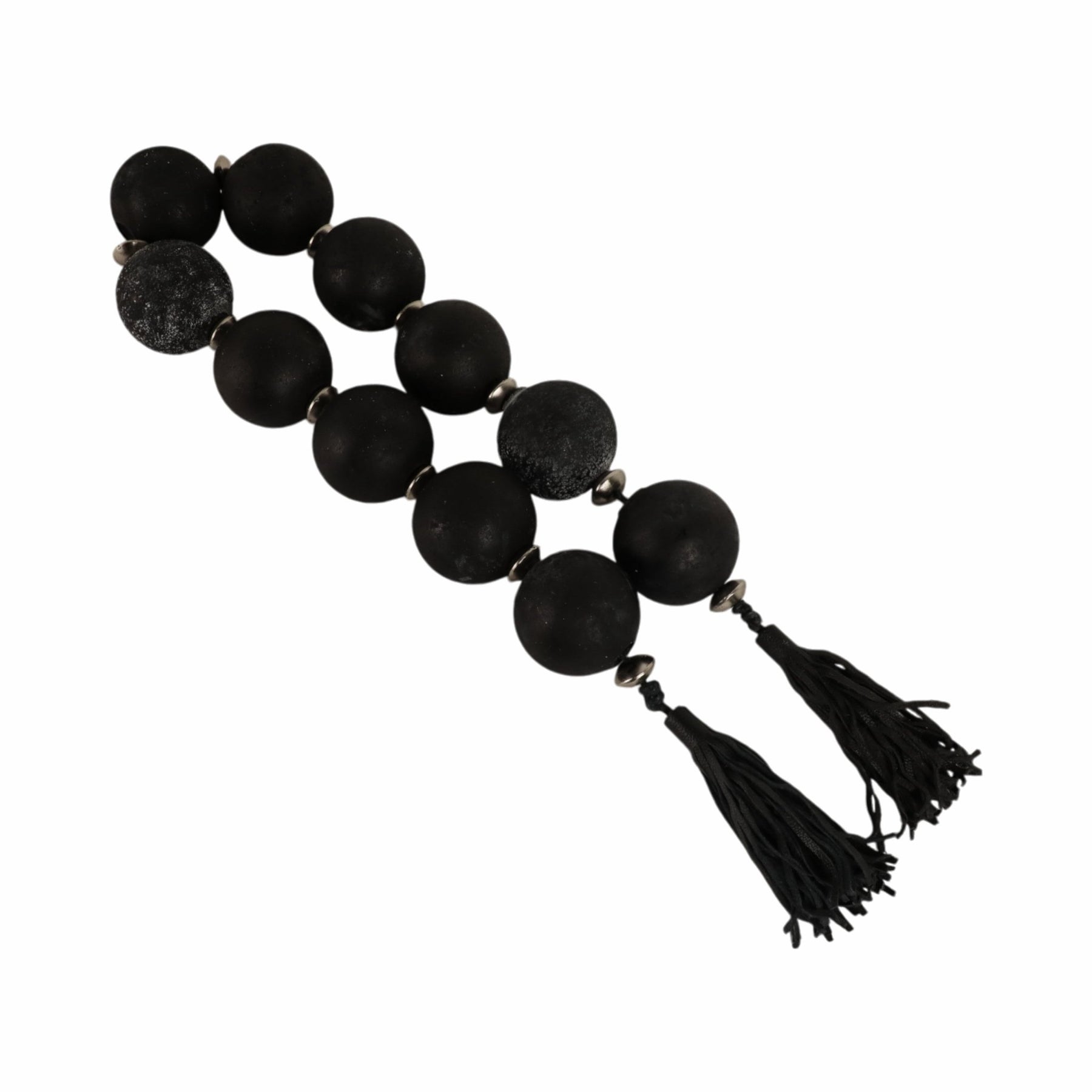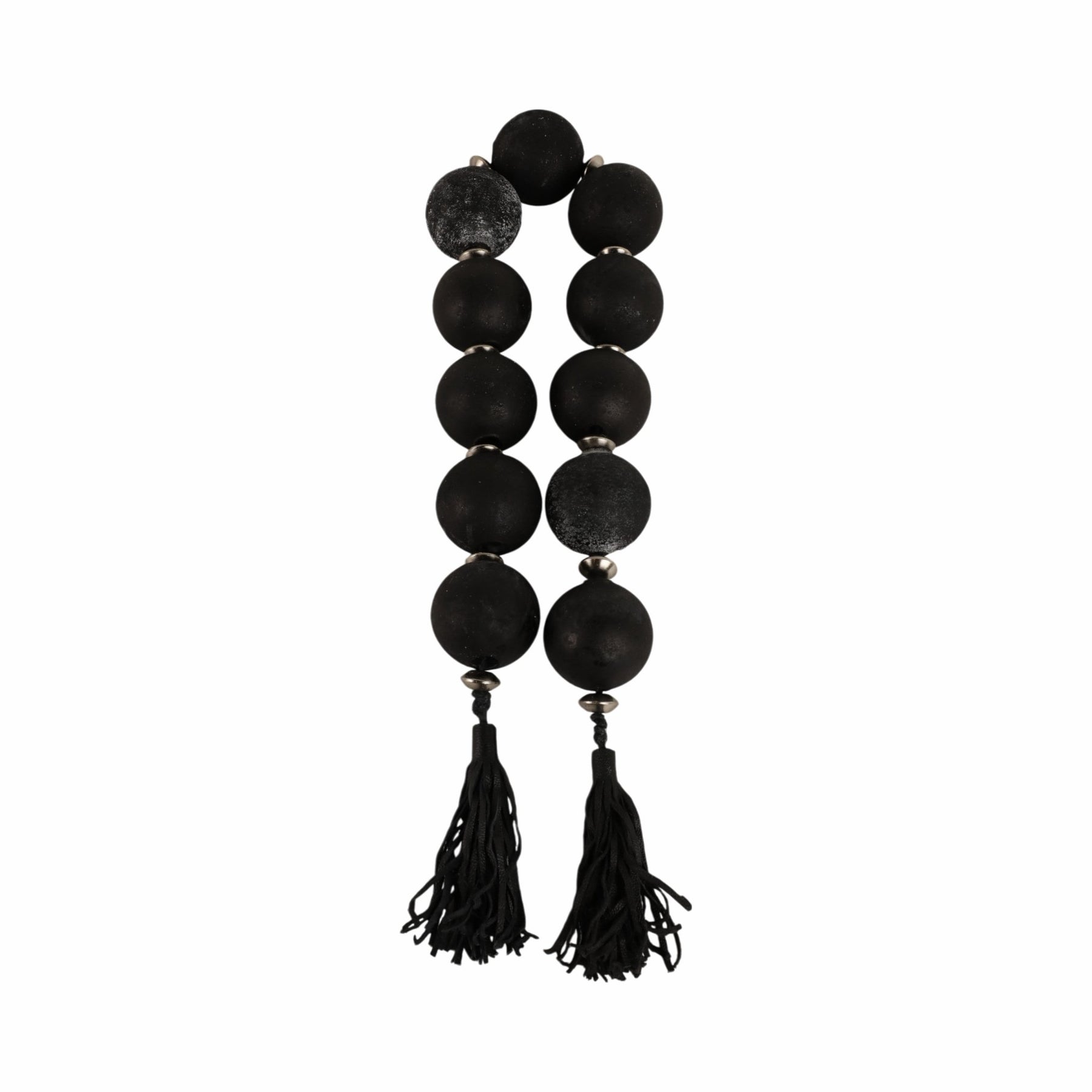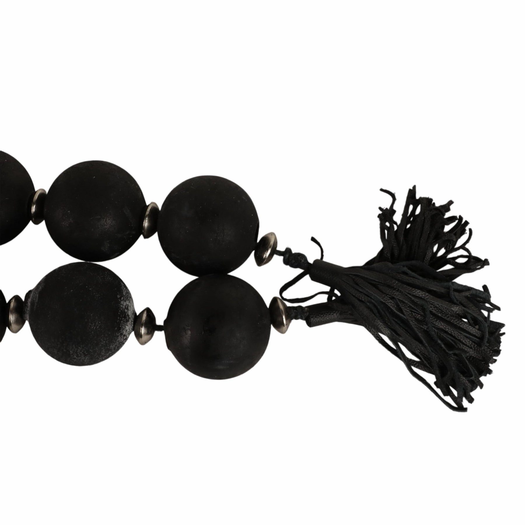 56'' Renton Blk & Slvr Glass Garland W Lthr Tassel