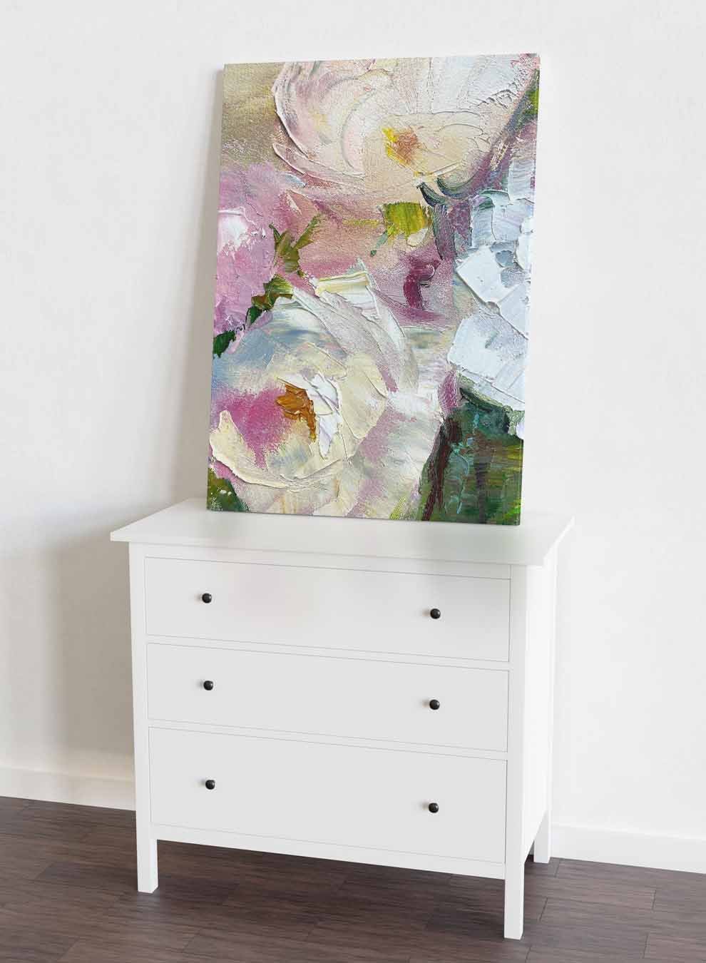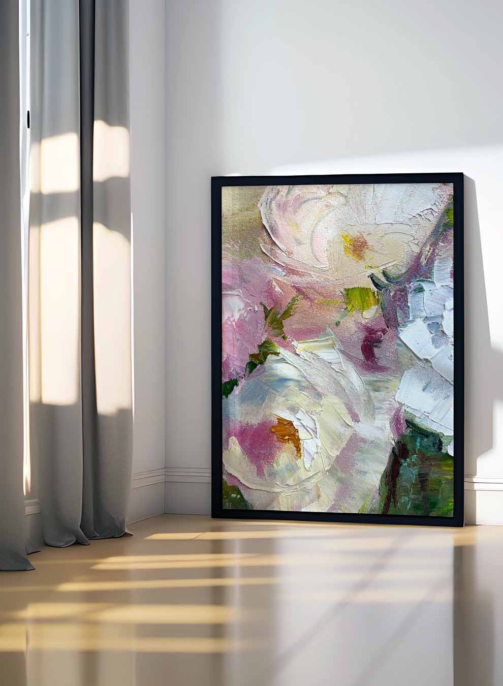 Canvas Wall Art Stretched Over Wooden Frame with Black Floating Frame