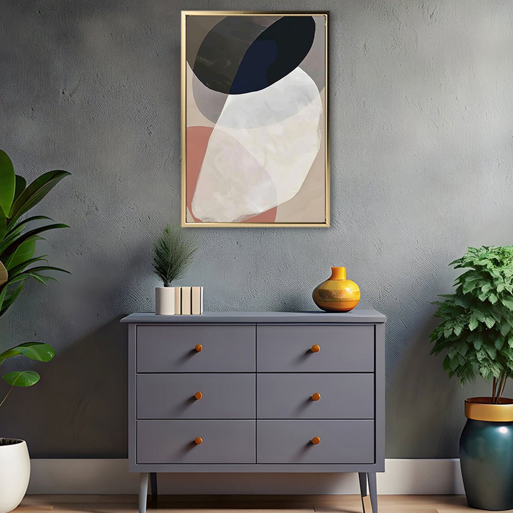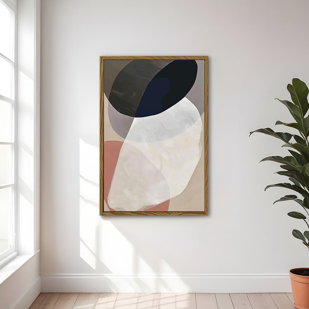 Canvas Wall Art Stretched Over Wooden Frame with Floating Frame and Rocks Abstract Painting CV4215