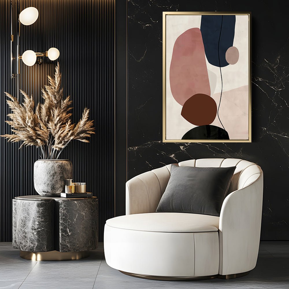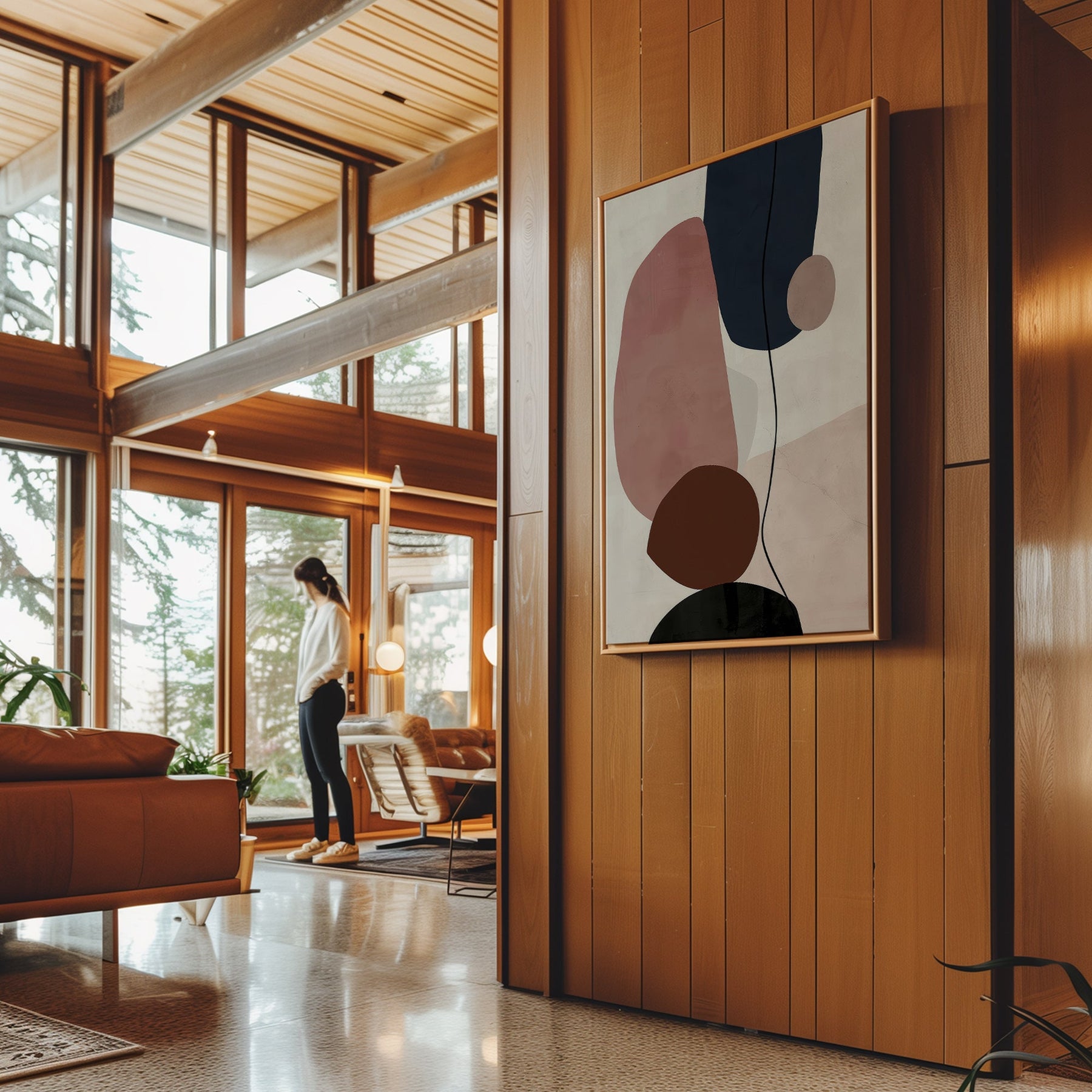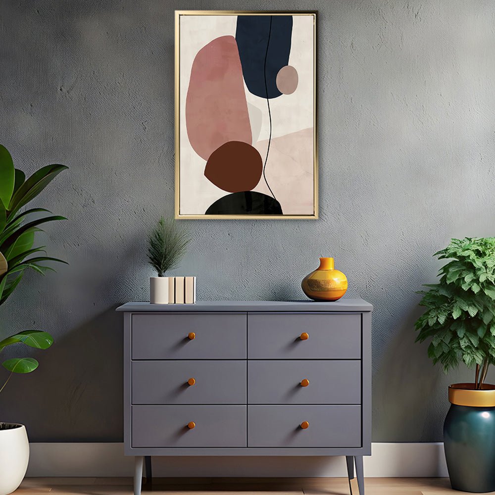 Canvas Wall Art Stretched Over Wooden Frame with Floating Frame and Rocks And Plants Abstract Painting CV4217