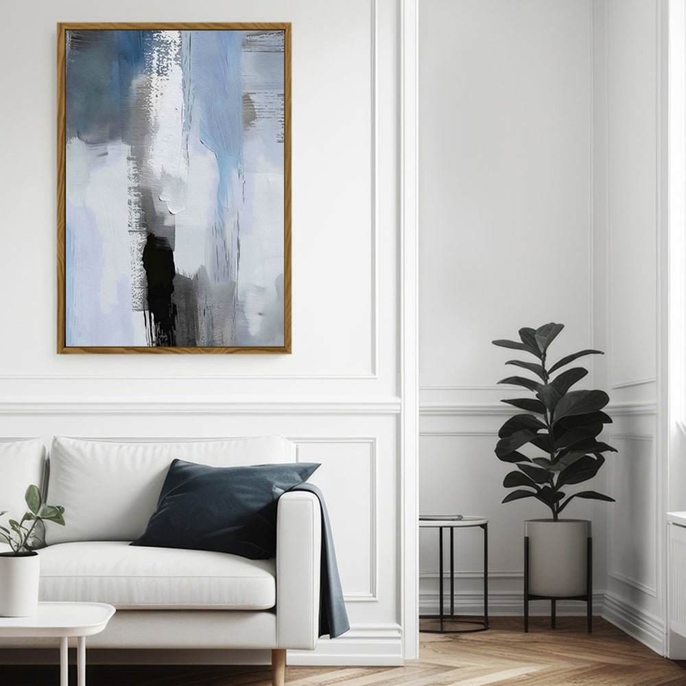 Canvas Wall Art Stretched Over Wooden Frame with Floating Frame and Shades Of Grey Abstract Painting CV4224