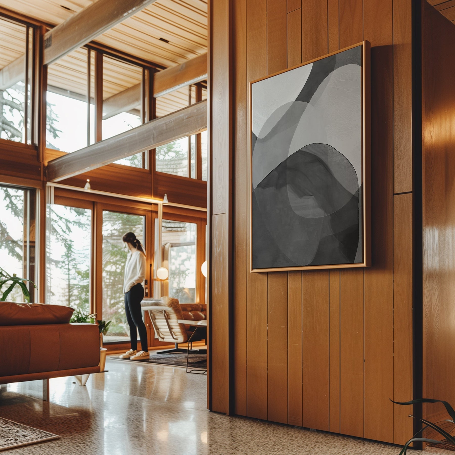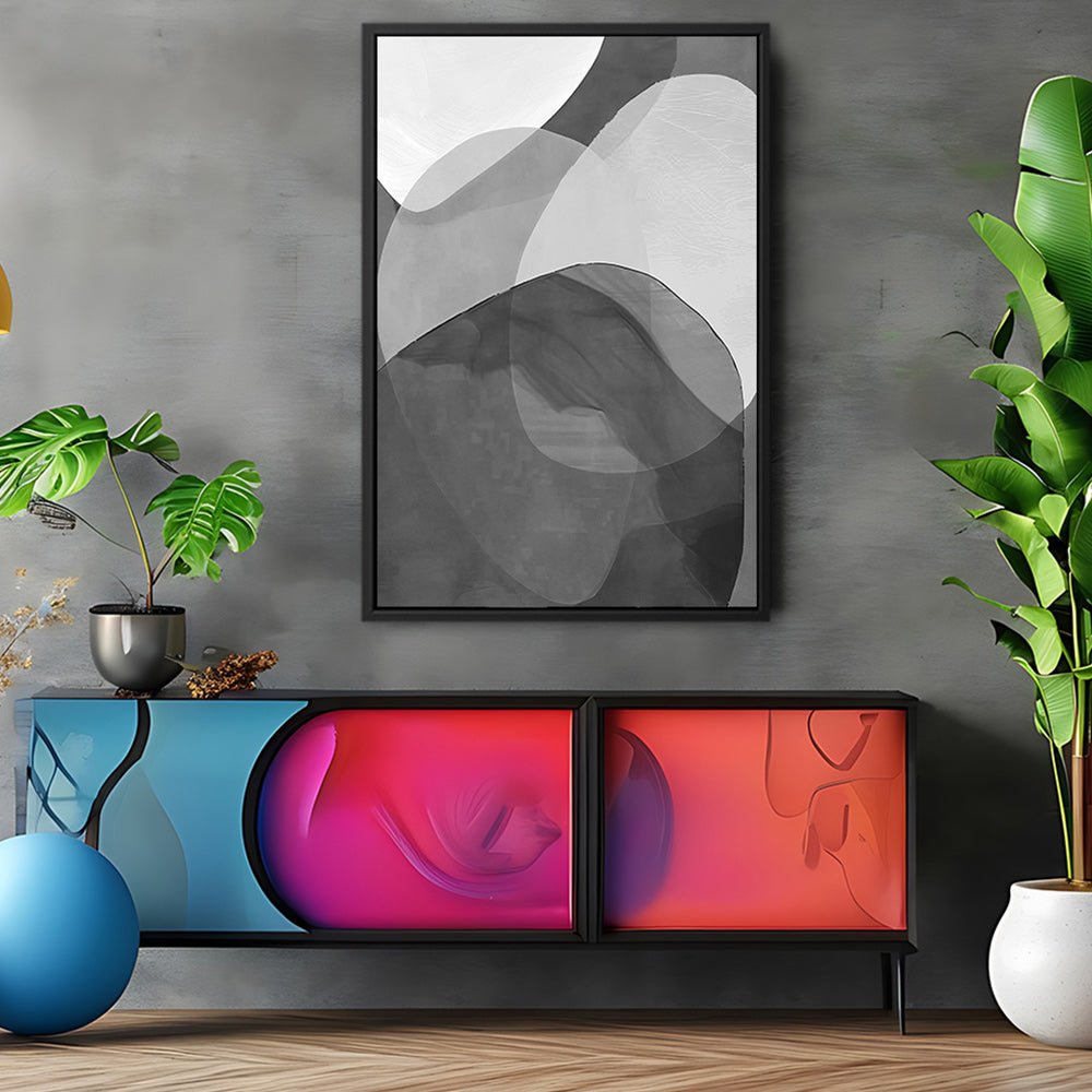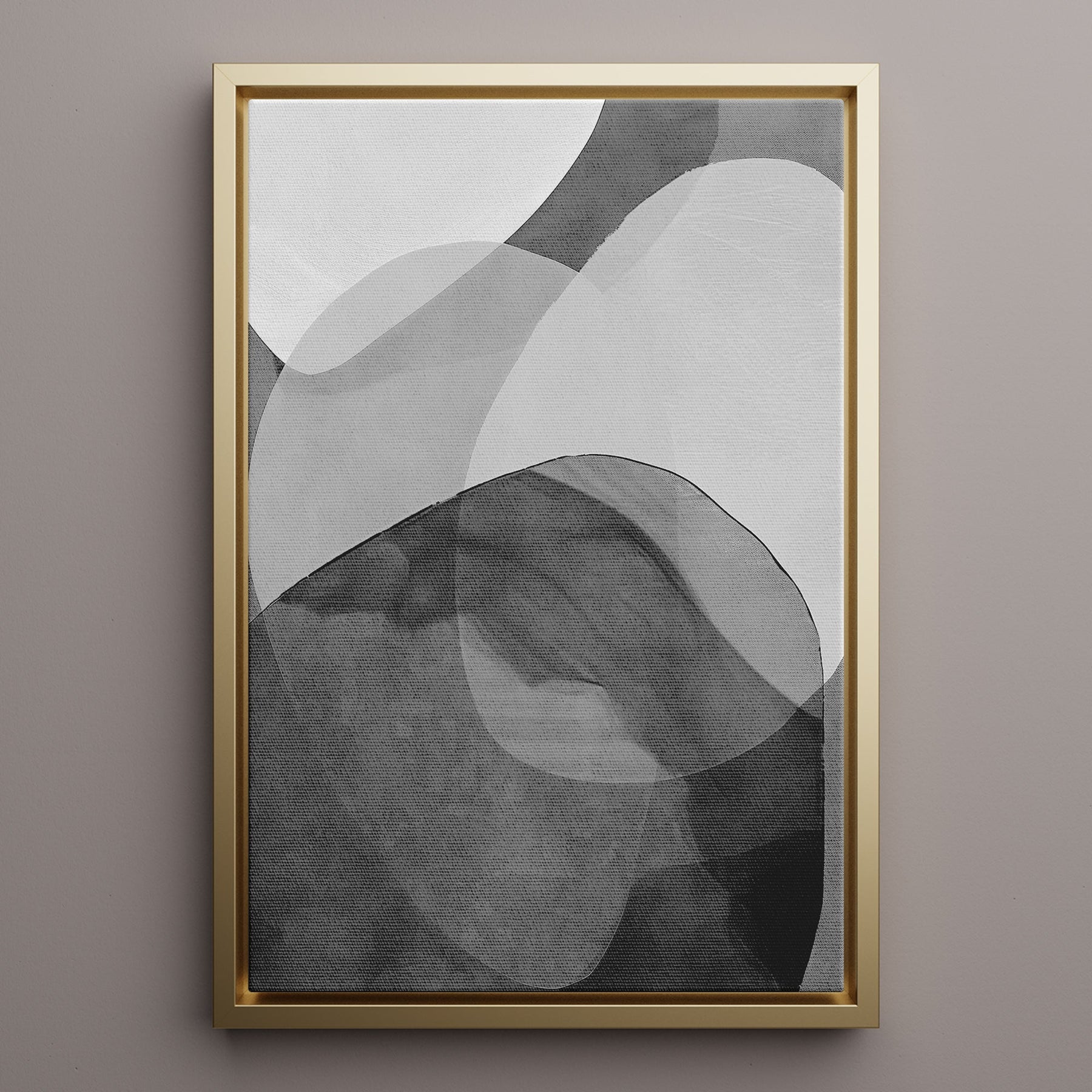 Canvas Wall Art Stretched Over Wooden Frame with Floating Frame and Shades Of Grey Abstract Painting CV4225