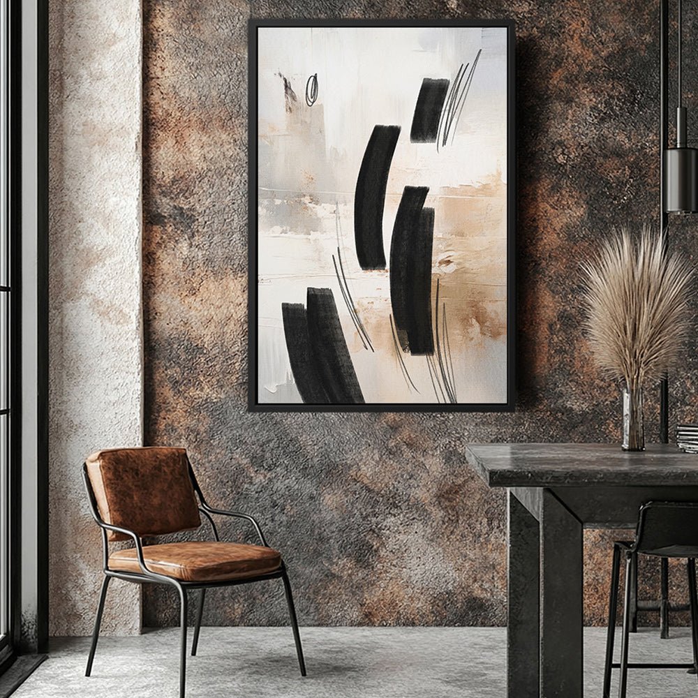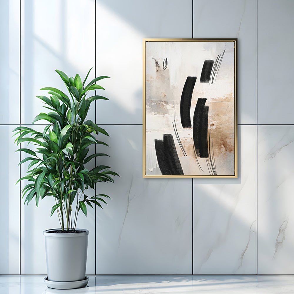 Canvas Wall Art Stretched Over Wooden Frame with Floating Frame and Shapes Abstract Painting CV4236Paintings & Pictures