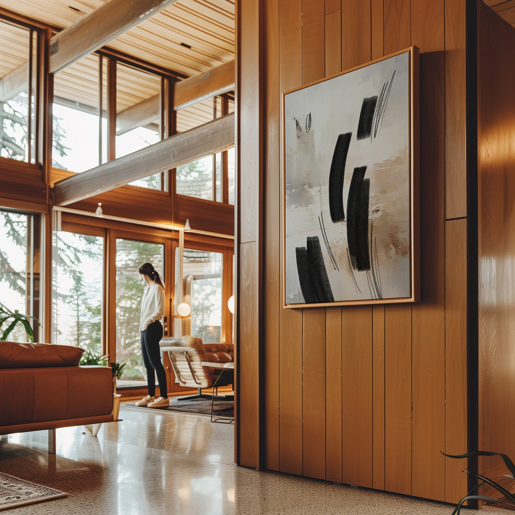 Canvas Wall Art Stretched Over Wooden Frame with Floating Frame and Shapes Abstract Painting CV4236