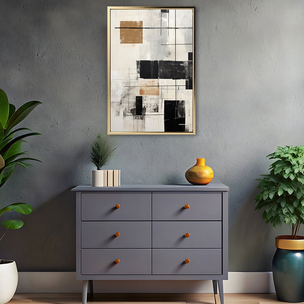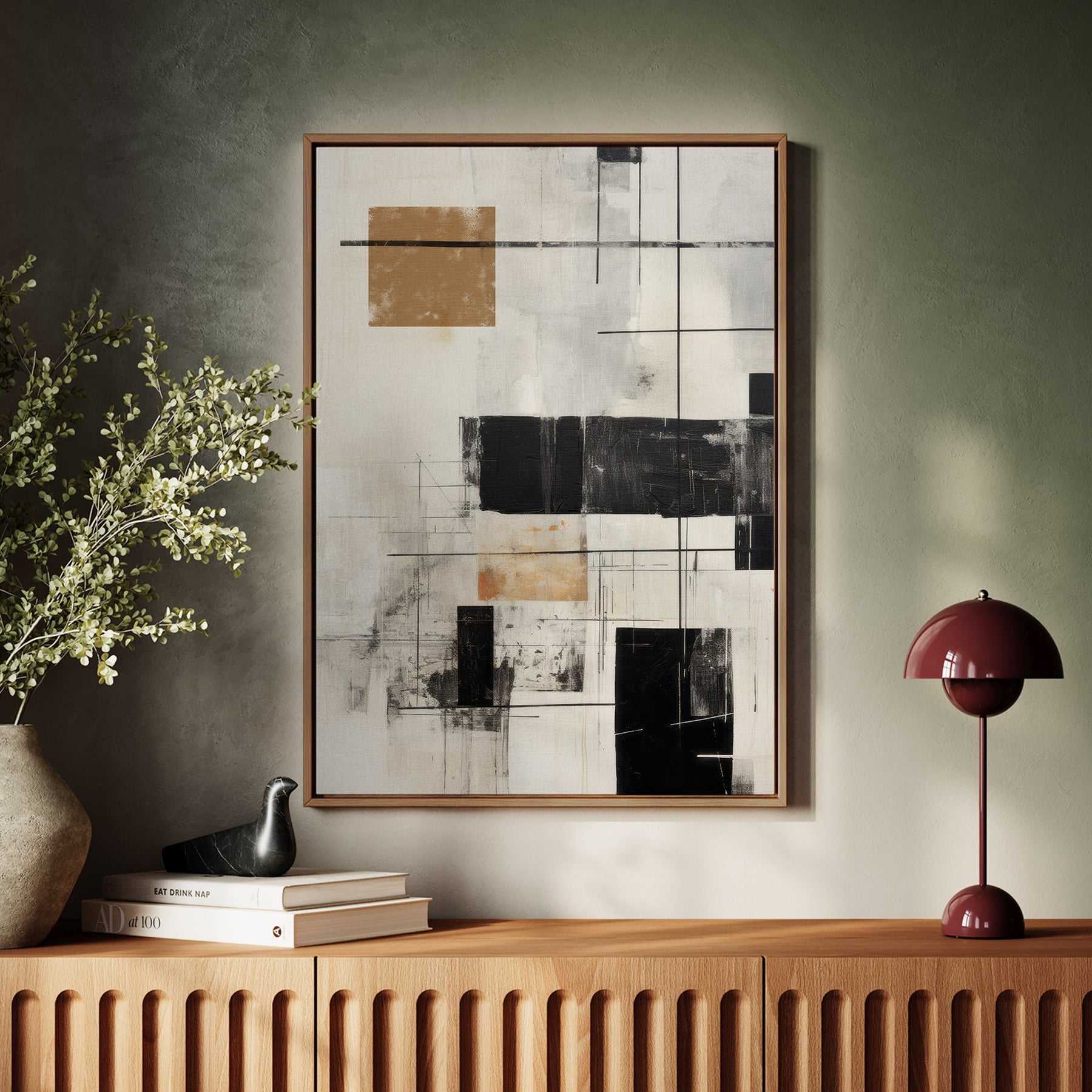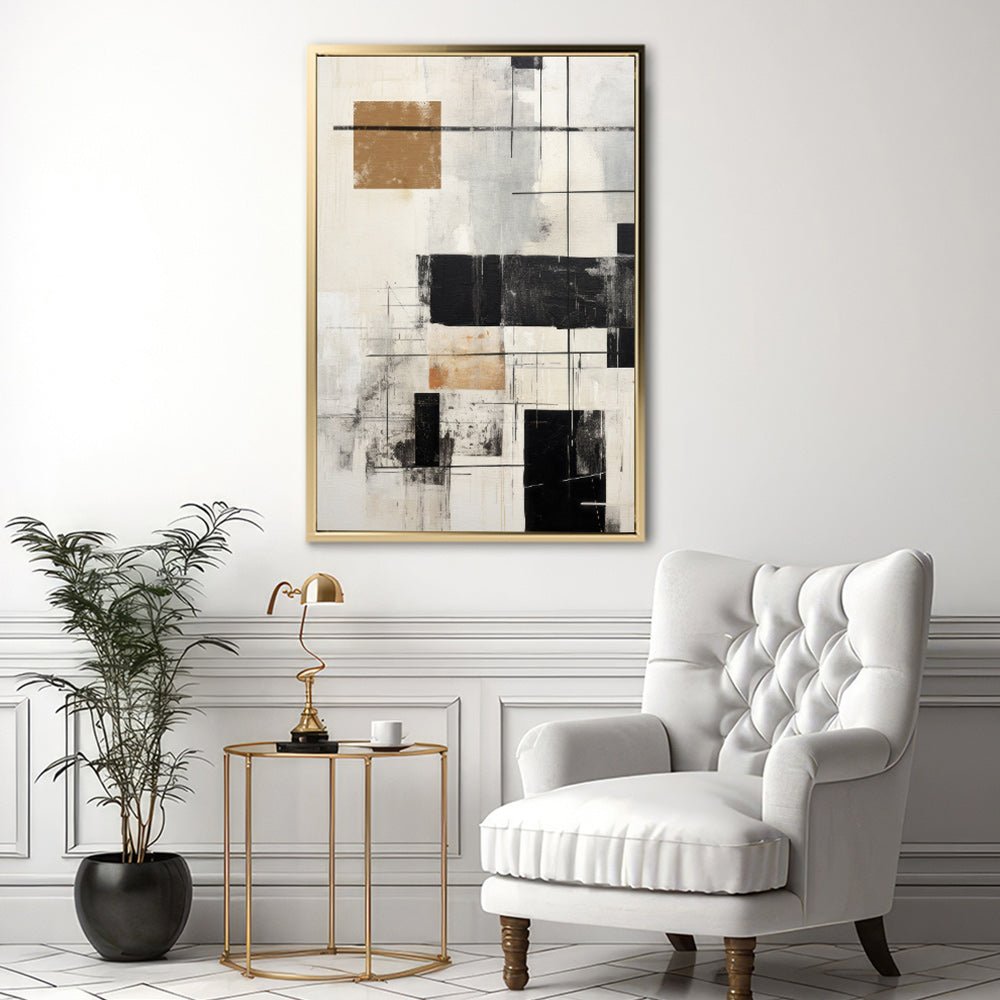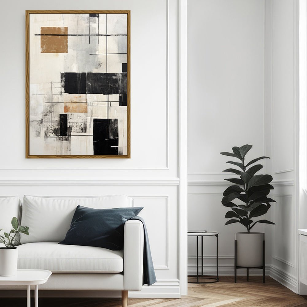 Canvas Wall Art Stretched Over Wooden Frame with Floating Frame and Squares Painting CV4211 - Al Rugaib Furniture