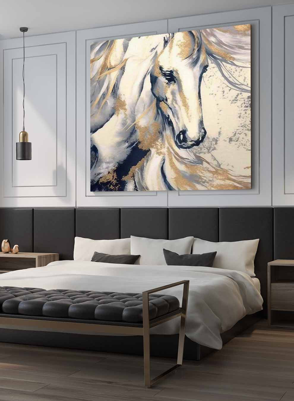 Square Canvas Wall Art Stretched Over Wooden Frame with Gold Floating Frame and Horse Oil Painting9