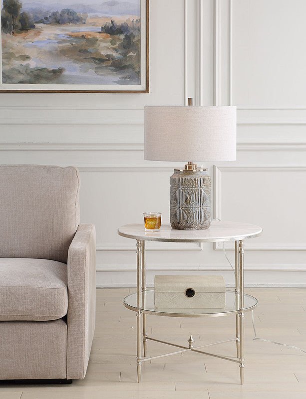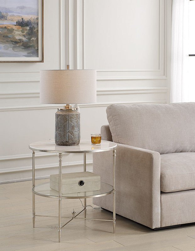 Henzler 68 W x 66 H x 68 D Silver Round End Table with Marble Top