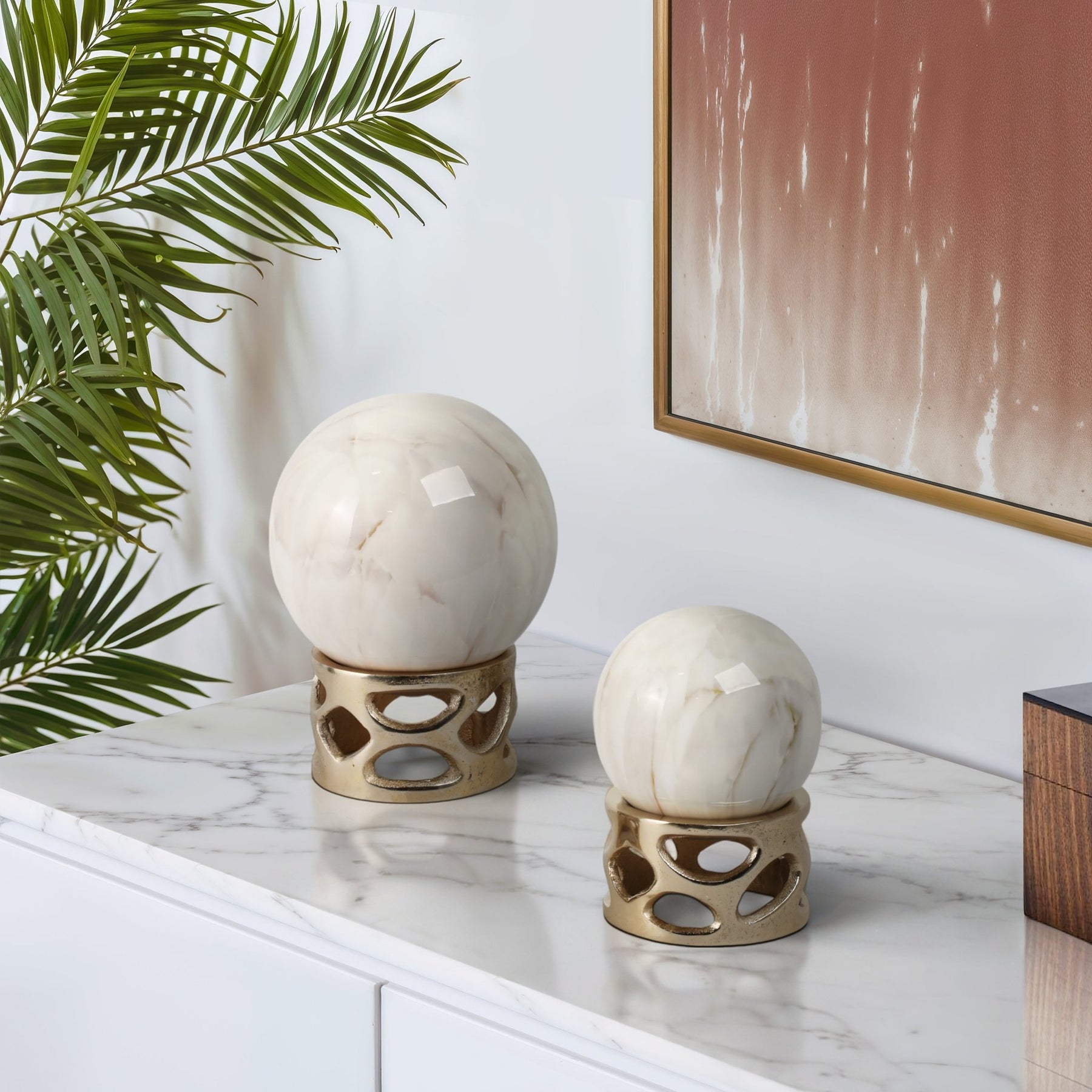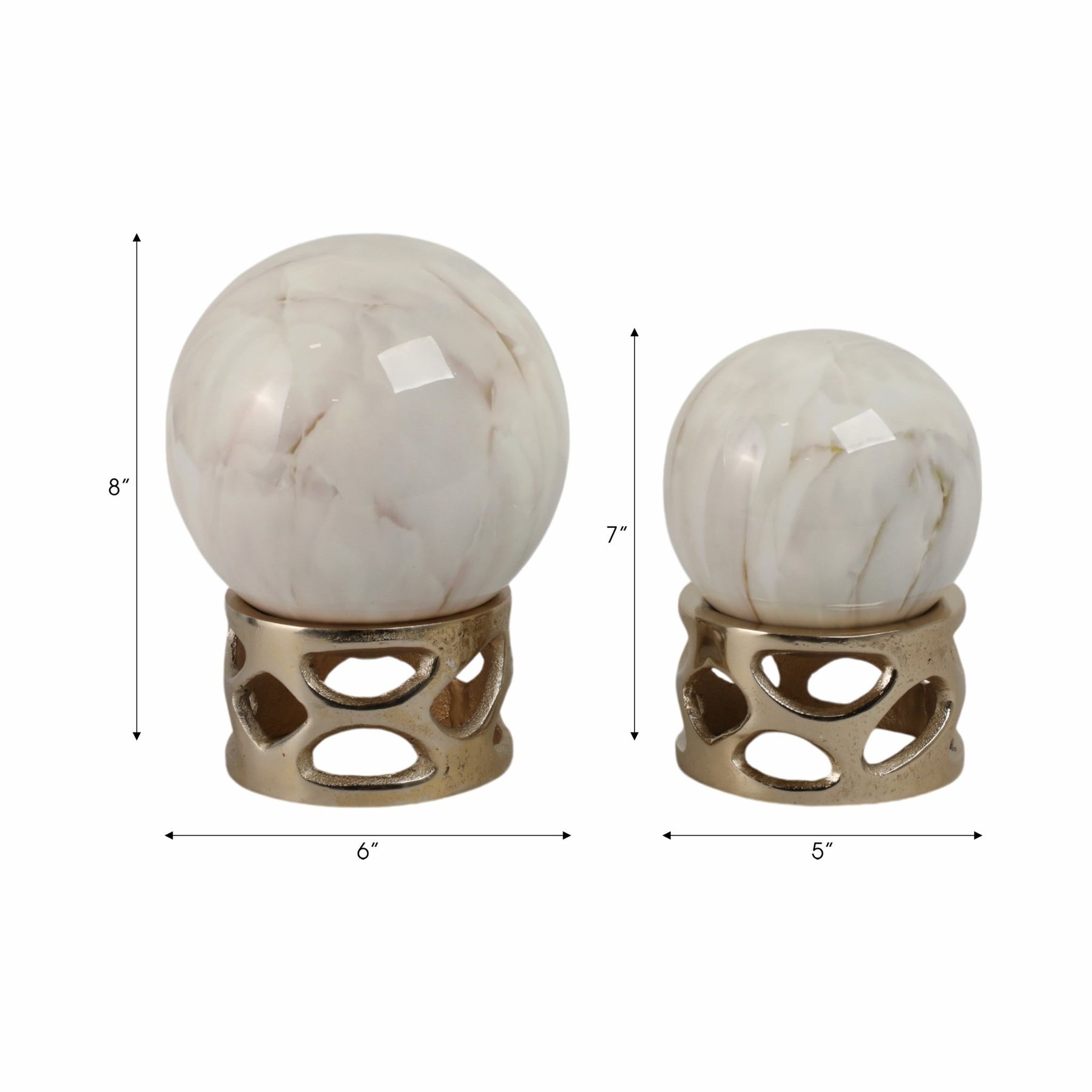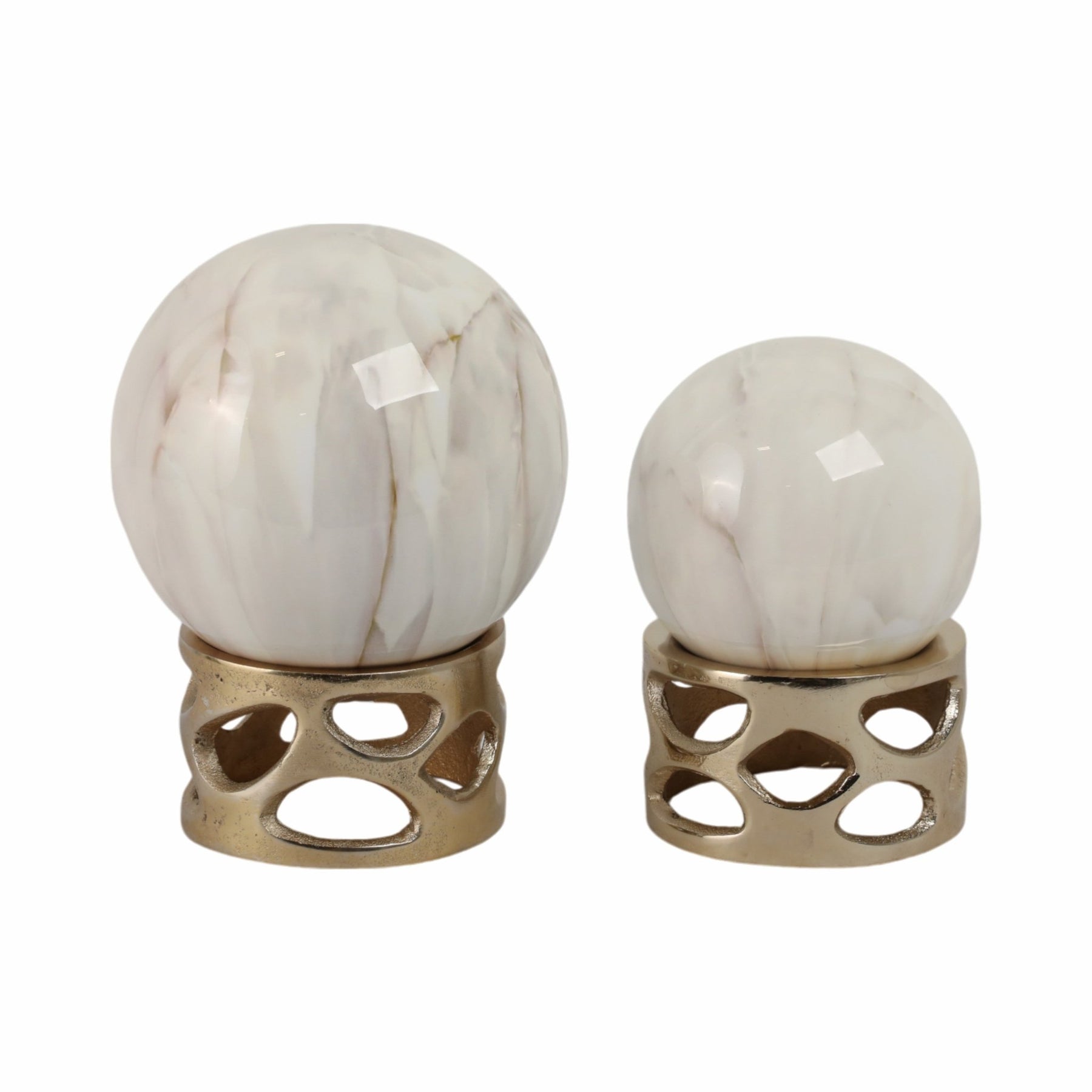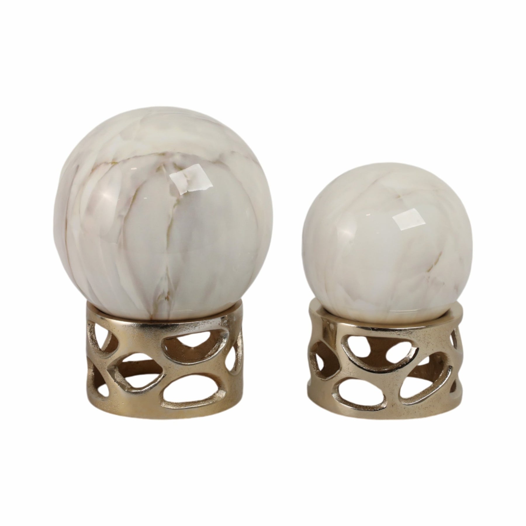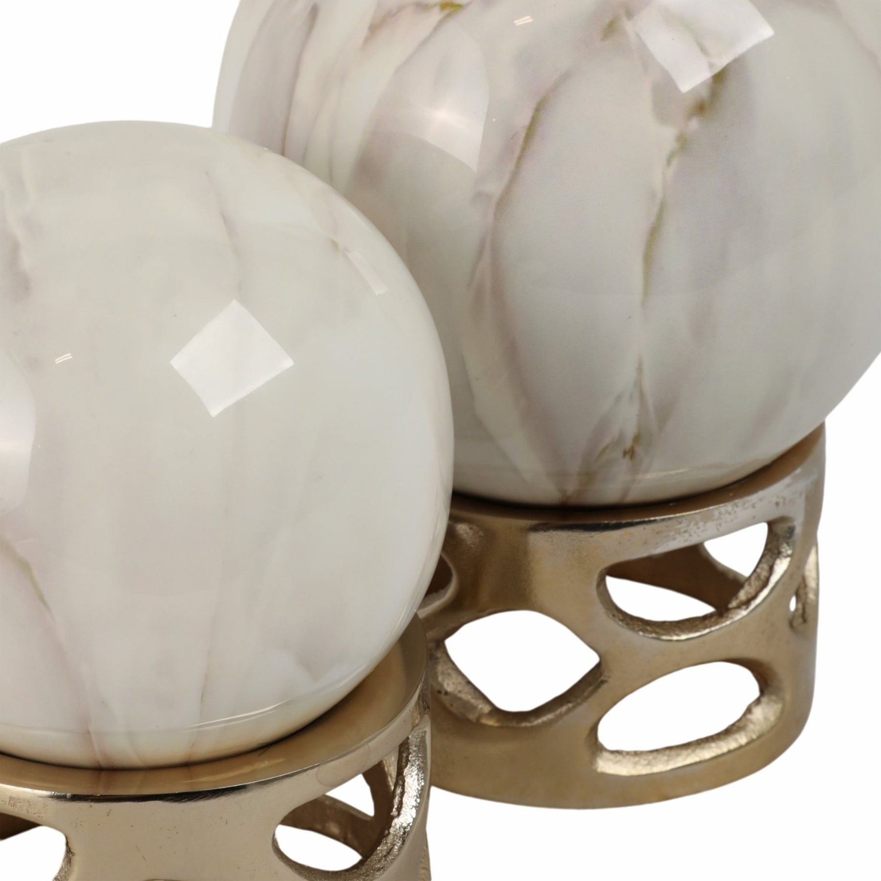S/2 7/8" ANOKA WHITE MARBLE SPHERE STATUARY - Al Rugaib Furniture