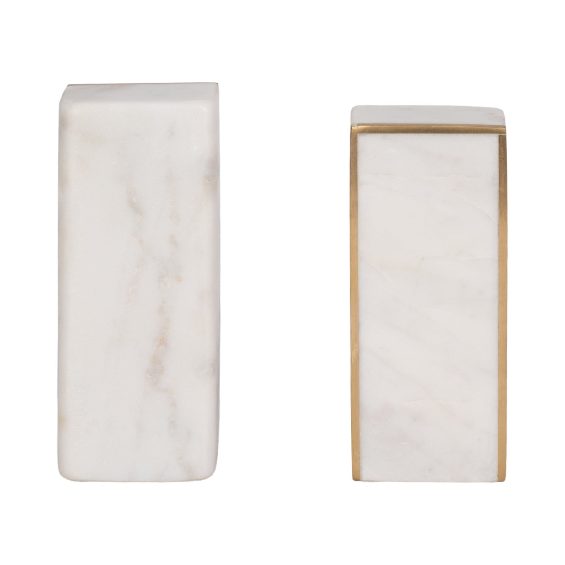 S/2 Marble 6"h Slanted Bookends W/gold Trim,white