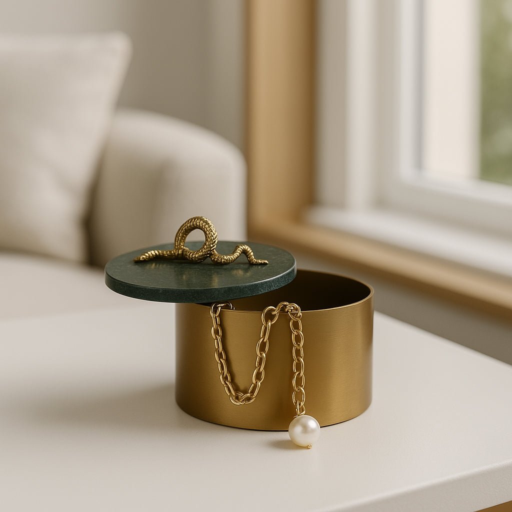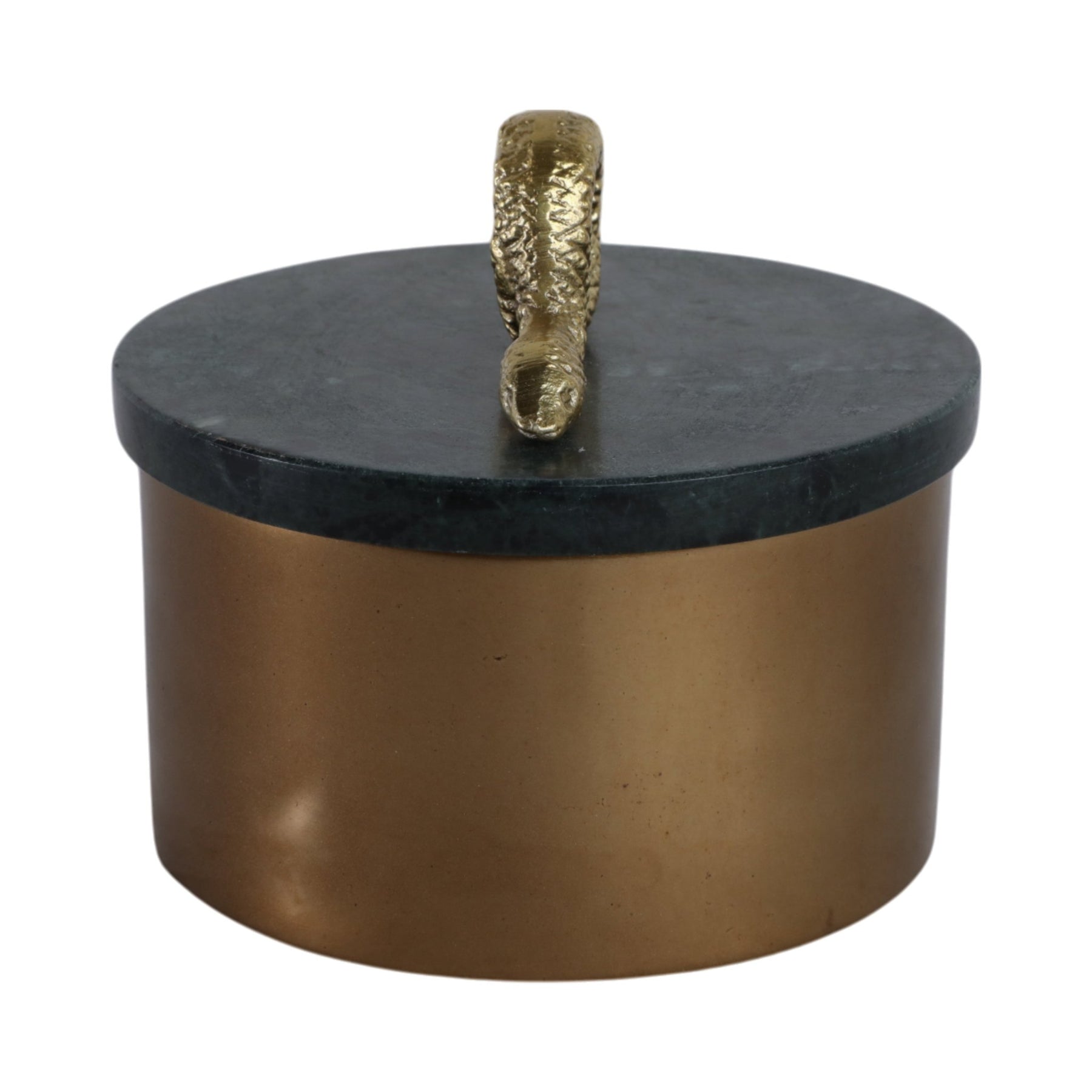 5x5" Round Marble & Metal Box With Snake, Green/go