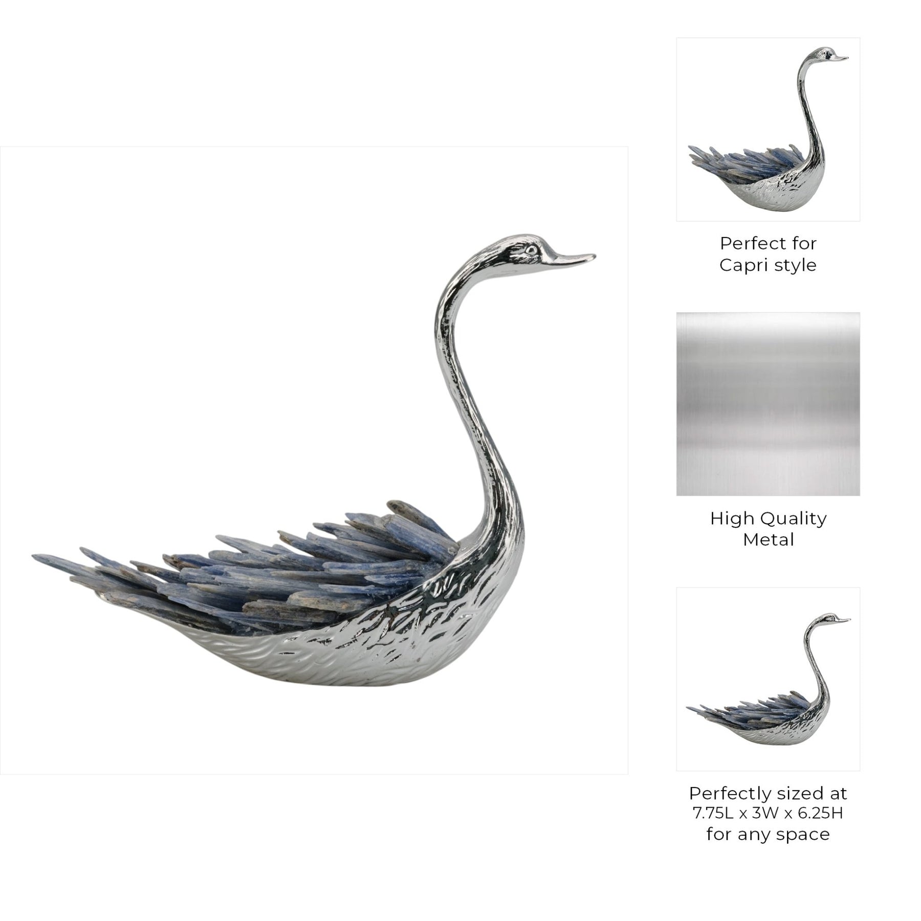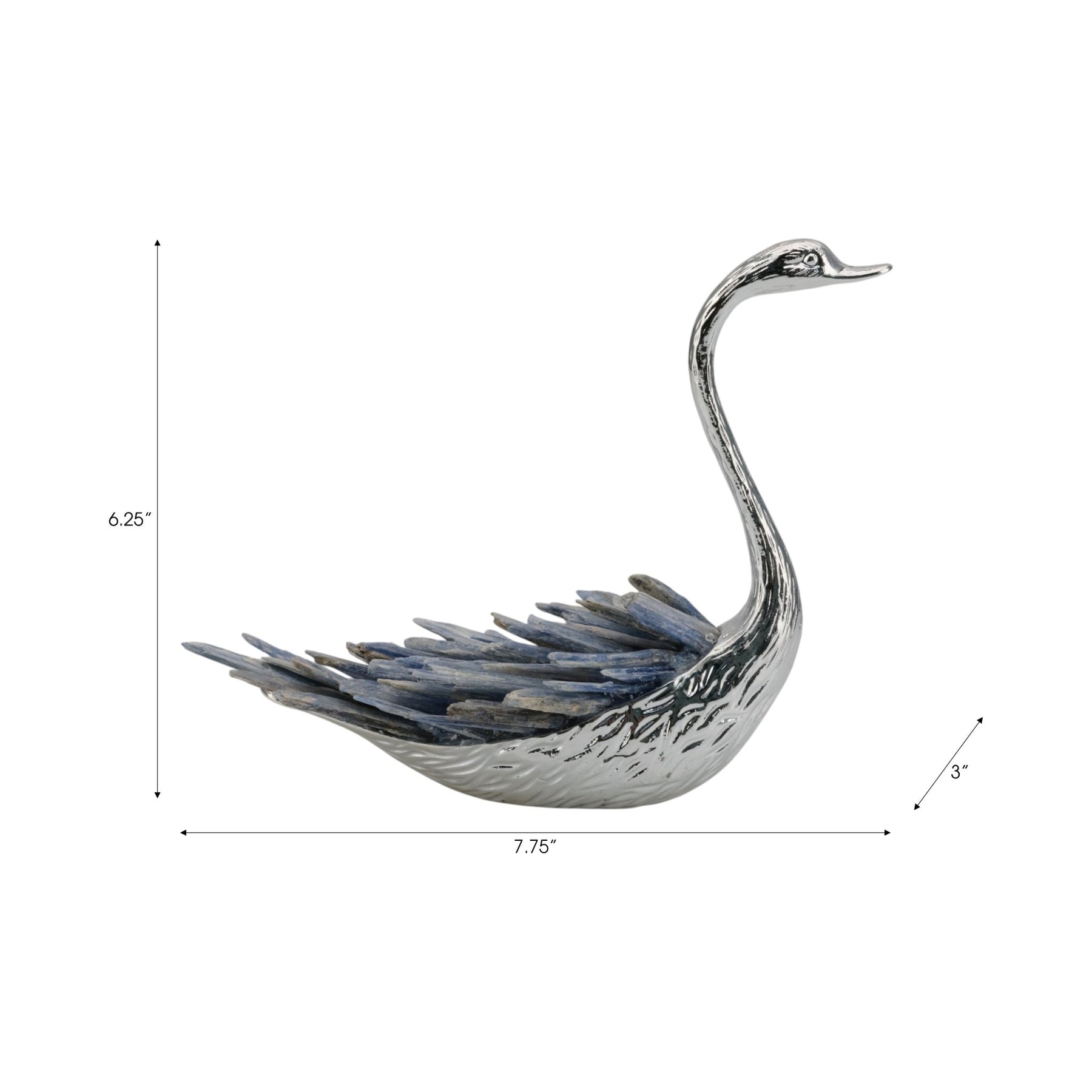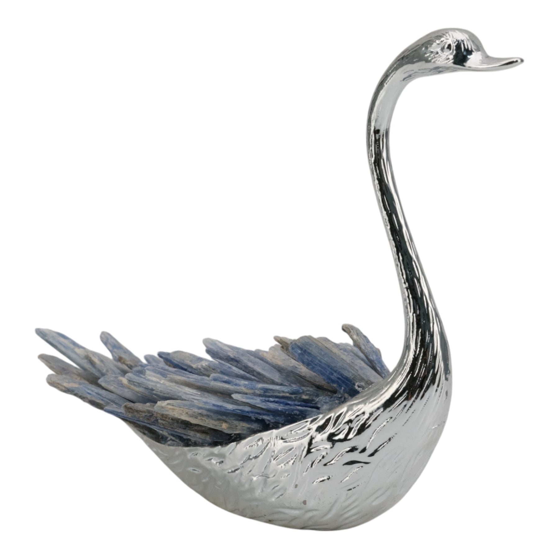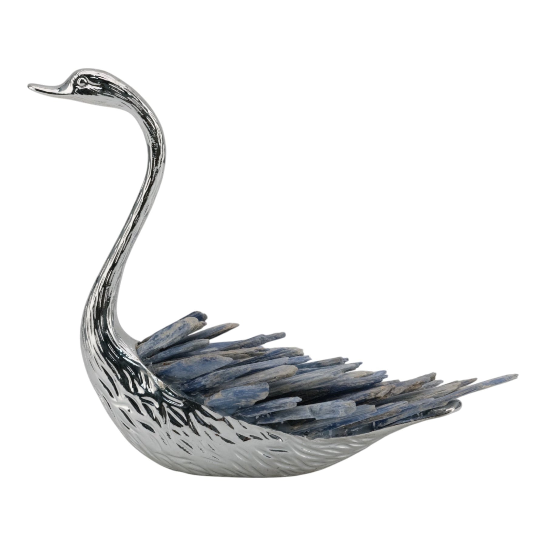 7"majesty Blue Kyanite Stone Sitting Metal Swan Wi - Al Rugaib Furniture