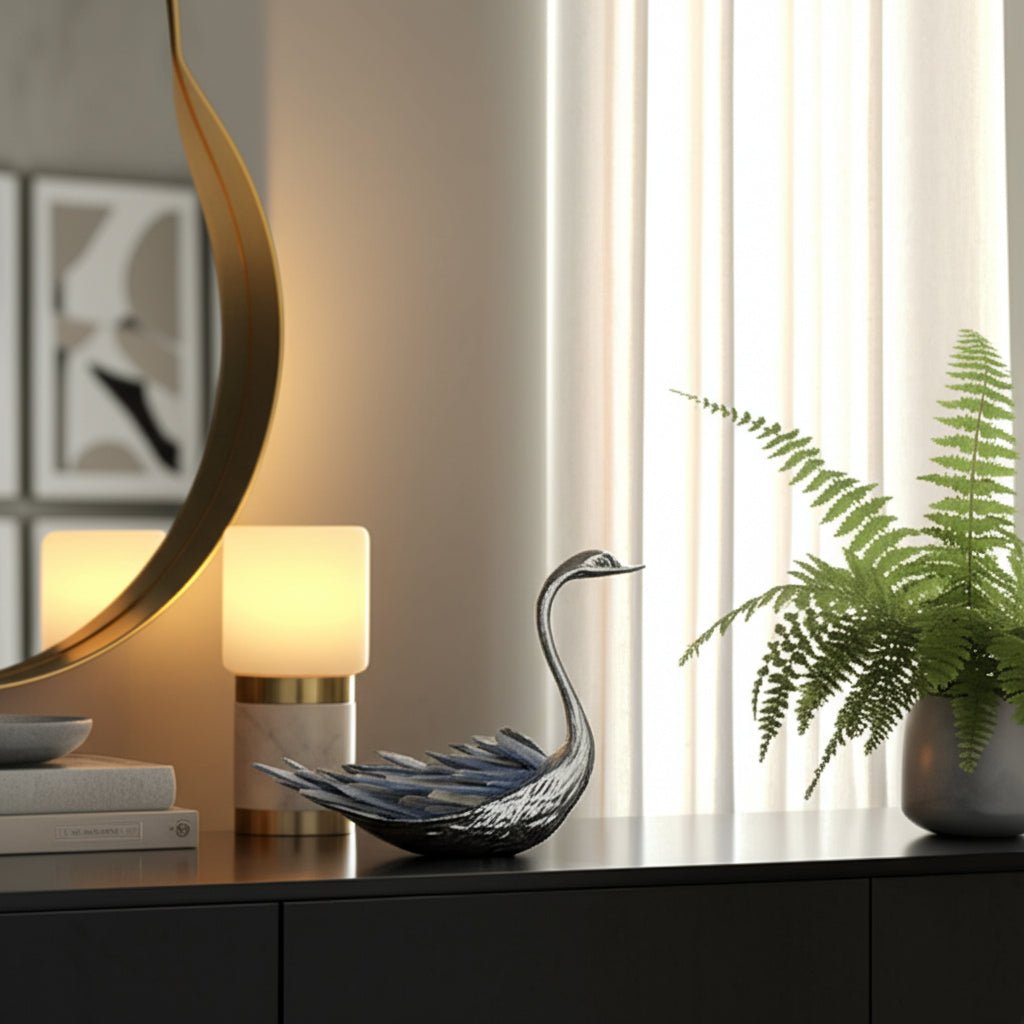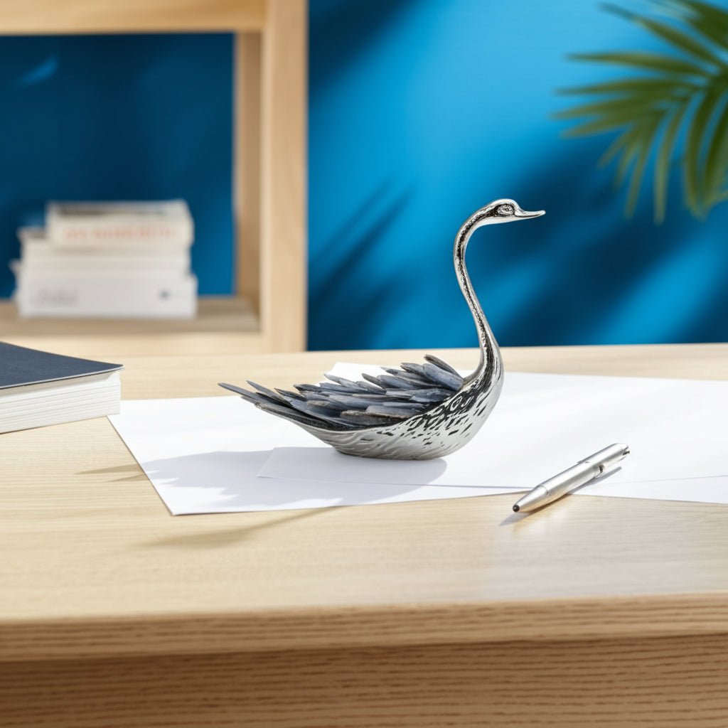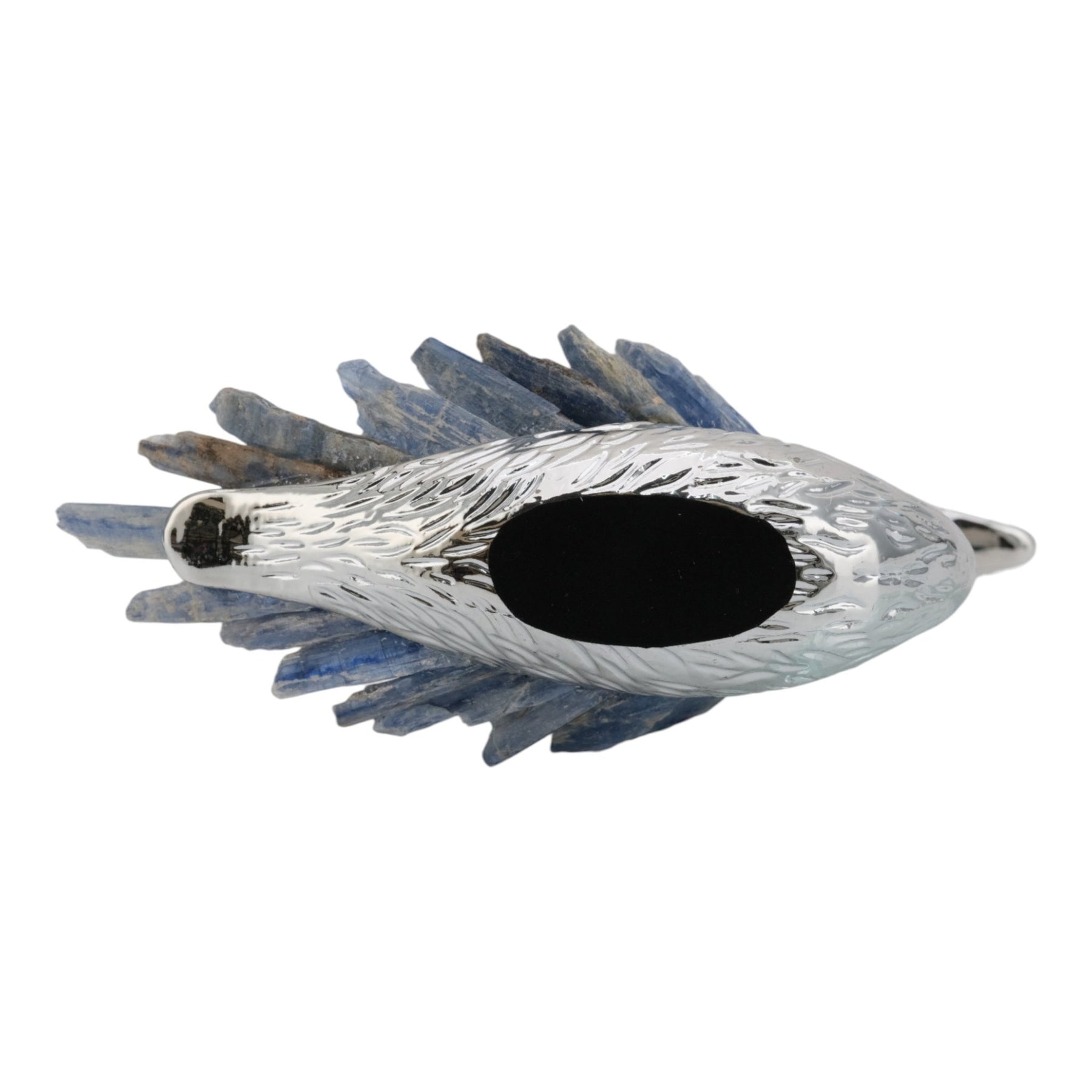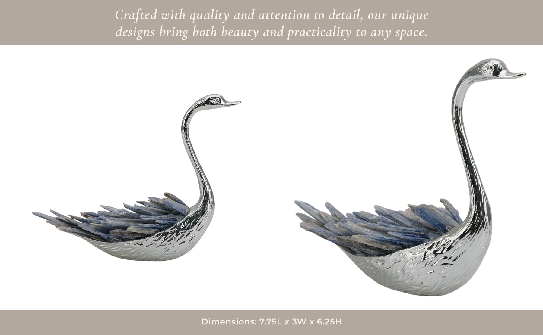 7"majesty Blue Kyanite Stone Sitting Metal Swan Wi - Al Rugaib Furniture