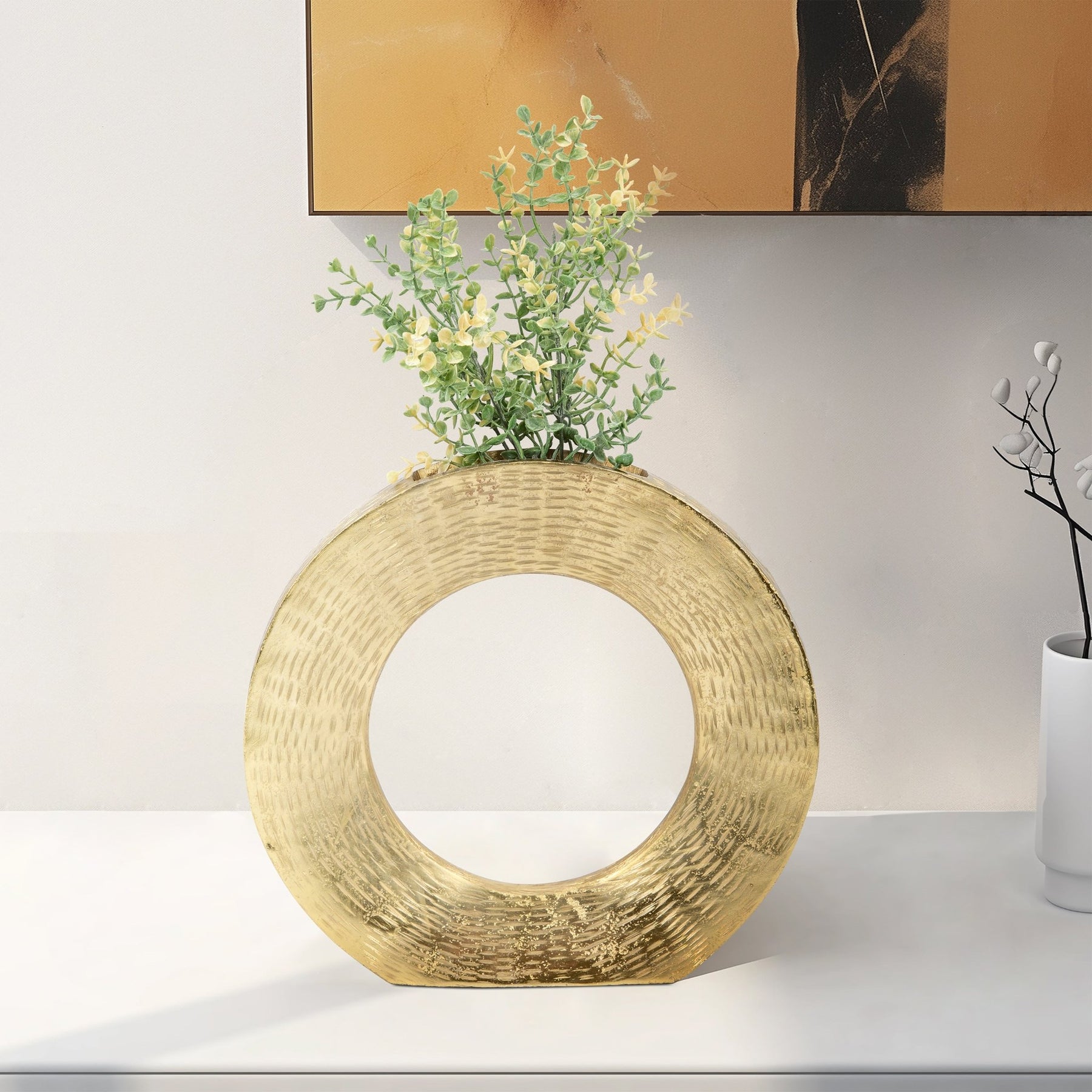 METAL,11"H,ROUND OPEN CUT OUT VASE,GOLD - Al Rugaib Furniture
