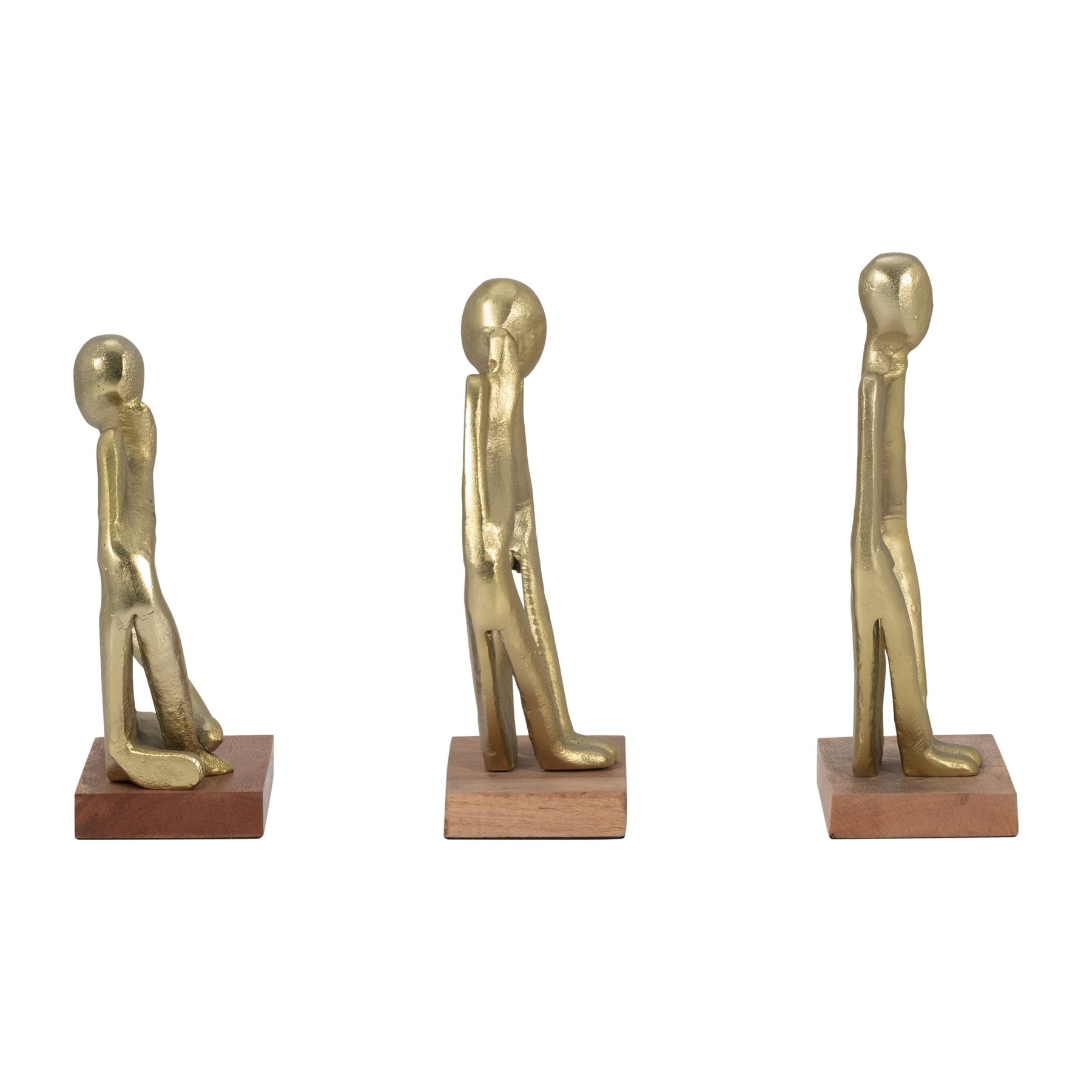 METAL/WOOD, S/3 9" DEEP THOUGHTS, GOLD - Al Rugaib Furniture