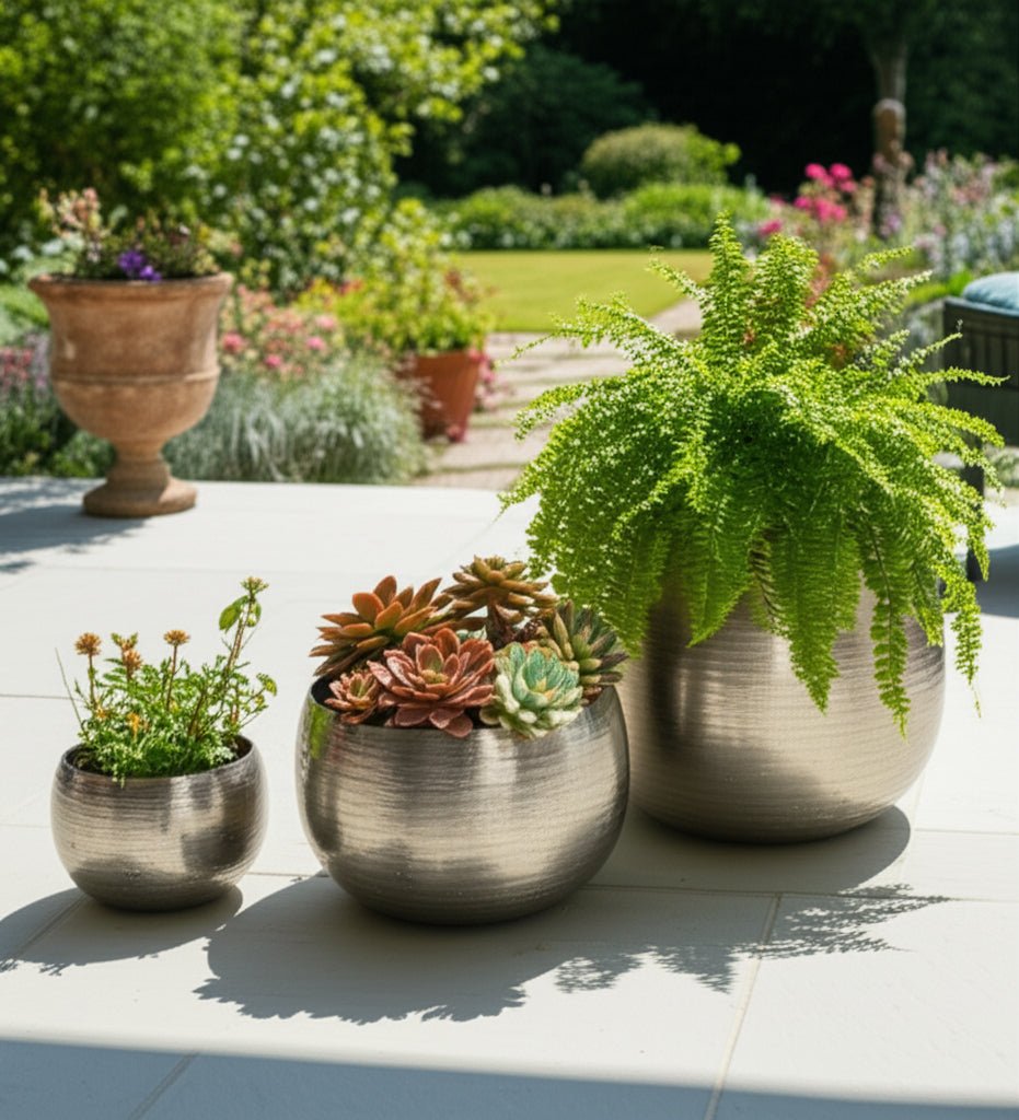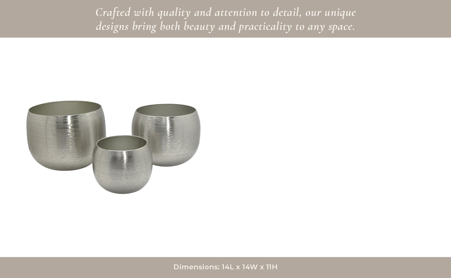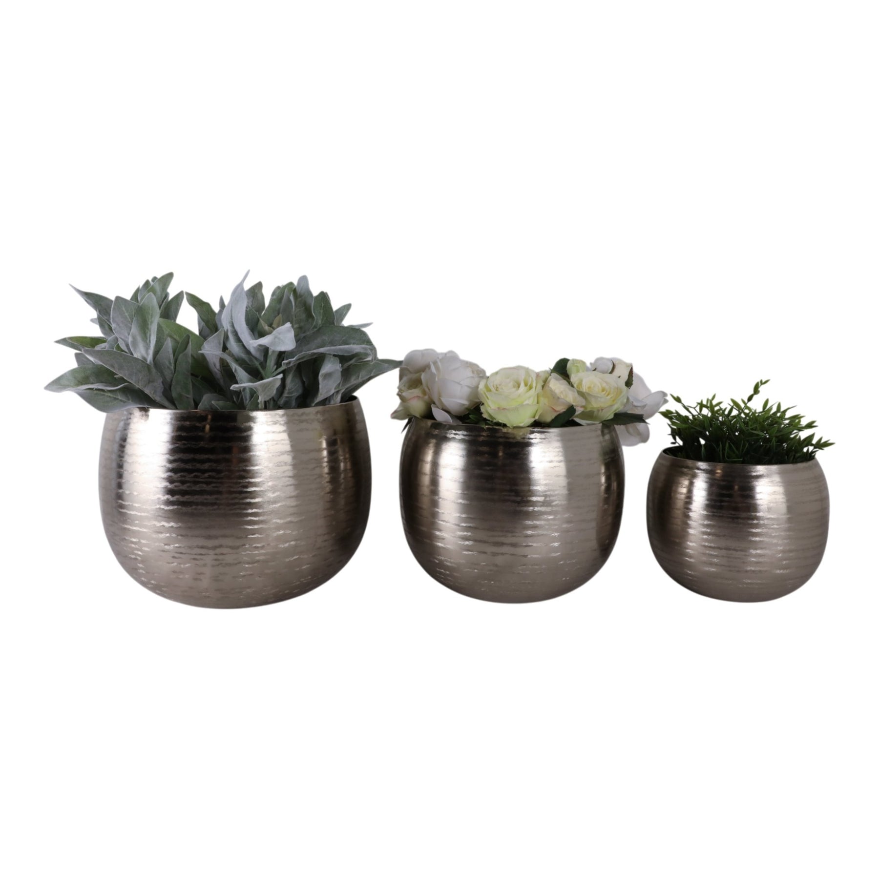 S/3 9/12/14" Hammered Metal Planters, Silver