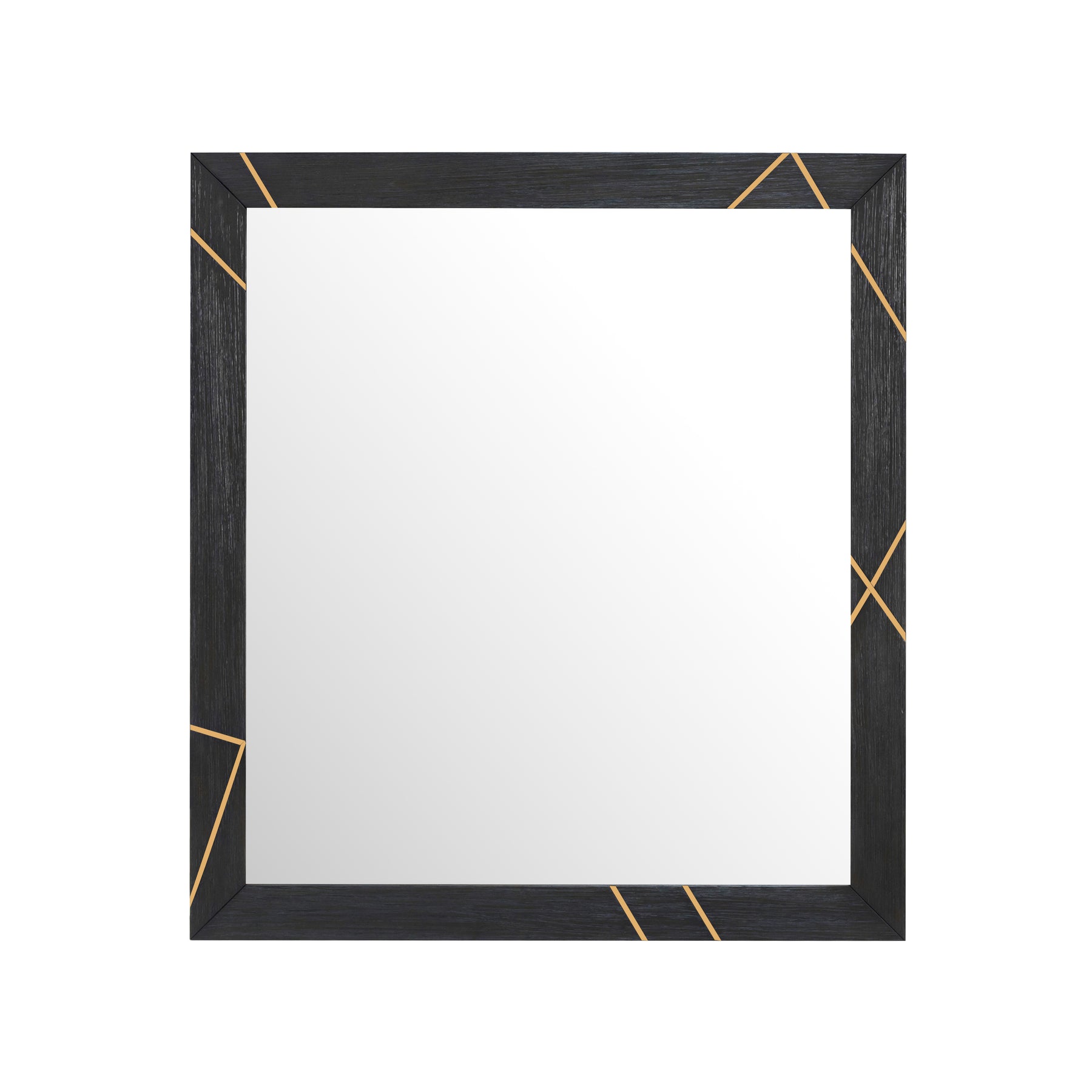 Clean lines and unique metal inlay accents make this mirror stylish,Dresser mirror only; required matching dresser base unit sold separately,Ebony black finish features golden-lined fractal patterns across the mirror's frame,,Crafted with select hardwoods, and oak veneers for lasting beauty and durability,Some assembly needed to attach mirror to matching base dresser (sold separately)