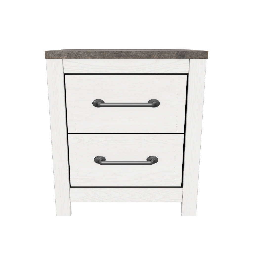 Cool, clean and casually modern. The Gerridan nightstand’s wispy whitewash and gray finish sets the tone for your calming sanctuary. Large linear pulls add dimension and authenticity. Two smooth-gliding drawers neatly accommodate your bedside needs.