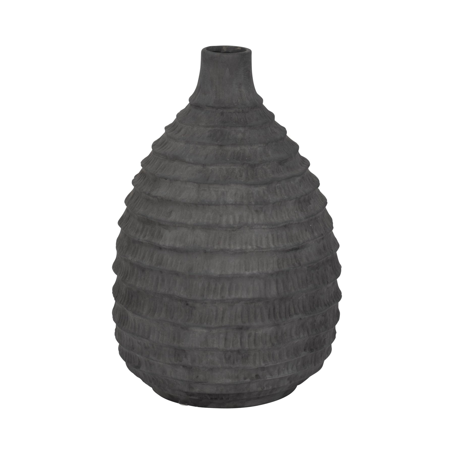 15" Faded Ribbed Bulbous Vase, Black - Al Rugaib Furniture