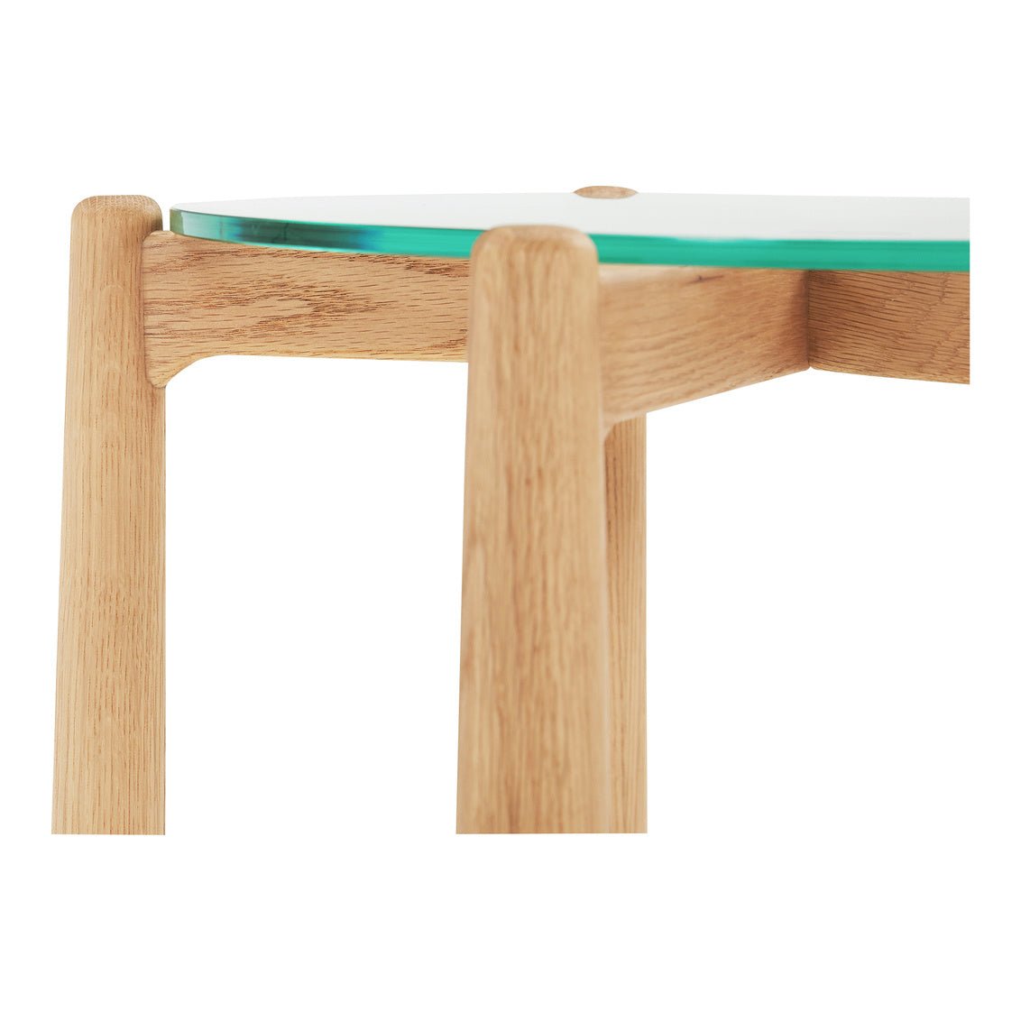 Slender and serene, the Hetta side table’s circular shape will create a calming flow in your space. Its five-pointed base made from solid oak is only the beginning with this beauty, as its subtly sculpted touches rise above the rest. A window into leisurely gatherings, the tempered glass tabletop is a showcase for the detailed woodgrain, as well as a reflective expansion for your space. Pair Hetta with your favorite accent chairs and sofa as a tranquil focal point.