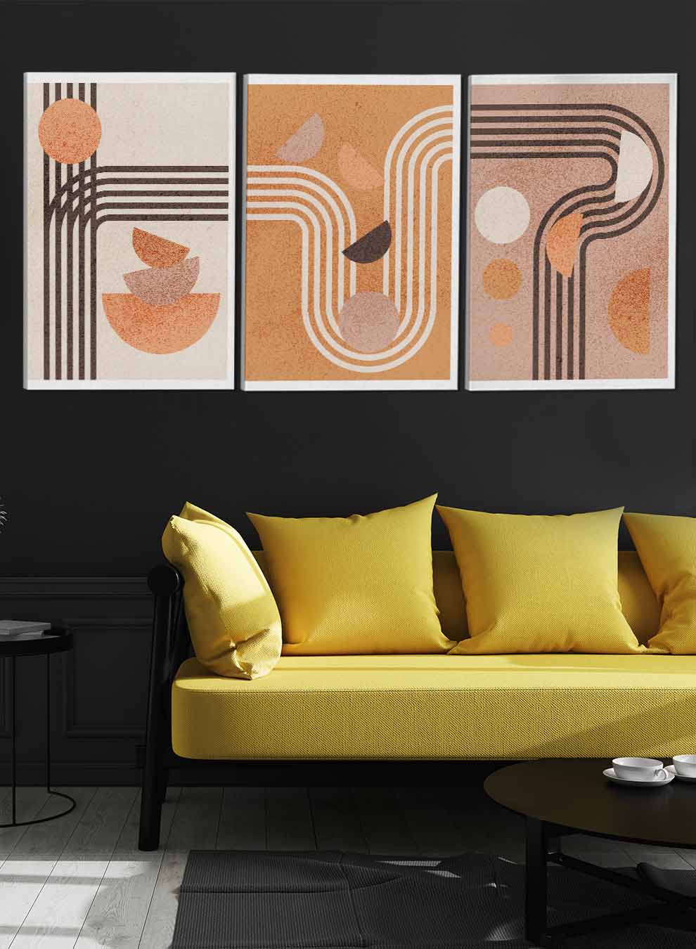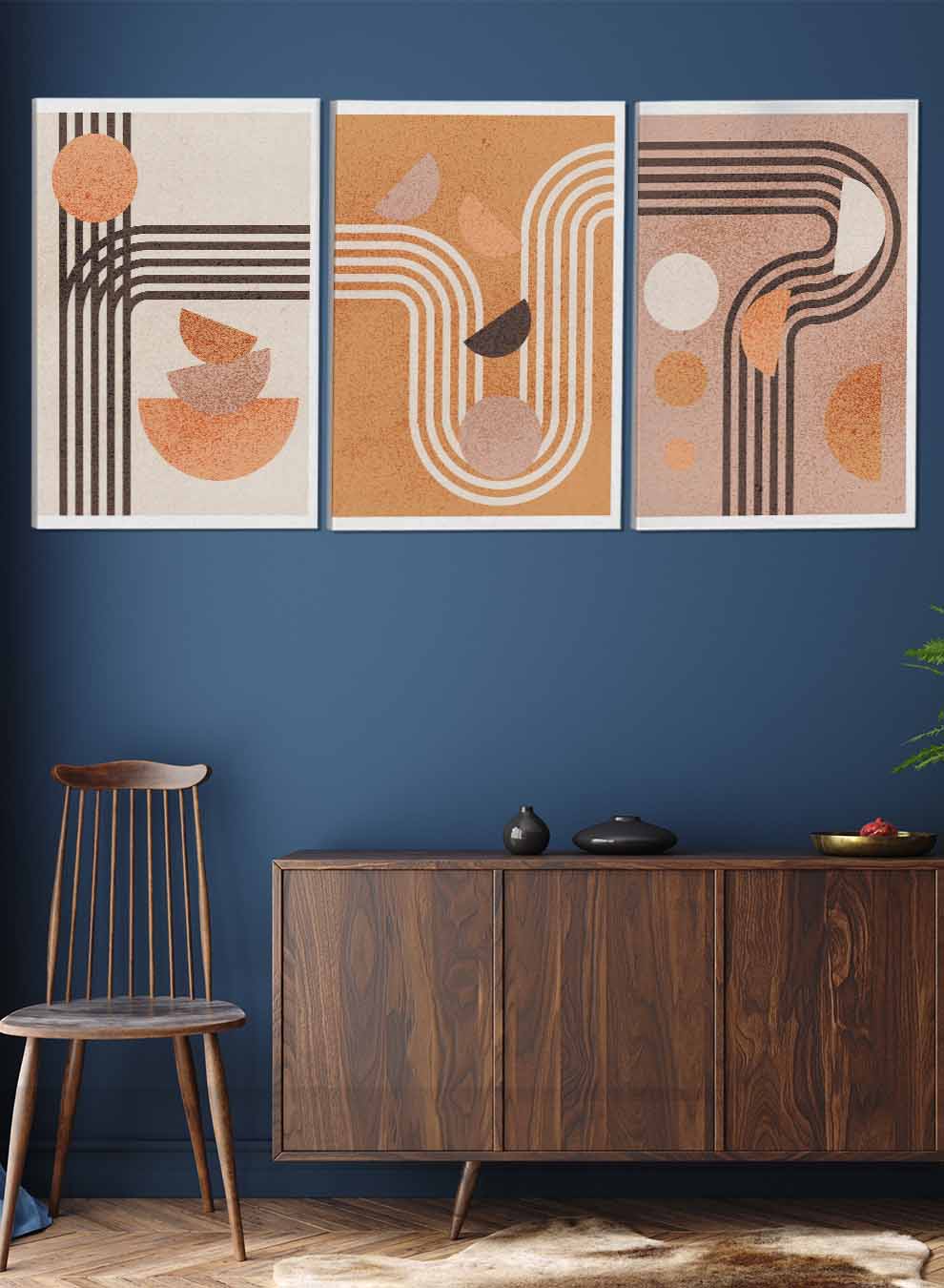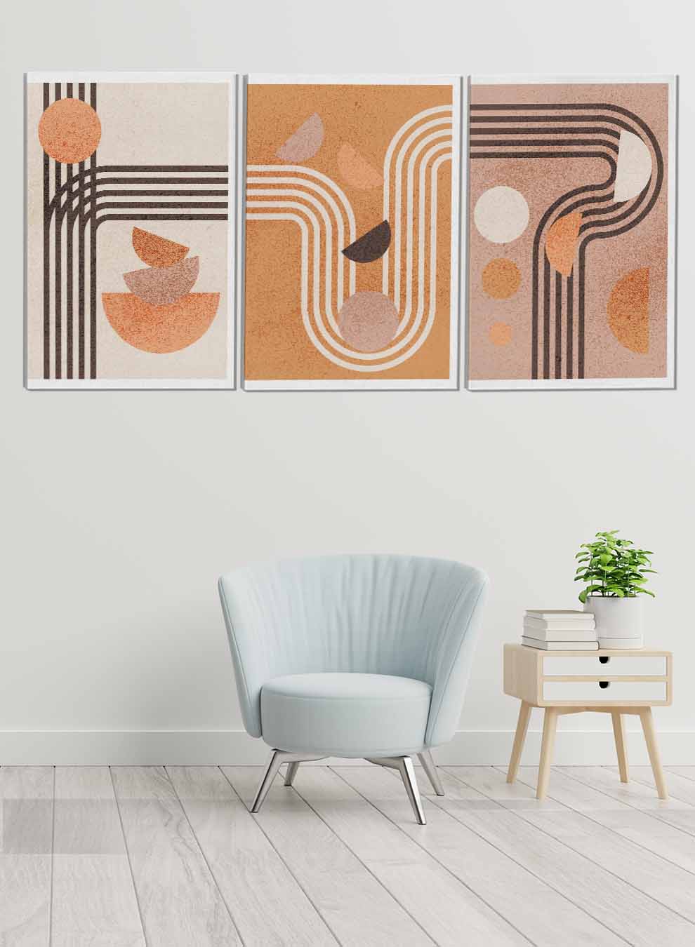 Boho Aesthetic Terracotta Abstract Paintings(set of 3) - Al Rugaib Furniture
