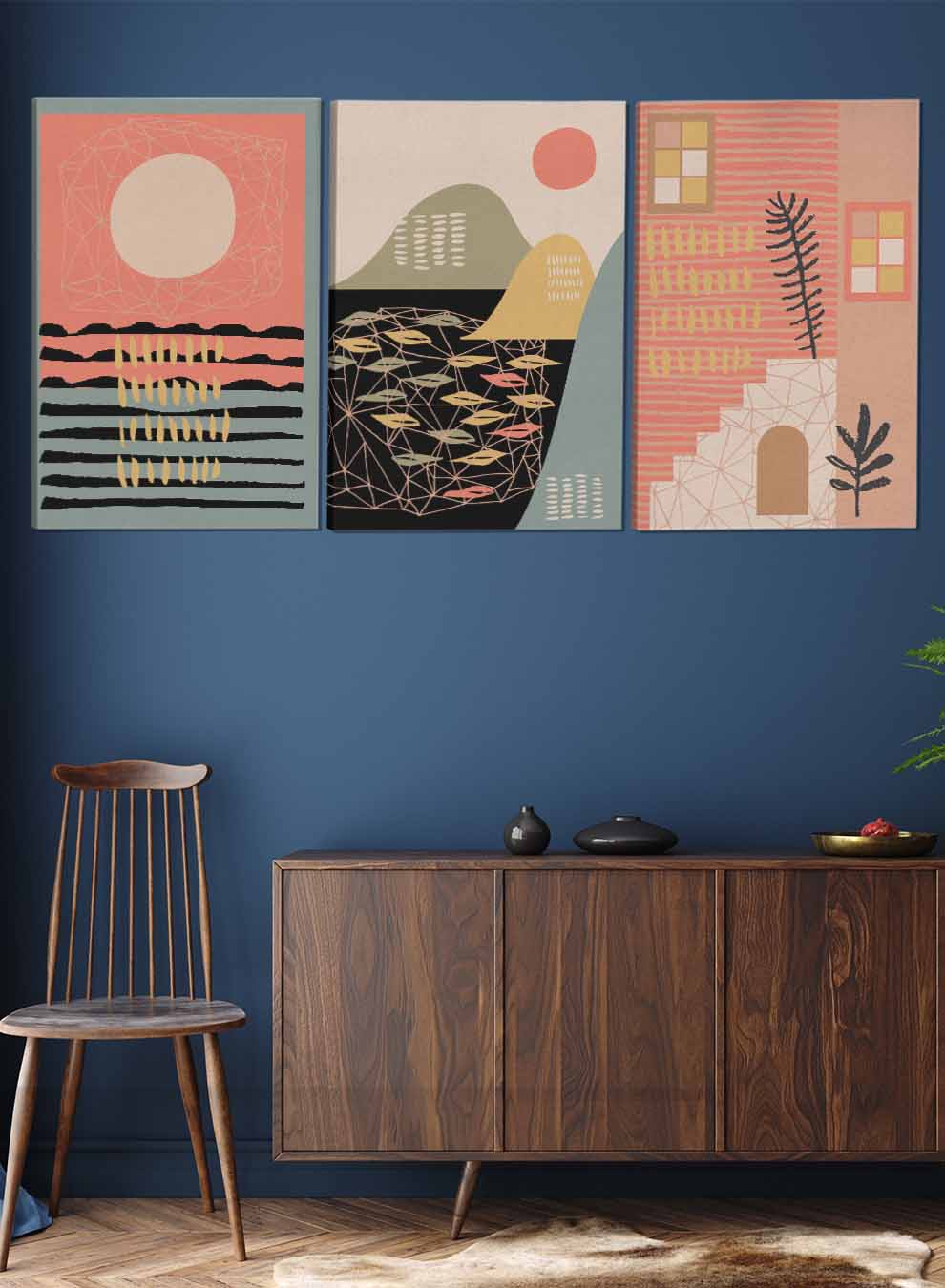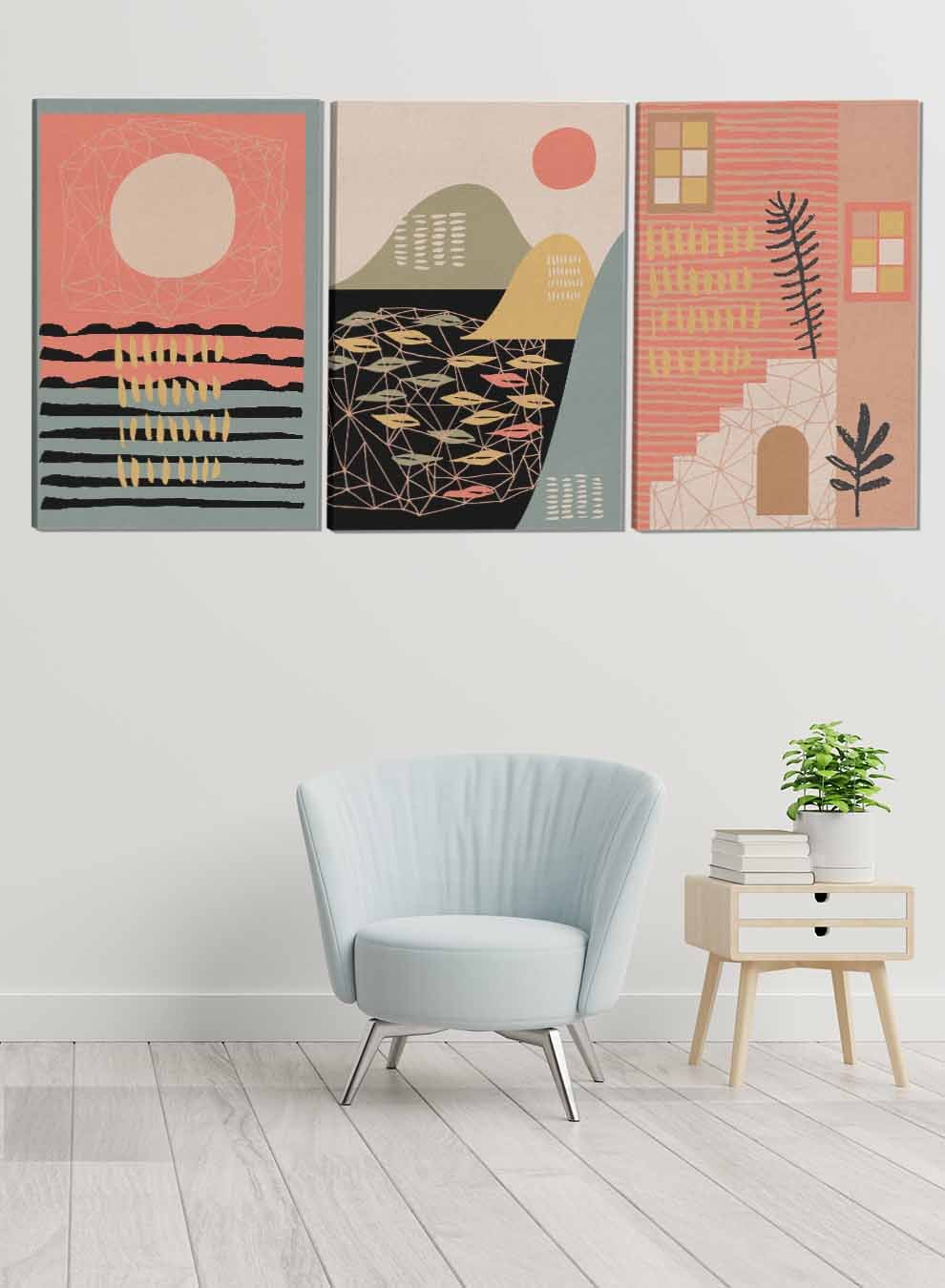 Boho Style Abstract Paintings(set of 3)