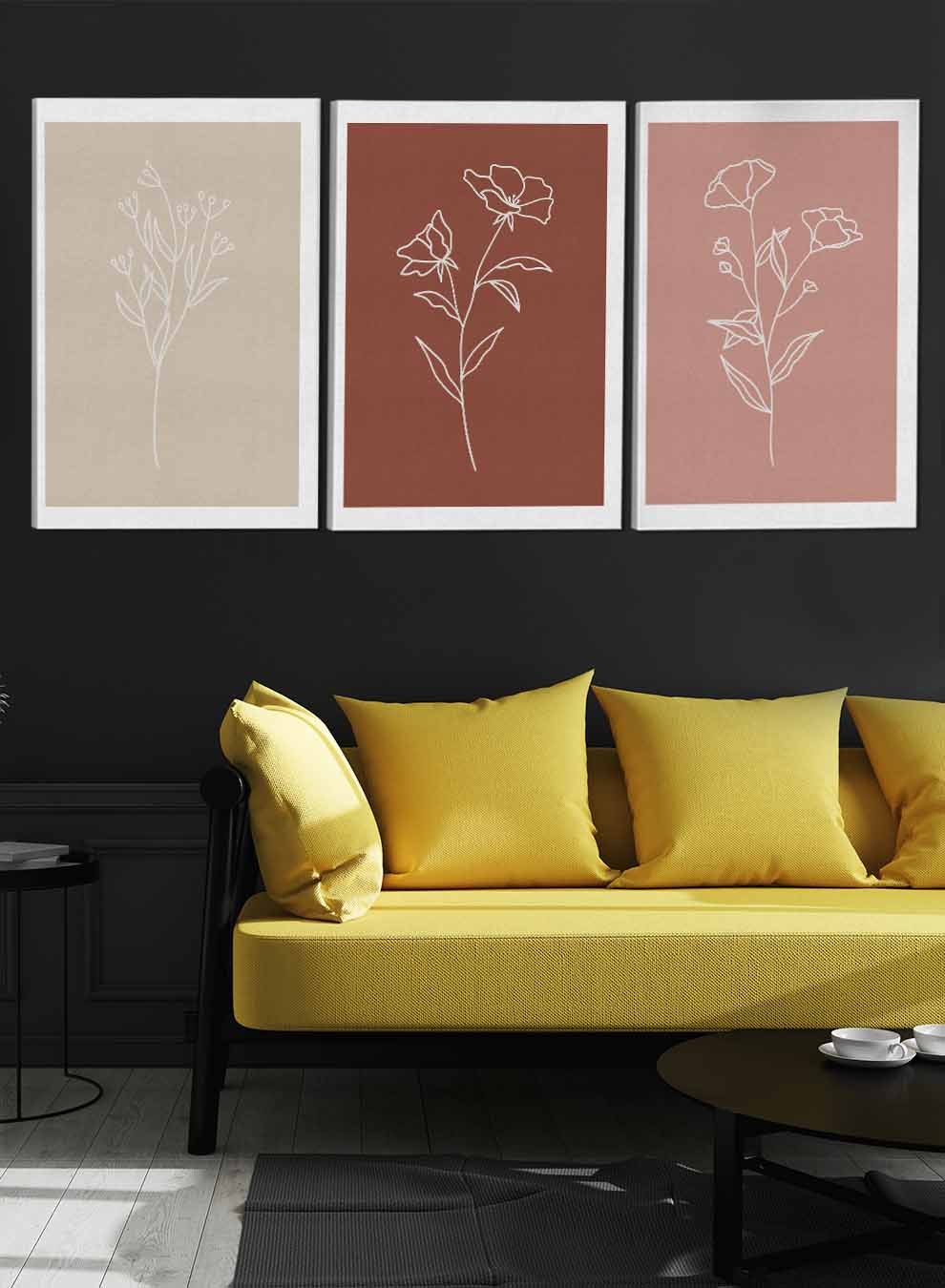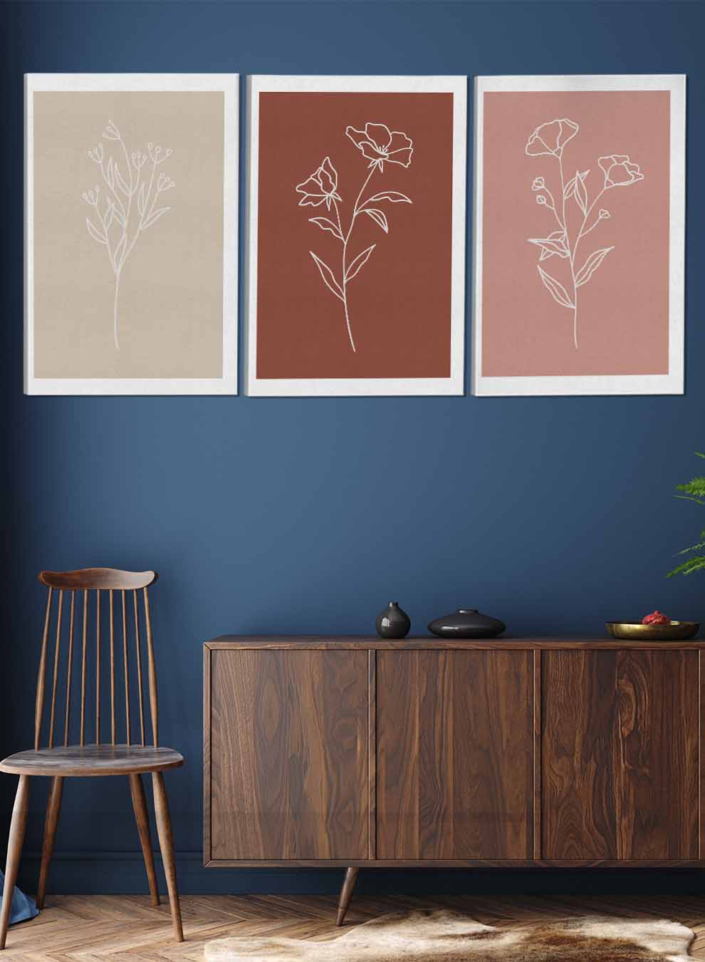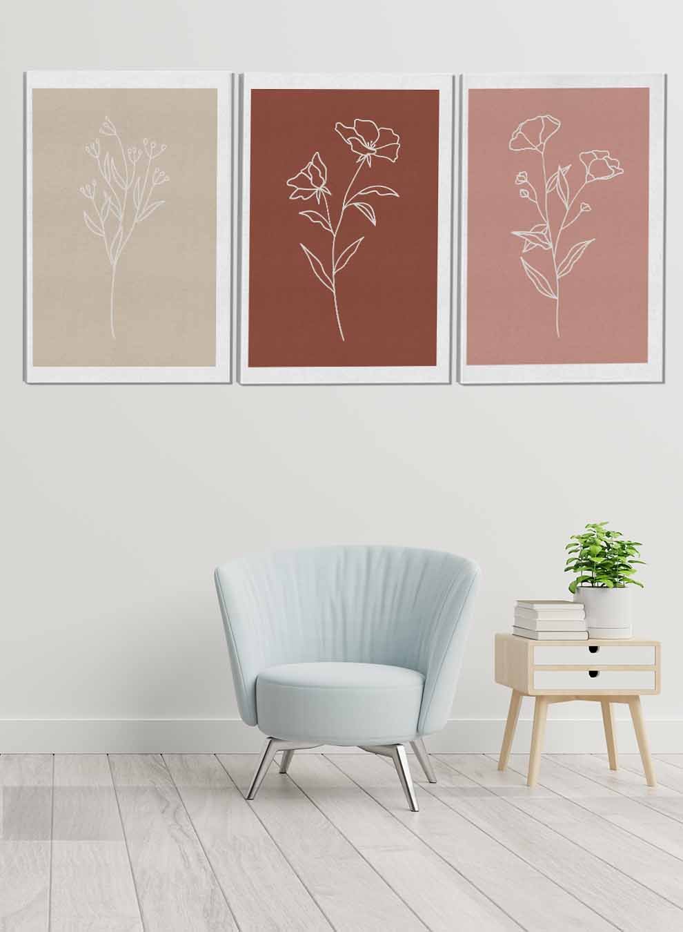 Botanical Flowers Abstract Paintings(set of 3) - Al Rugaib Furniture