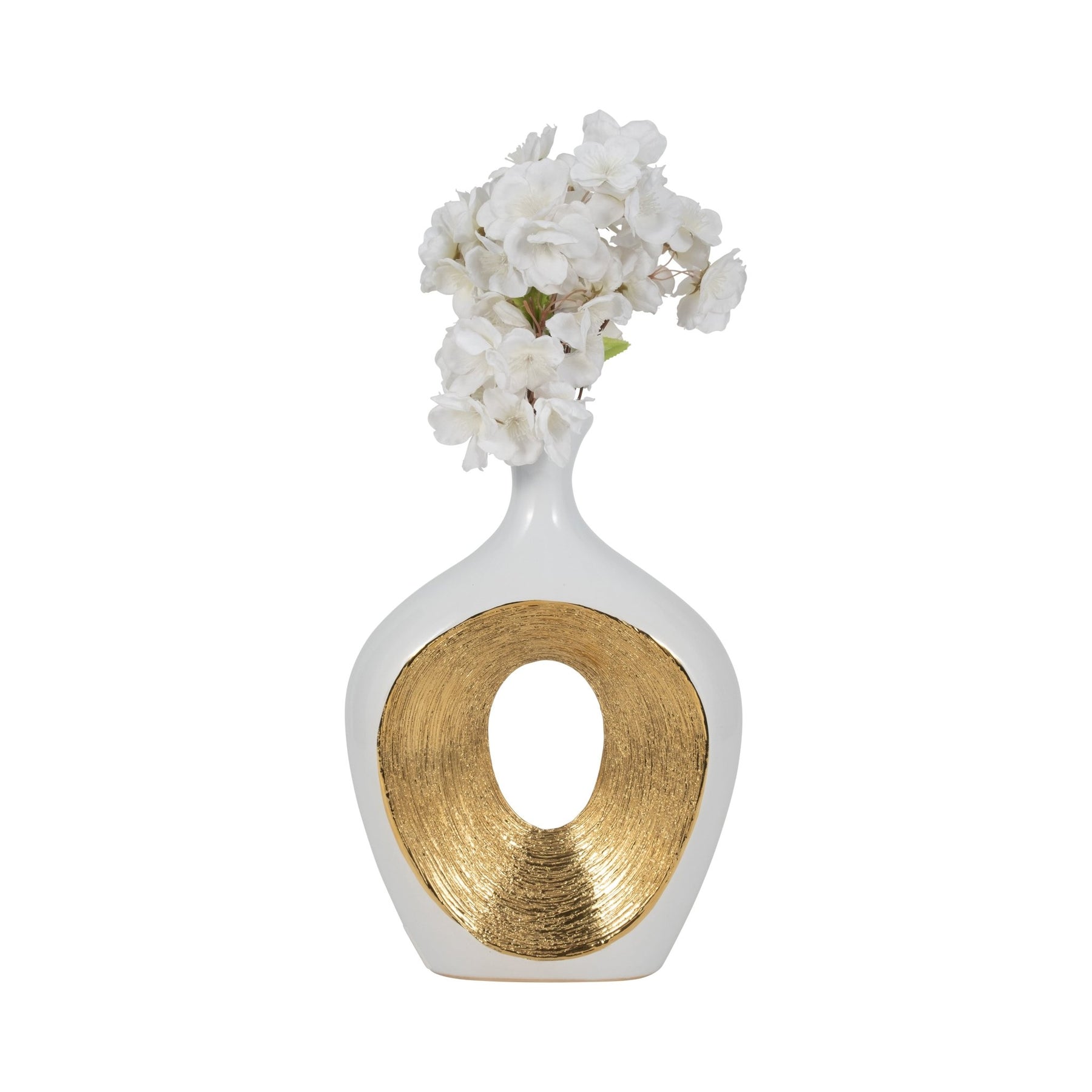 CER, 13"H 2 - TONE SCRATCHED OVAL VASE, WHT/GLD - Al Rugaib Furniture