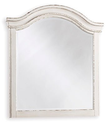 This bedroom mirror is made with wood, veneers and engineered wood, with cast resin components. Pairs with other items in the series to make a dresser and mirror kit.