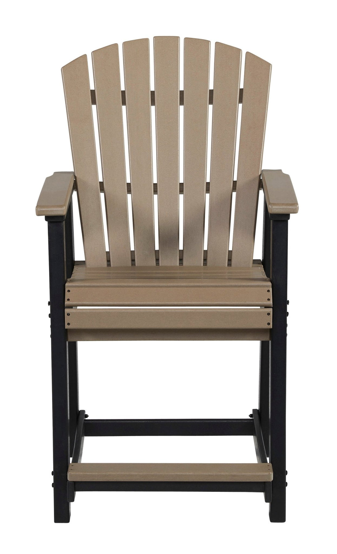 Includes 2 counter height stools;Made of durable and sturdy MEGA TUFF™ HDPE material;MEGA TUFF™ HDPE surfaces are made of high-density polyethylene, which gives the wood look you love and the weather resistance you crave;Stainless steel hardware;Designed to withstand the harsh elements of the outdoors;Two-tone driftwood/black color;Assembly required