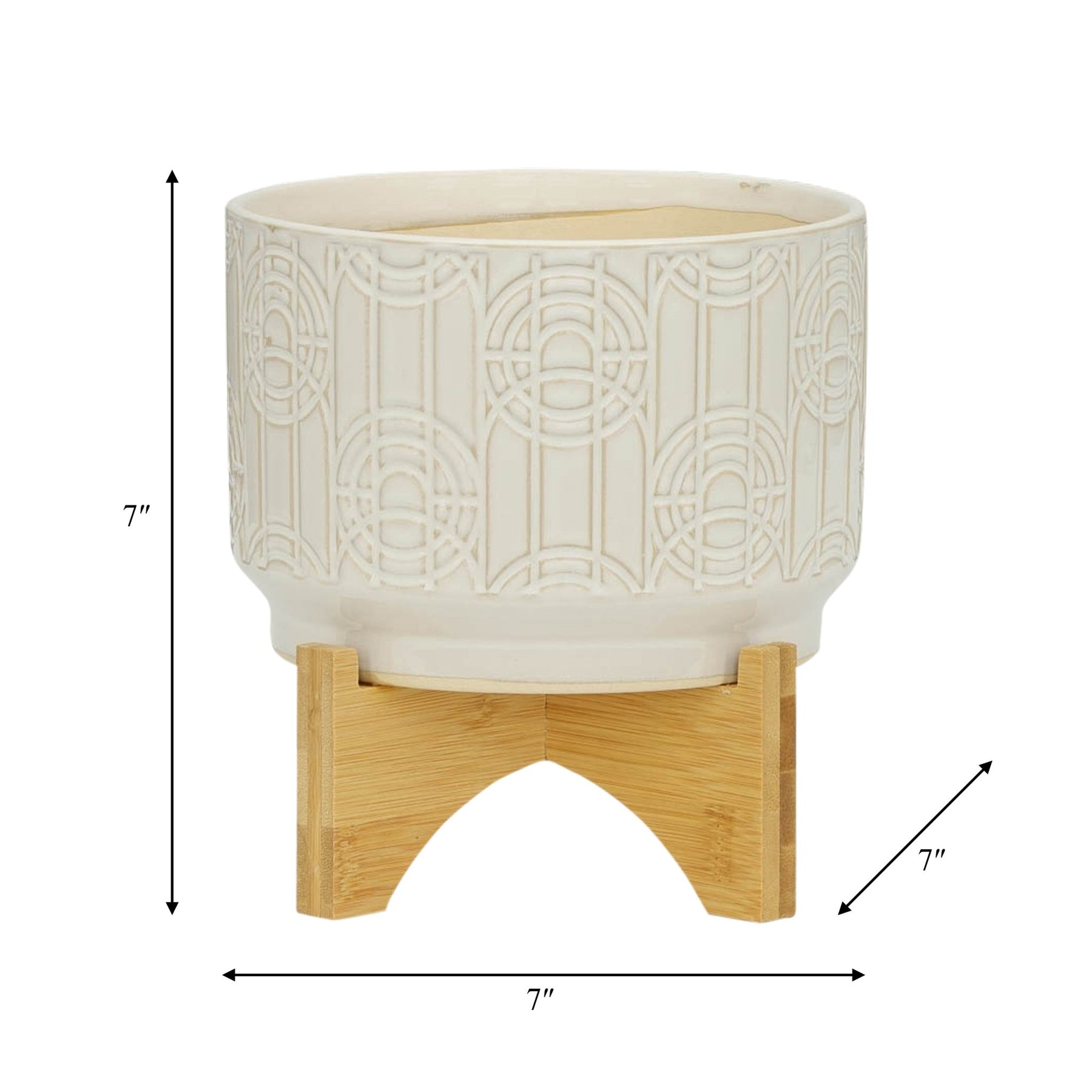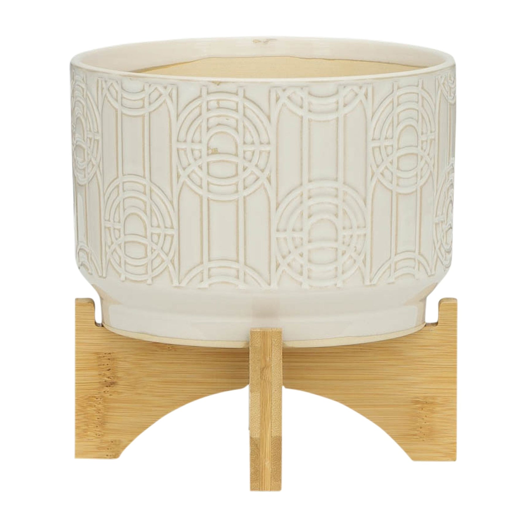 CER, 7" CIRCLES PLANTER ON STAND, WHITE