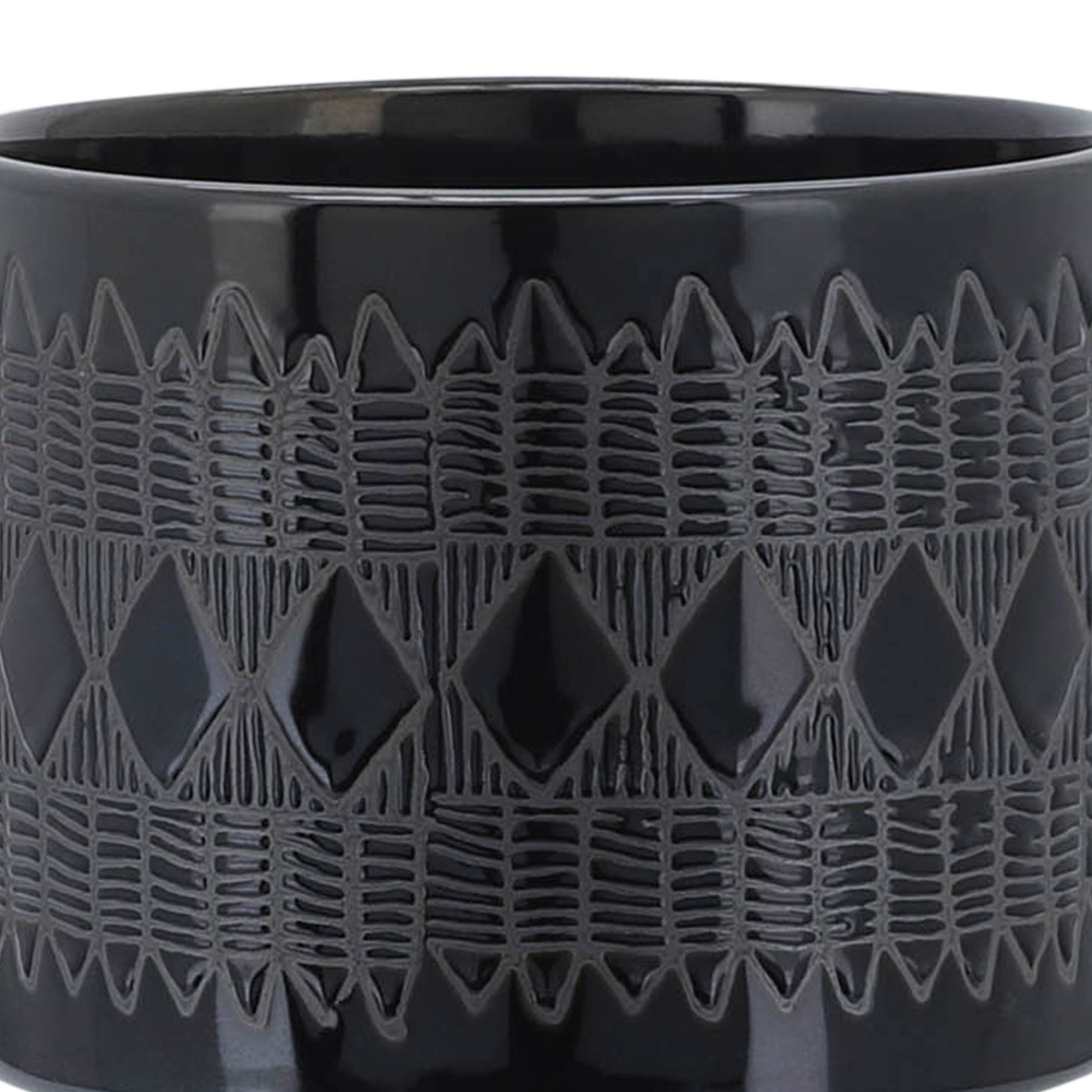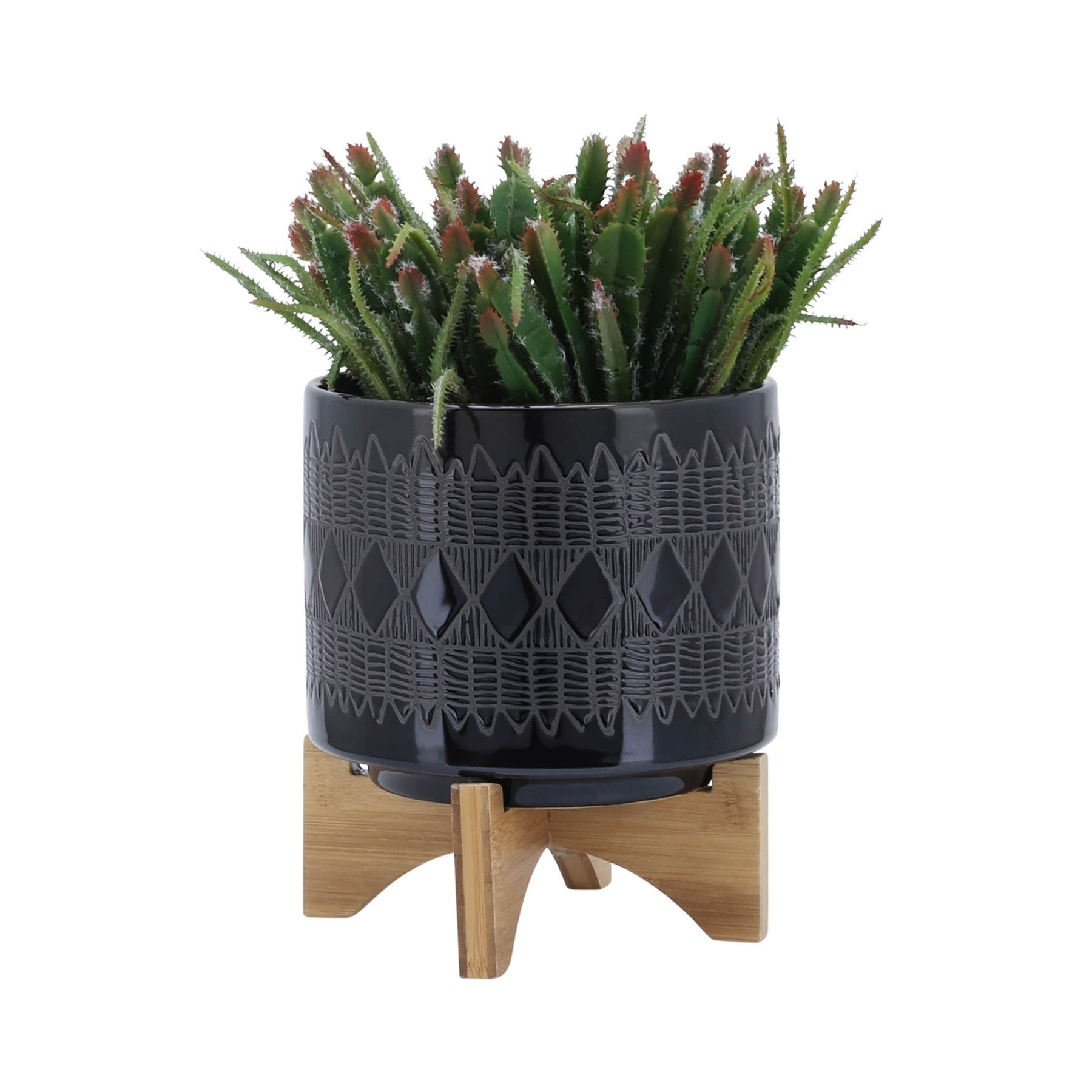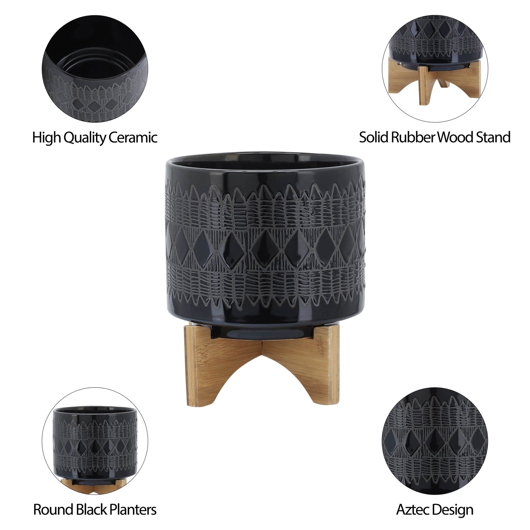 CER, S/2 8/10" AZTEC PLANTER ON WOODEN STAND,BLACK