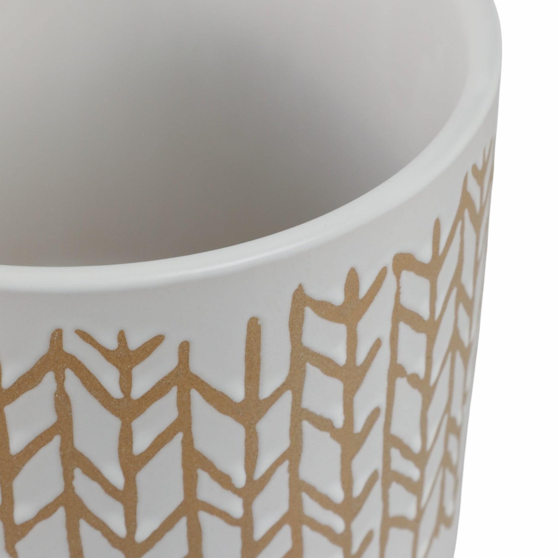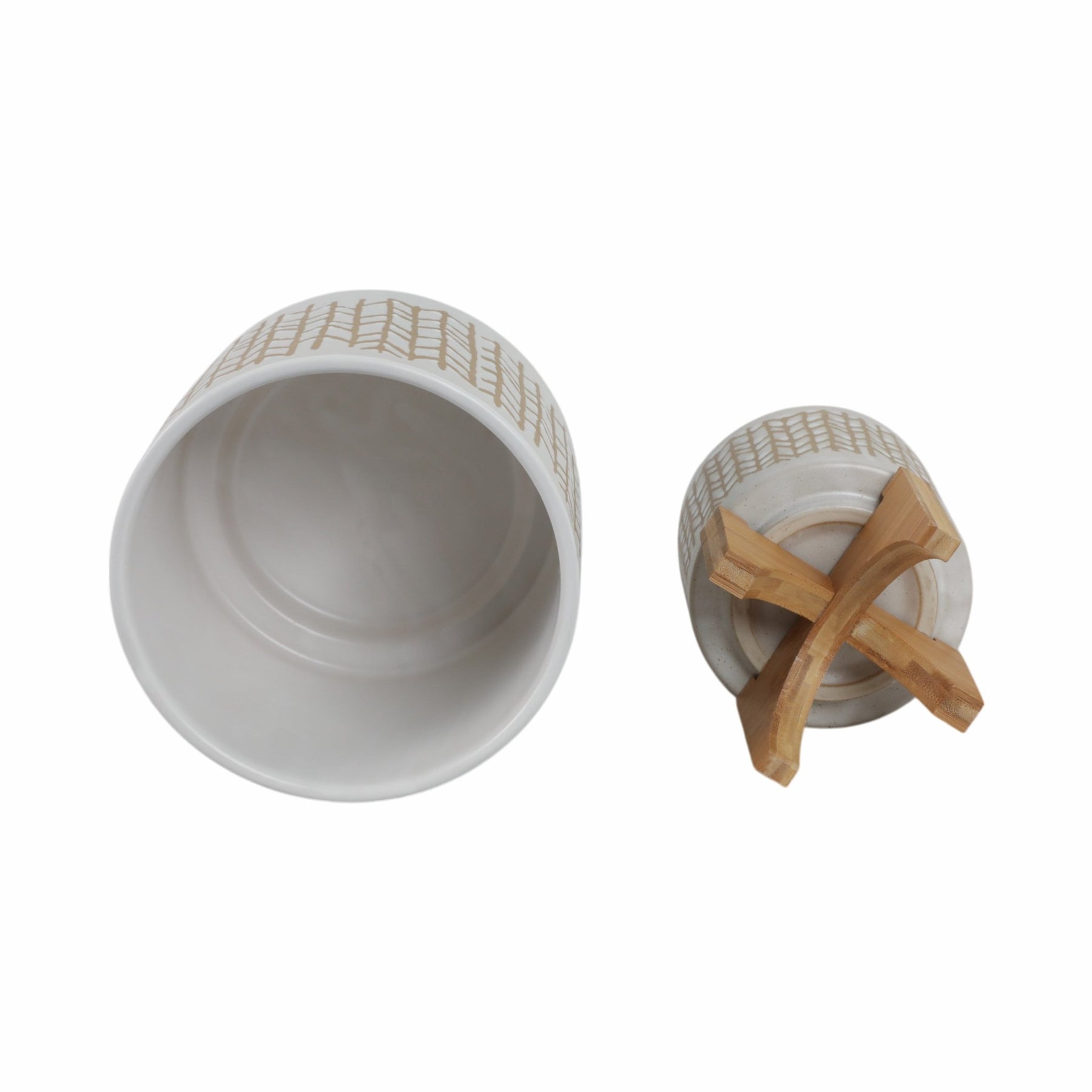 S/2 5/8" CHEVRON PLANTER W/ WOOD STAND, BEIGE