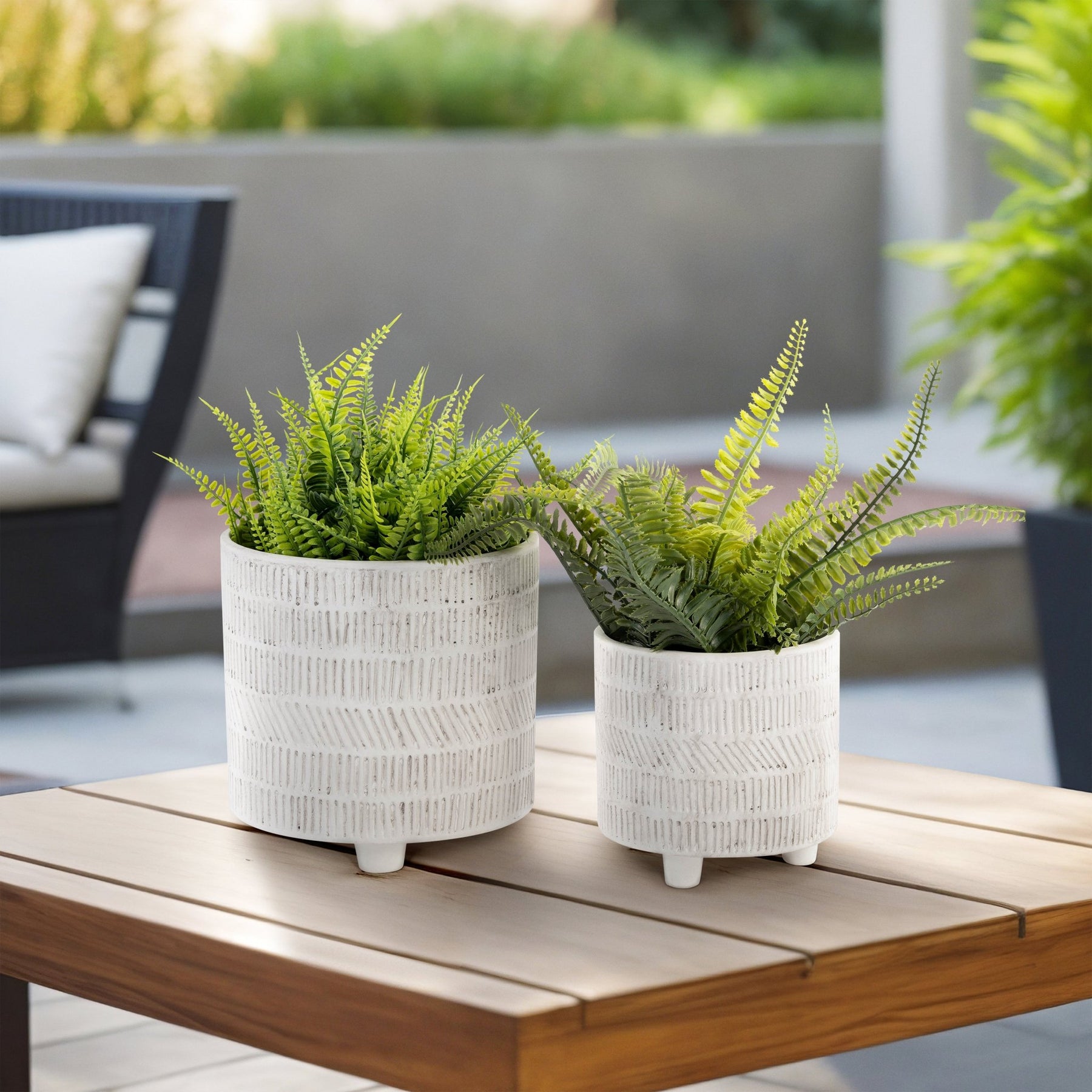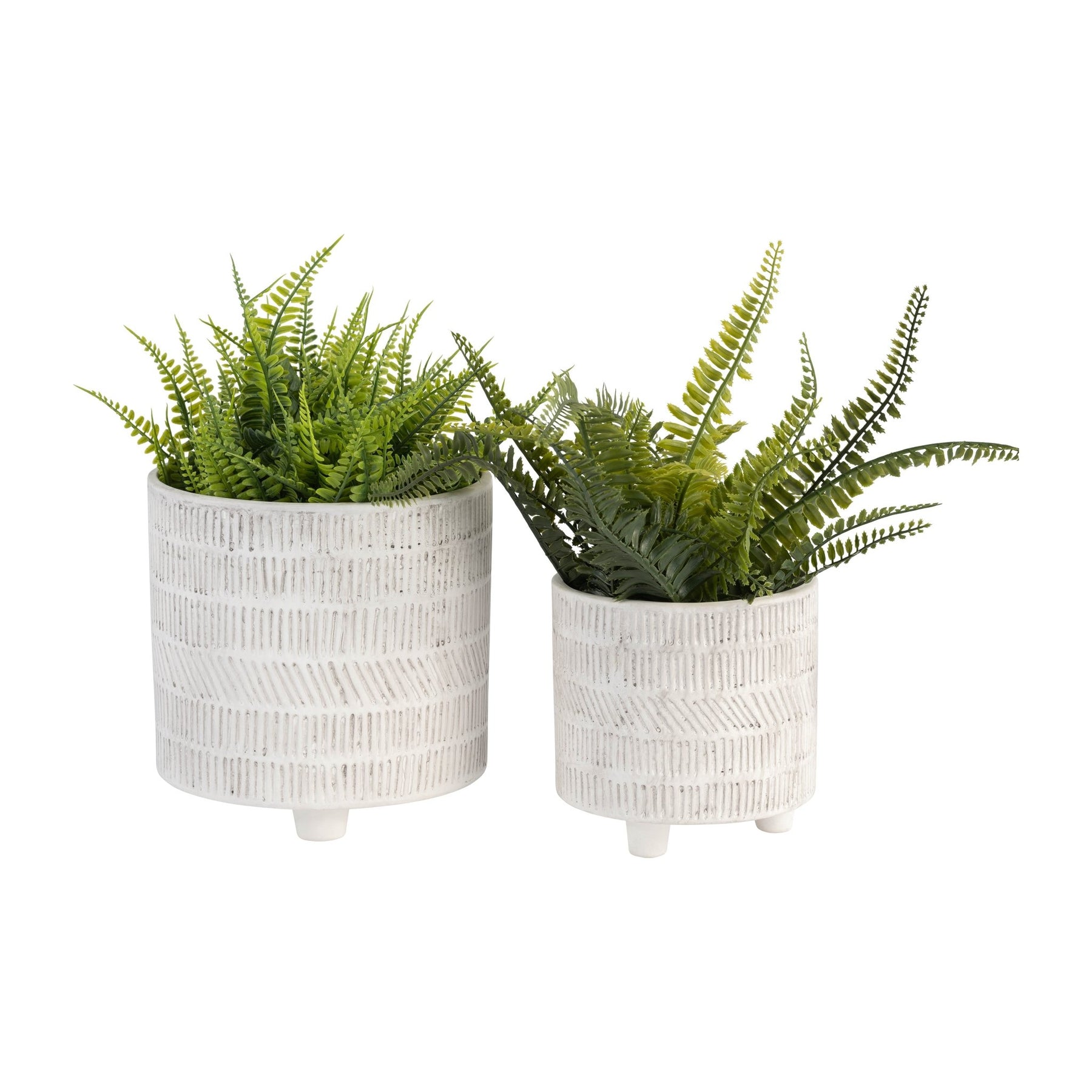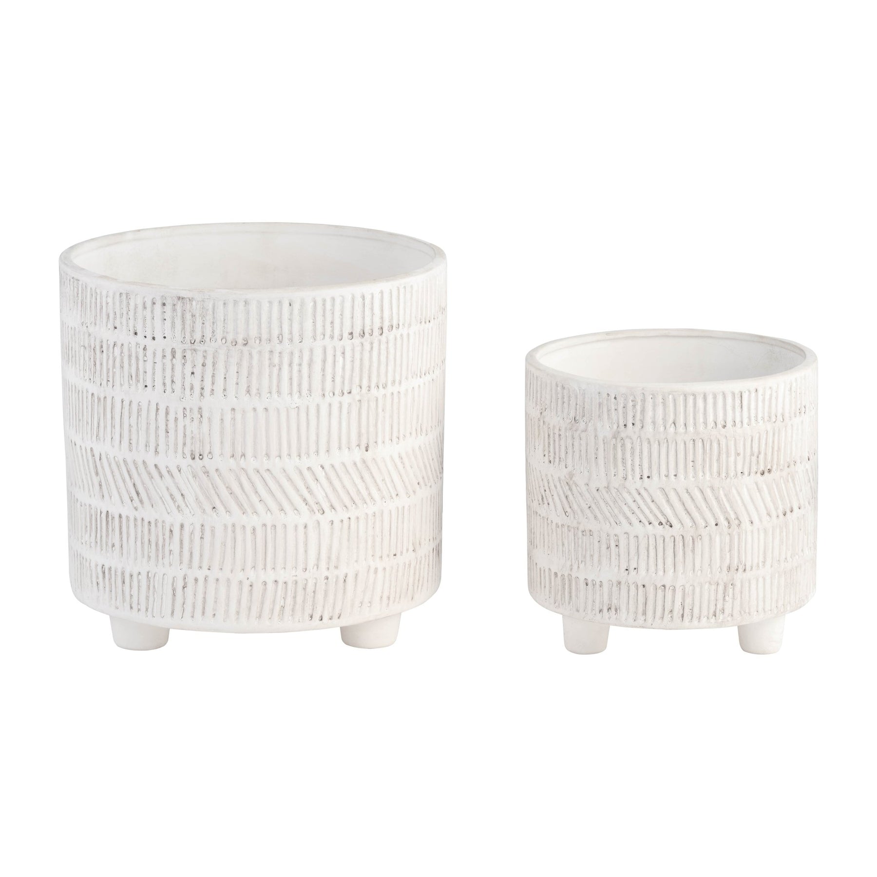 S/2 TRIBAL LOOK FOOTED PLANTER 6/8", IVORY - Al Rugaib Furniture