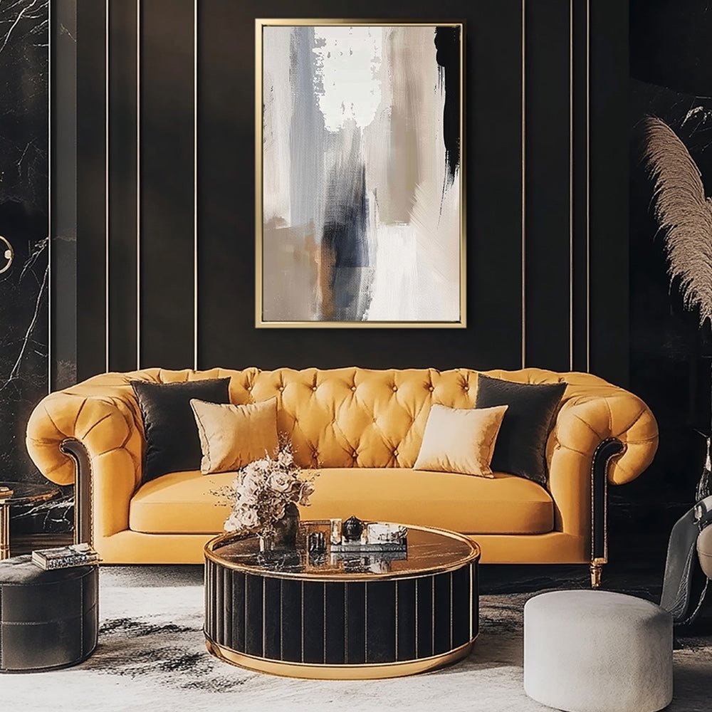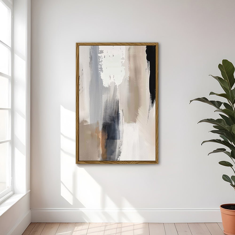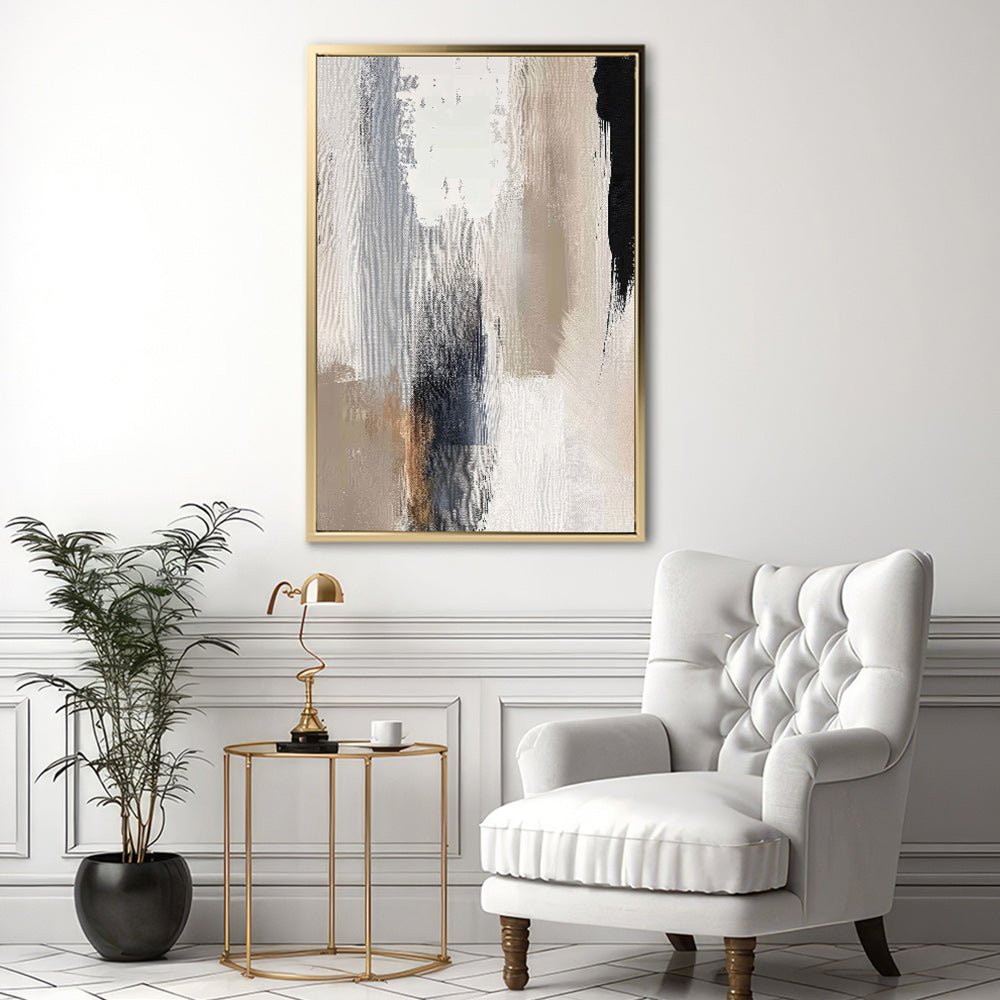 Canvas Wall Art Stretched Over Wooden Frame with Floating Frame and Earth Tones Abstract Painting CV4153