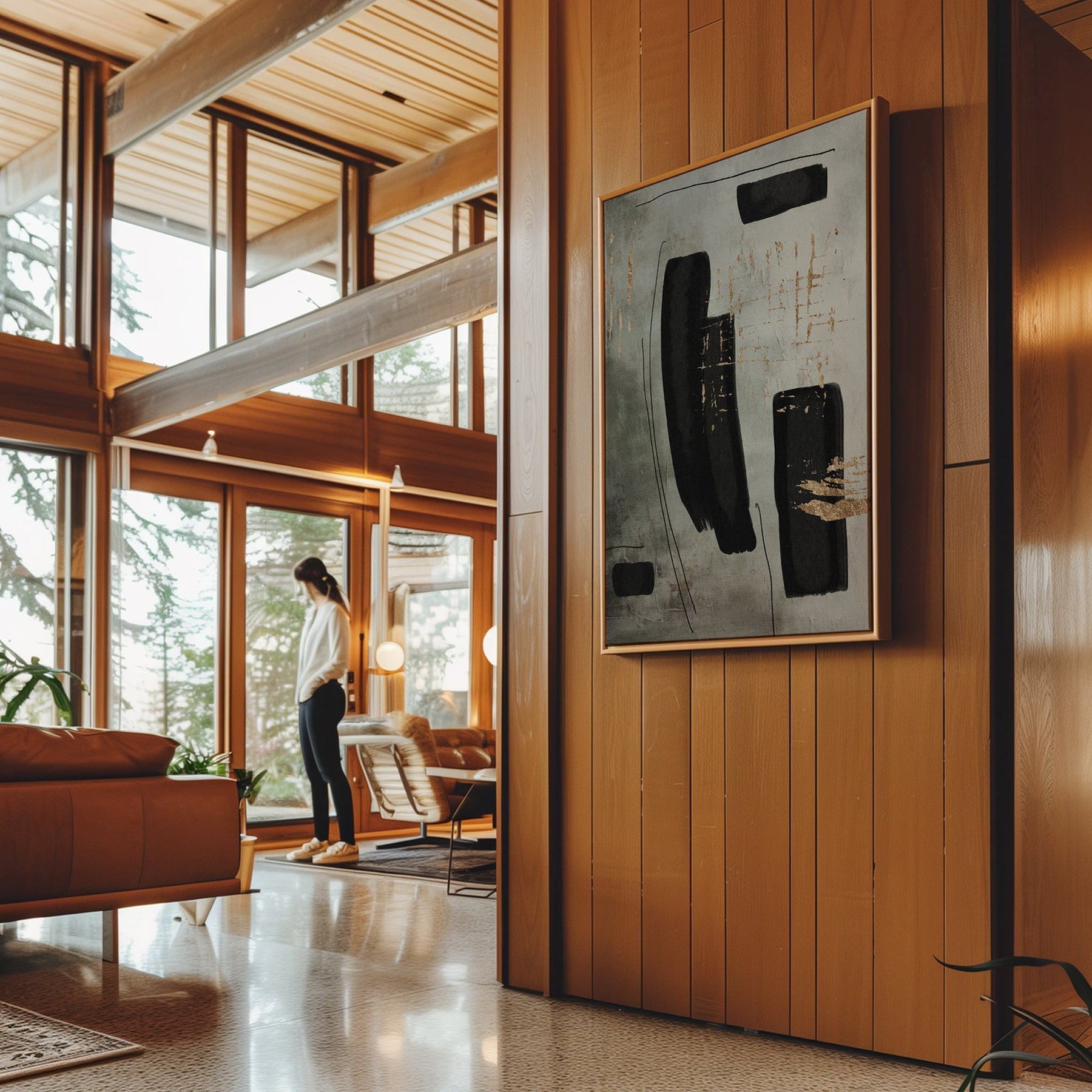 Canvas Wall Art Stretched Over Wooden Frame with Floating Frame and Rectangles Painting CV4212 - Al Rugaib Furniture