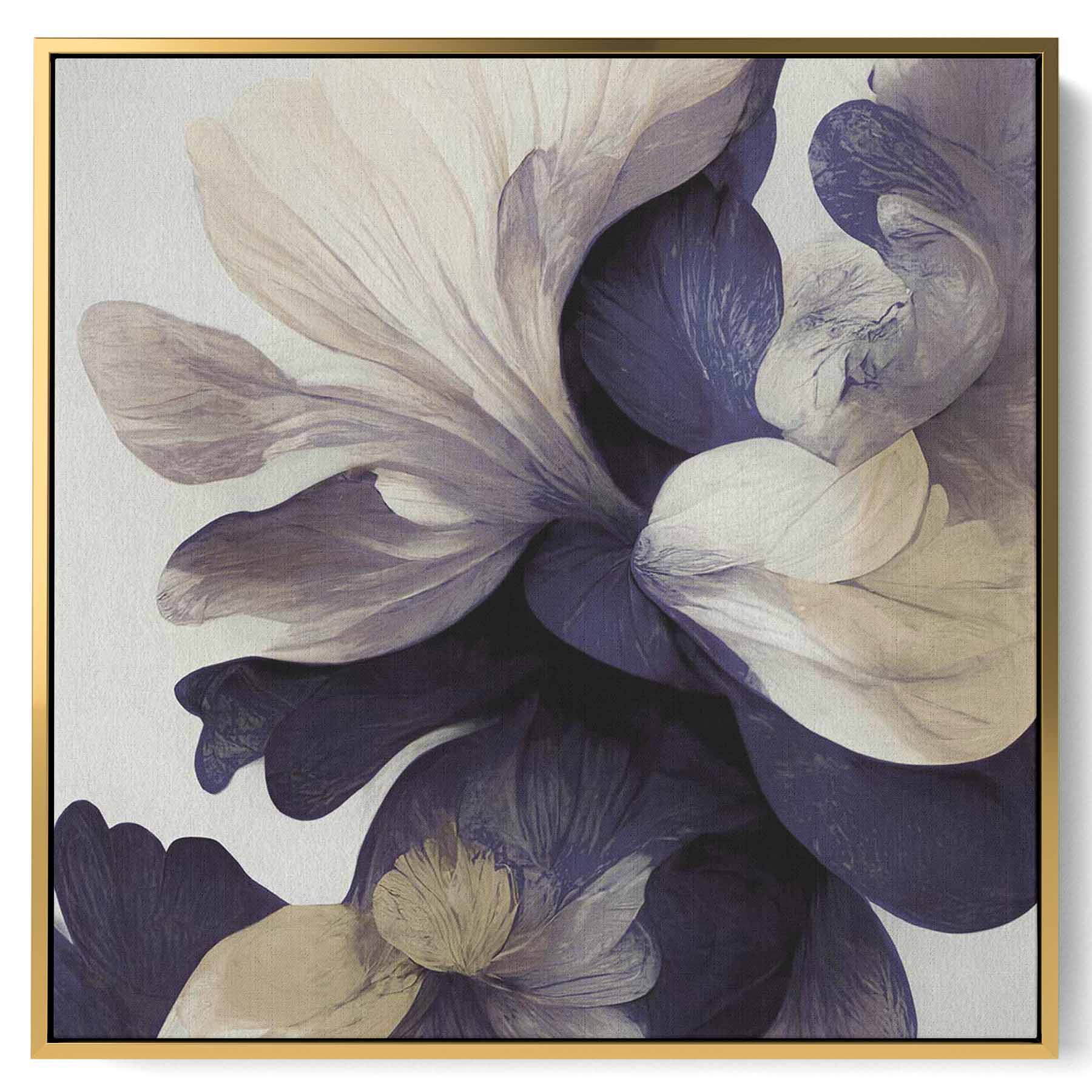 Square Canvas Wall Art Stretched Over Wooden Frame with Black Floating Frame and Beautiful Flowers Painting